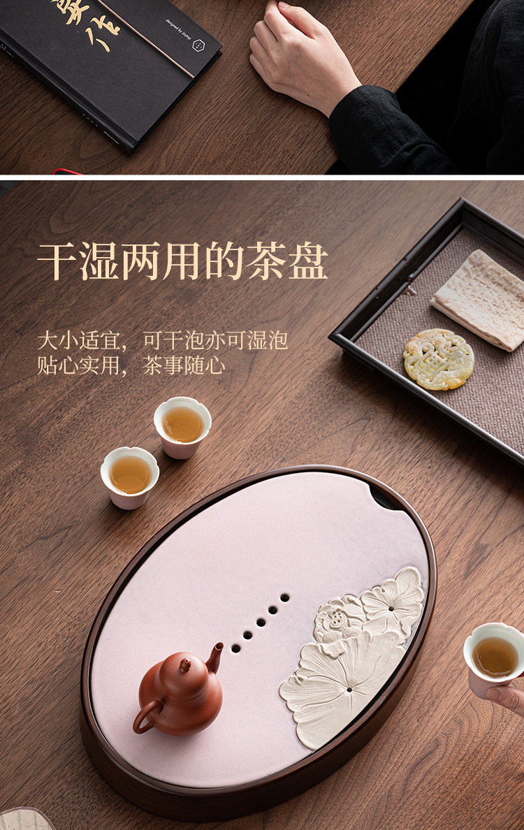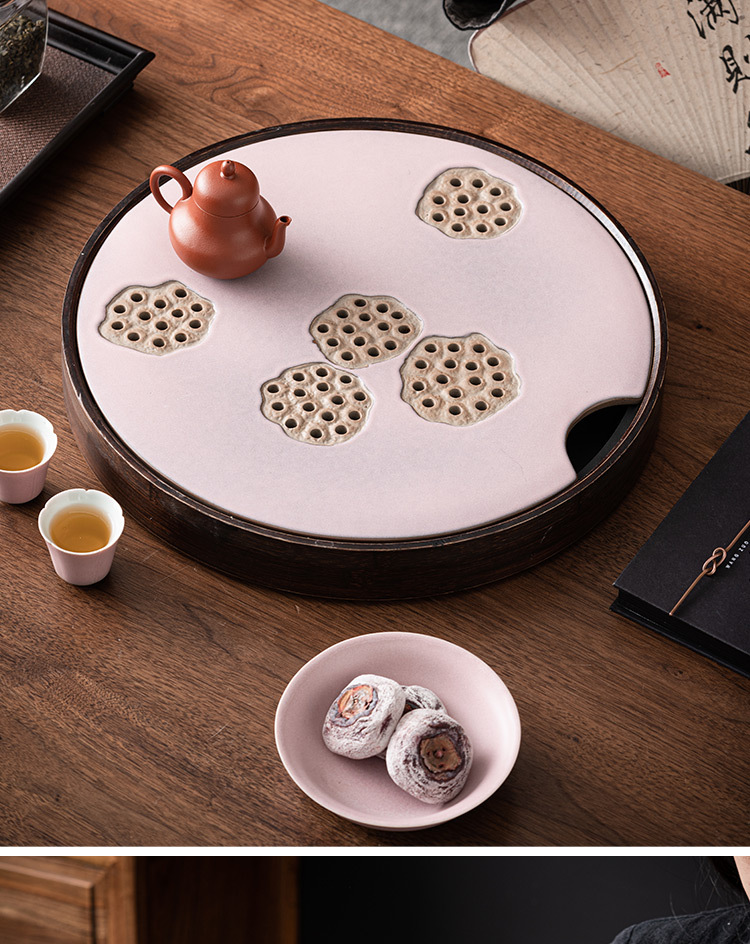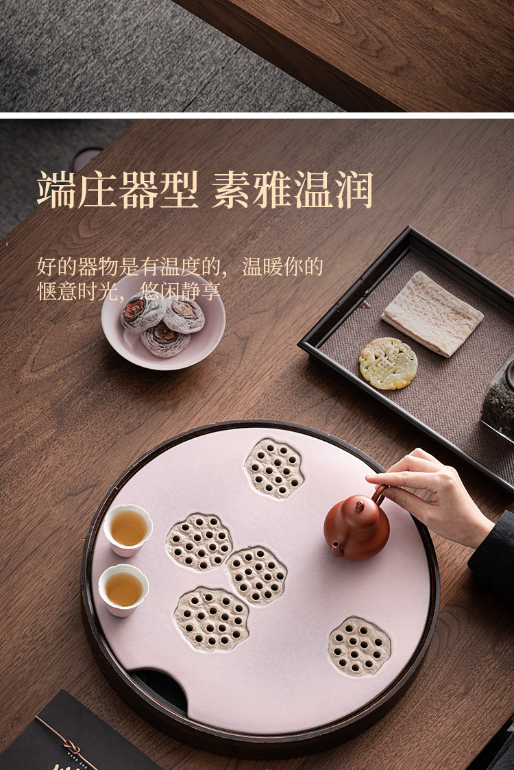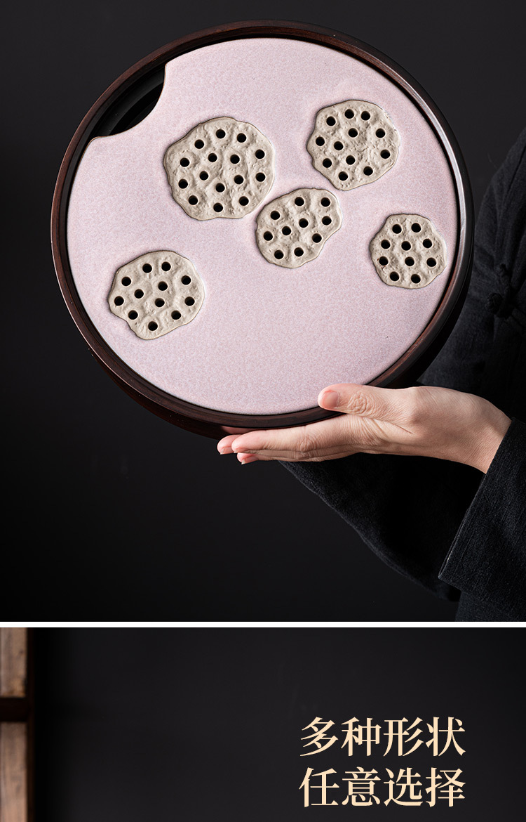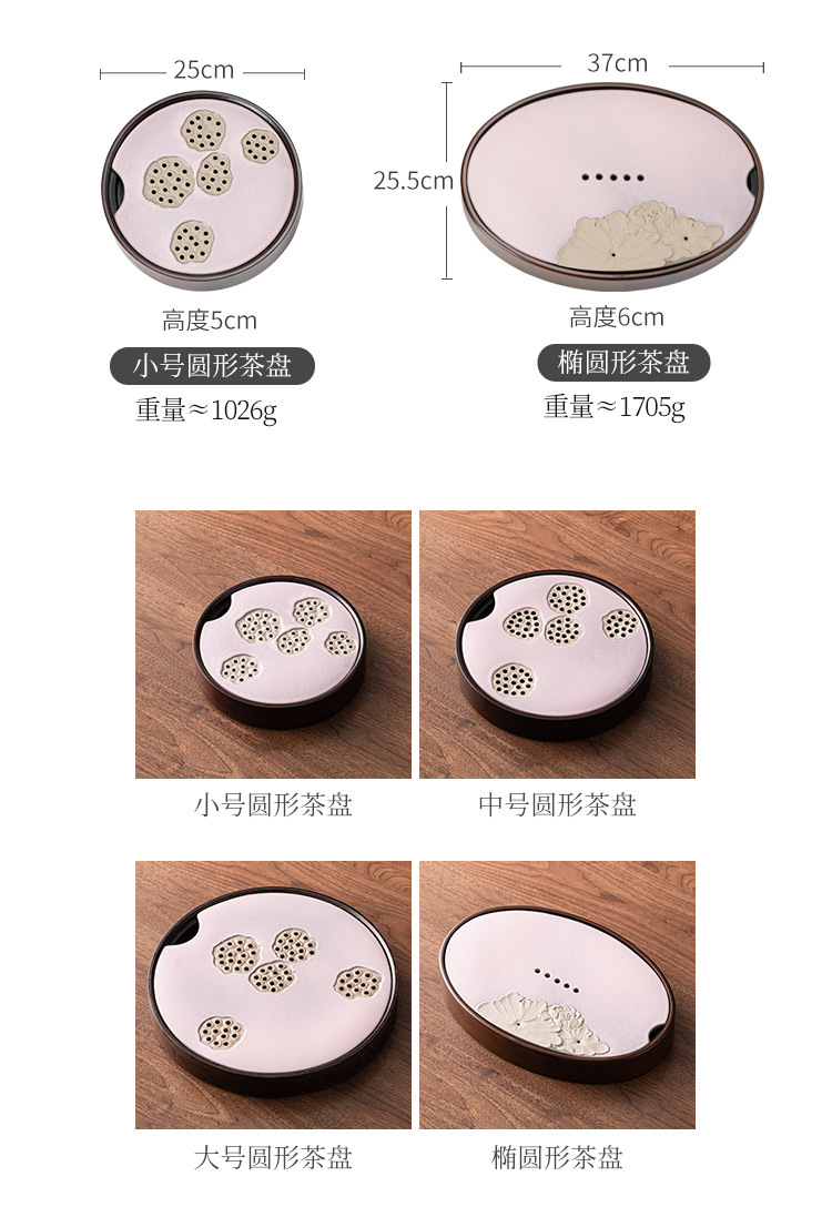 - Khay trà hình tròn lò nung Khay trà bàn pha khô Kung Fu loại nhỏ phòng khách gia dụng khay trà Bộ đồ trà gốm sứ khay để ráo nước