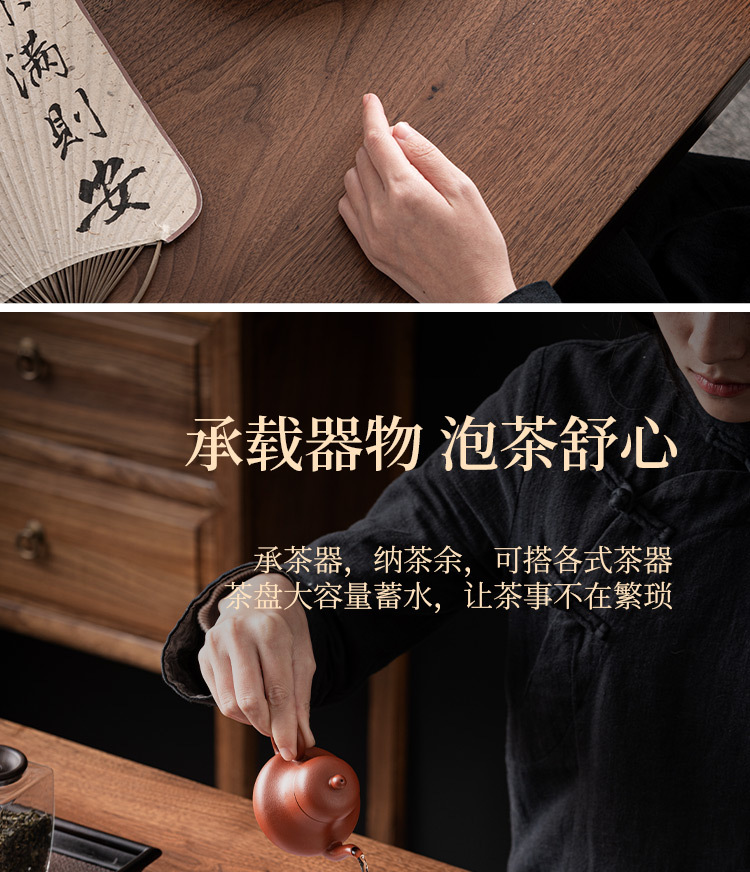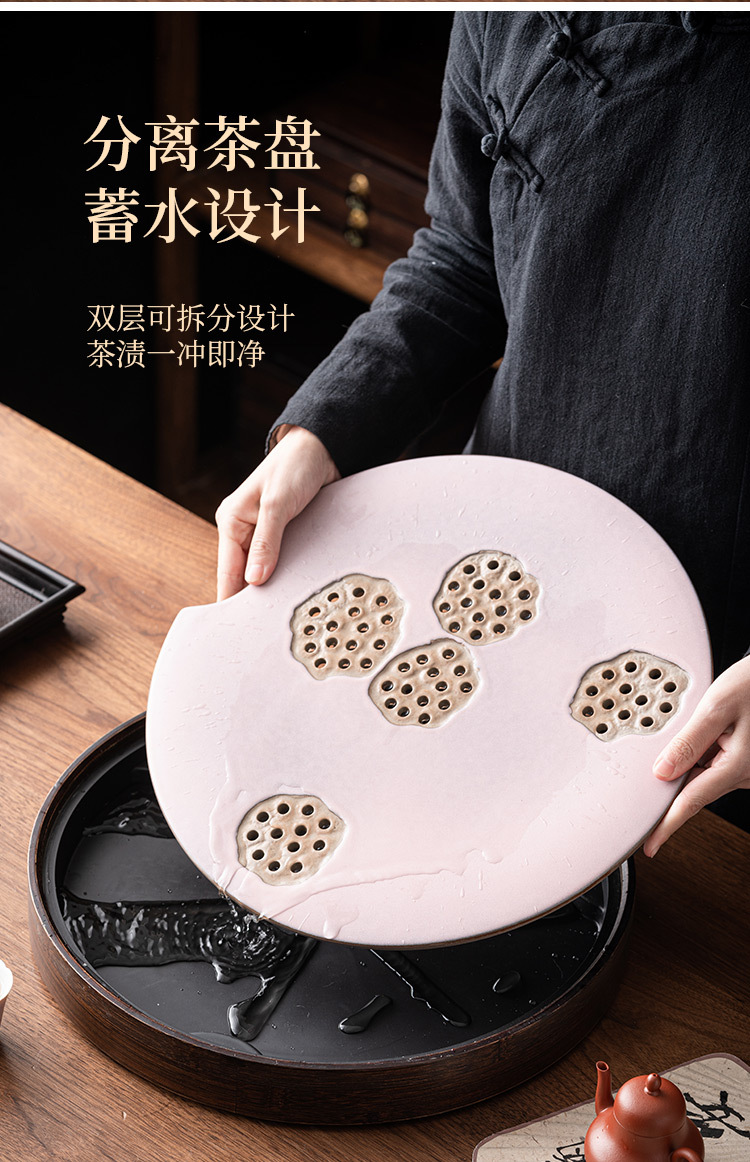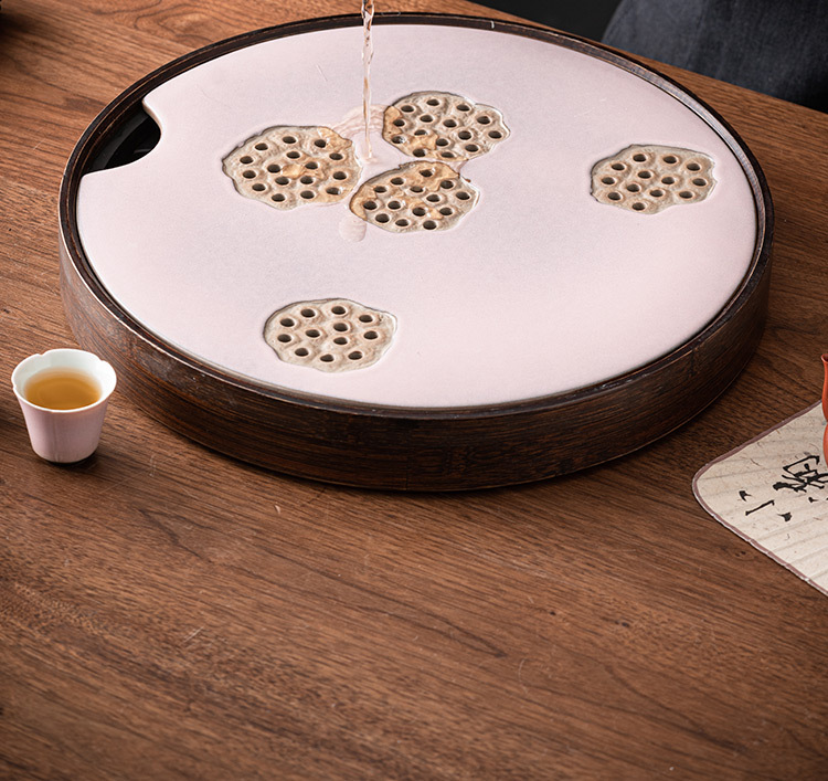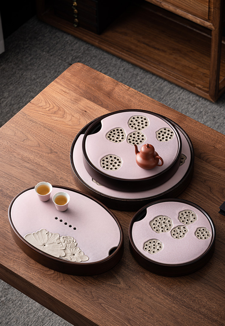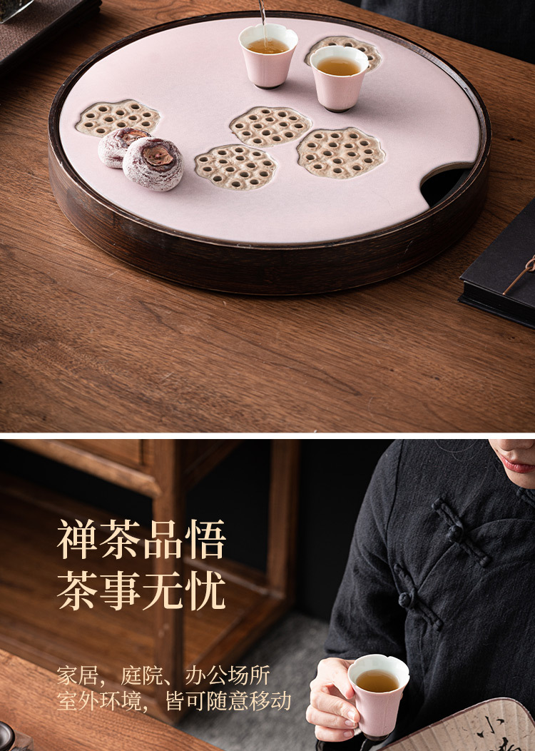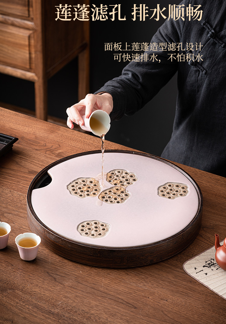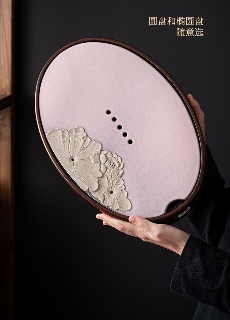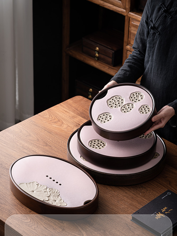 Khay trà hình tròn lò nung Khay trà bàn pha khô Kung Fu loại nhỏ phòng khách gia dụng khay trà Bộ đồ trà gốm sứ khay để ráo nước