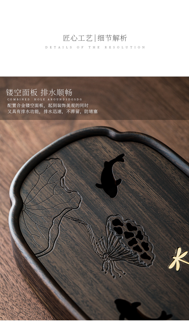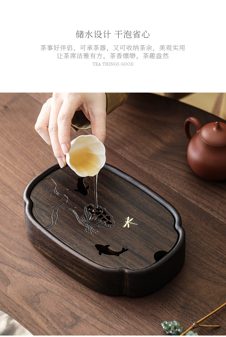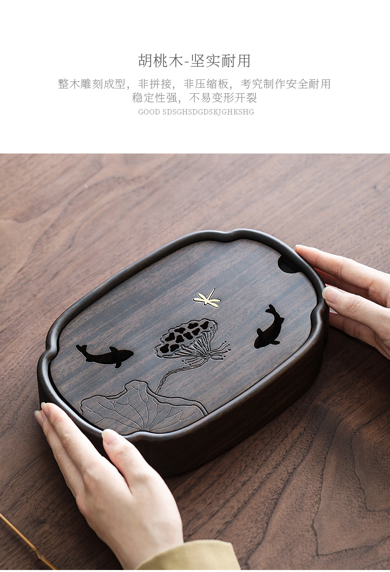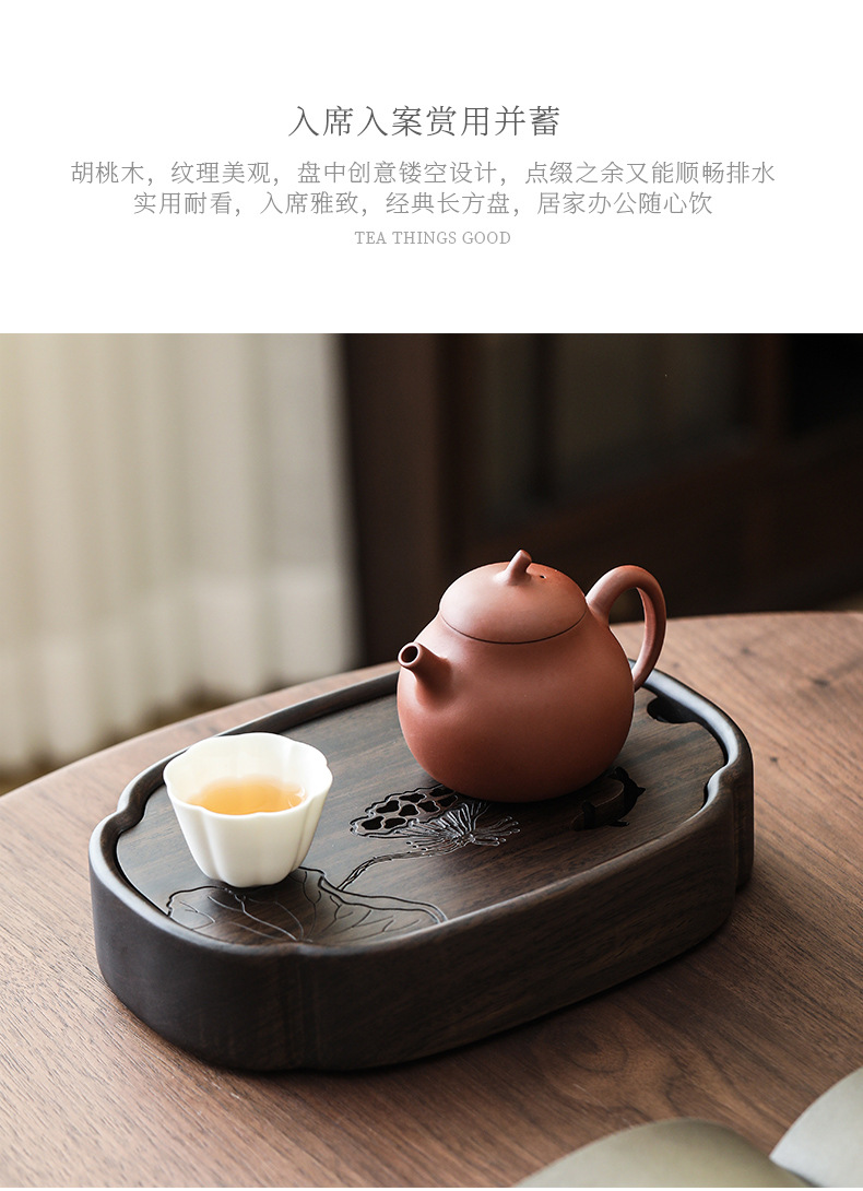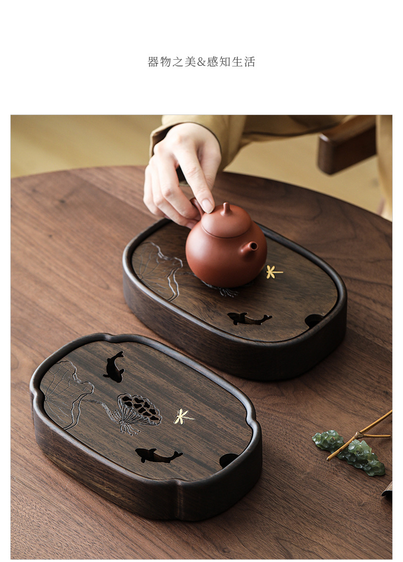 - Khay trà hồ sen Yuxi khay đựng nước hồ óc chó gia dụng dụng dụng cụ pha trà khay trà bàn trà gỗ nguyên khối phụ kiện