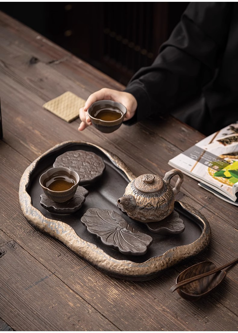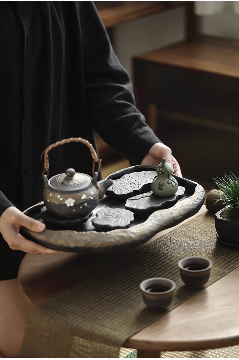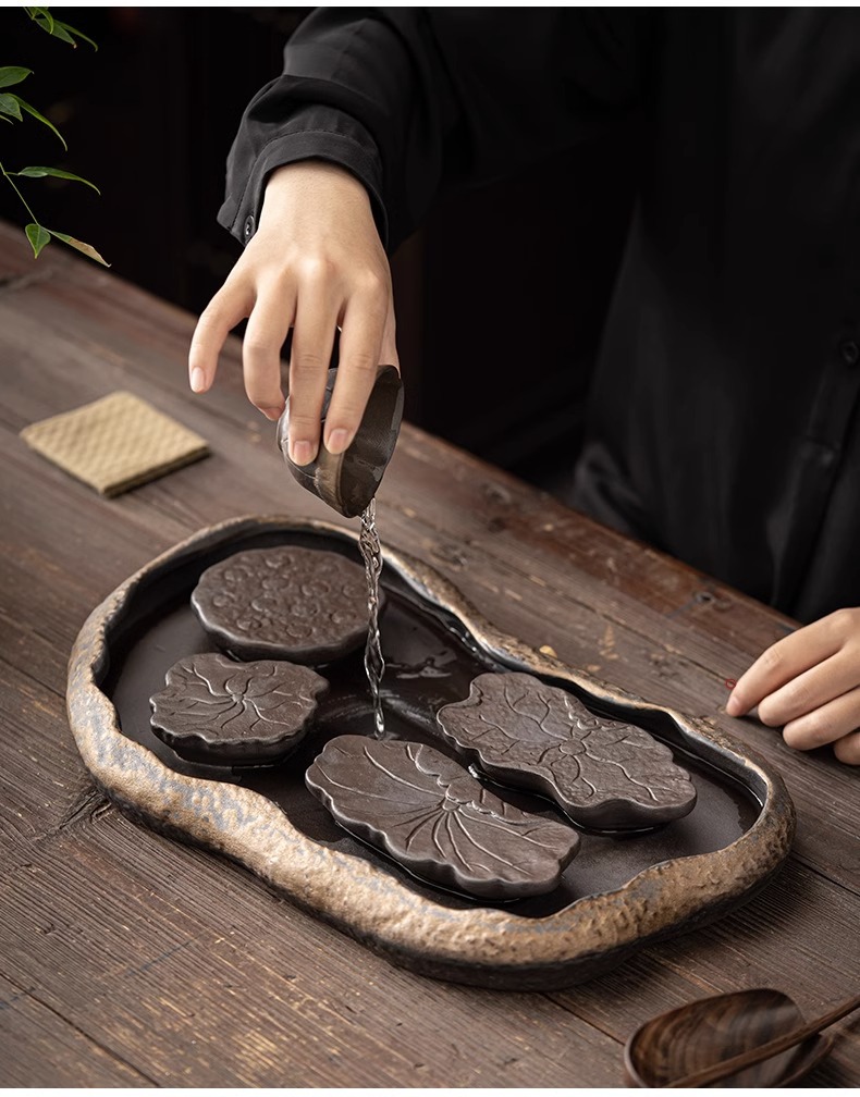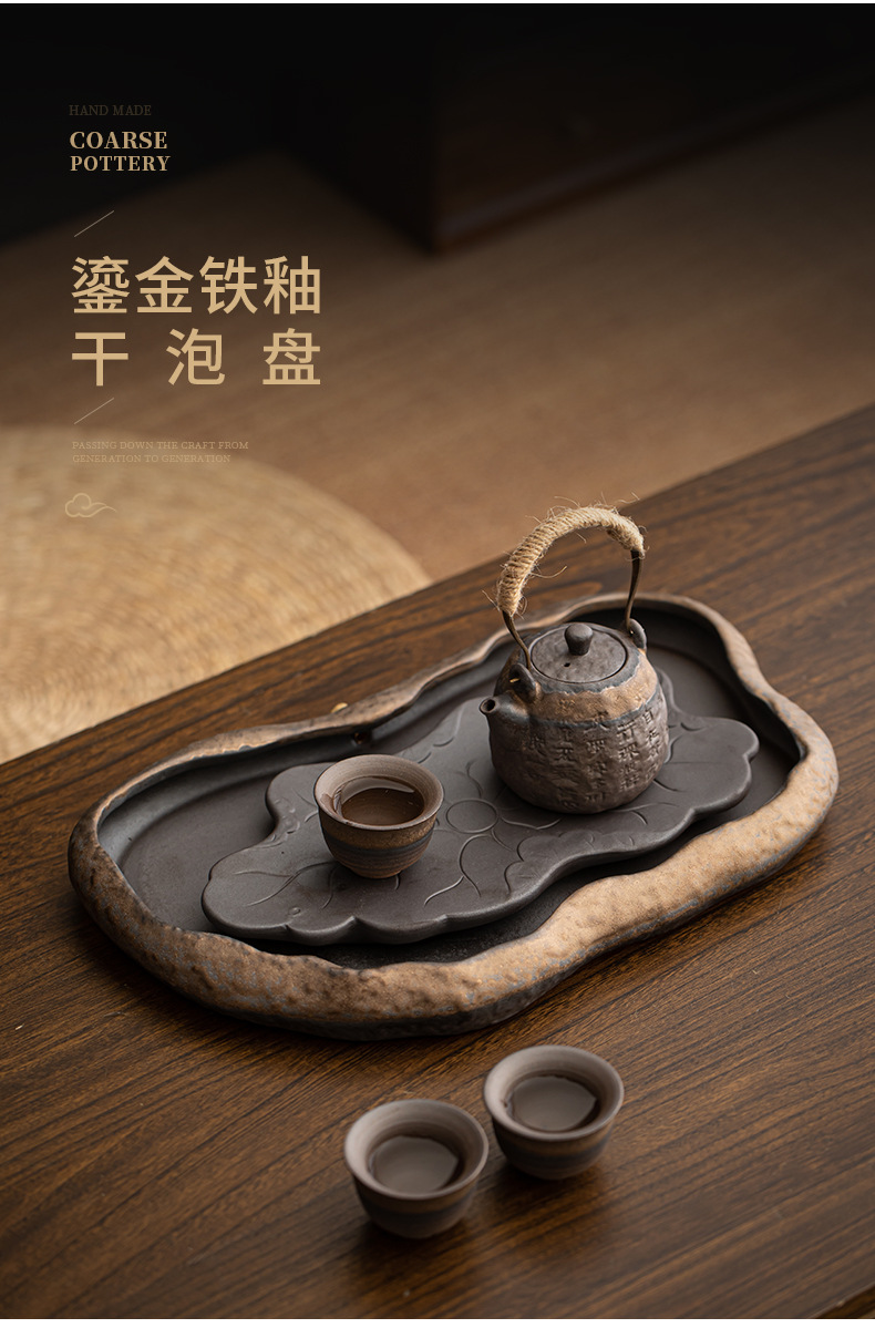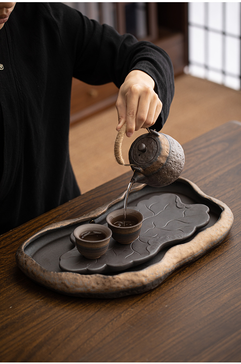 - Khay trà kiểu Nhật, khay đựng nước bằng gốm, khay đựng bọt khô cỡ nhỏ, khay đựng trà Kung Fu, khay đựng ấm, khay đựng trà thiền gốm thô