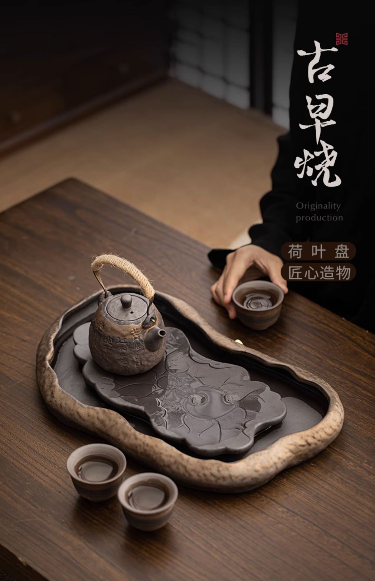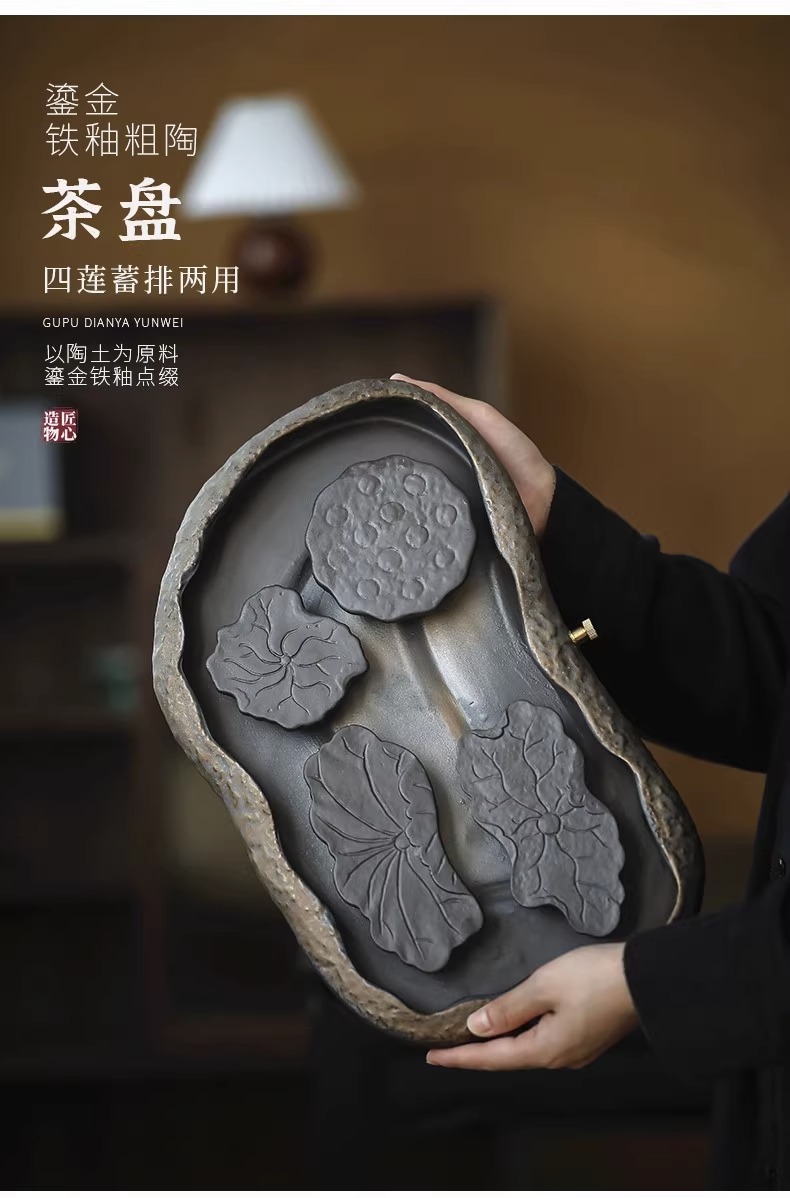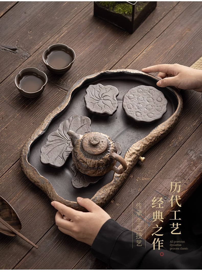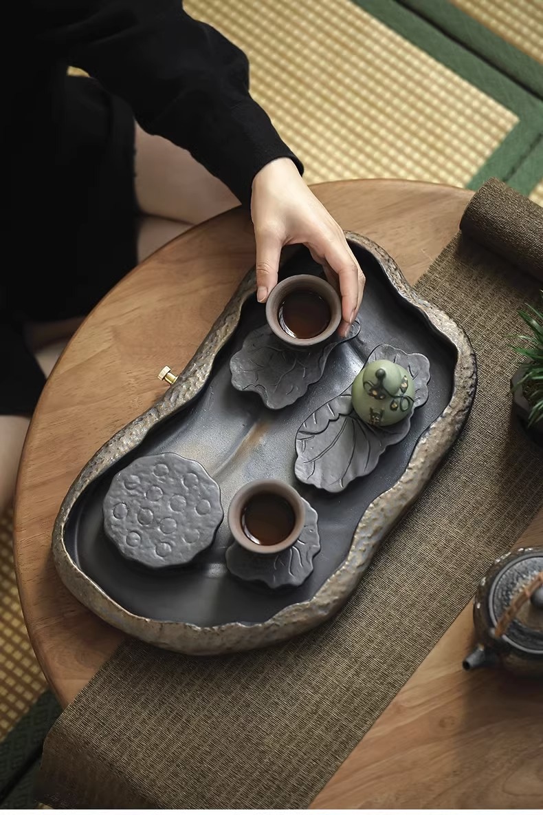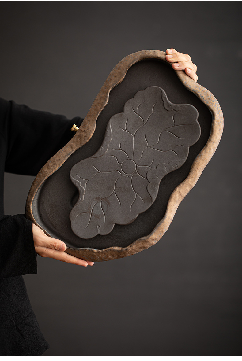 - Khay trà kiểu Nhật, khay đựng nước bằng gốm, khay đựng bọt khô cỡ nhỏ, khay đựng trà Kung Fu, khay đựng ấm, khay đựng trà thiền gốm thô