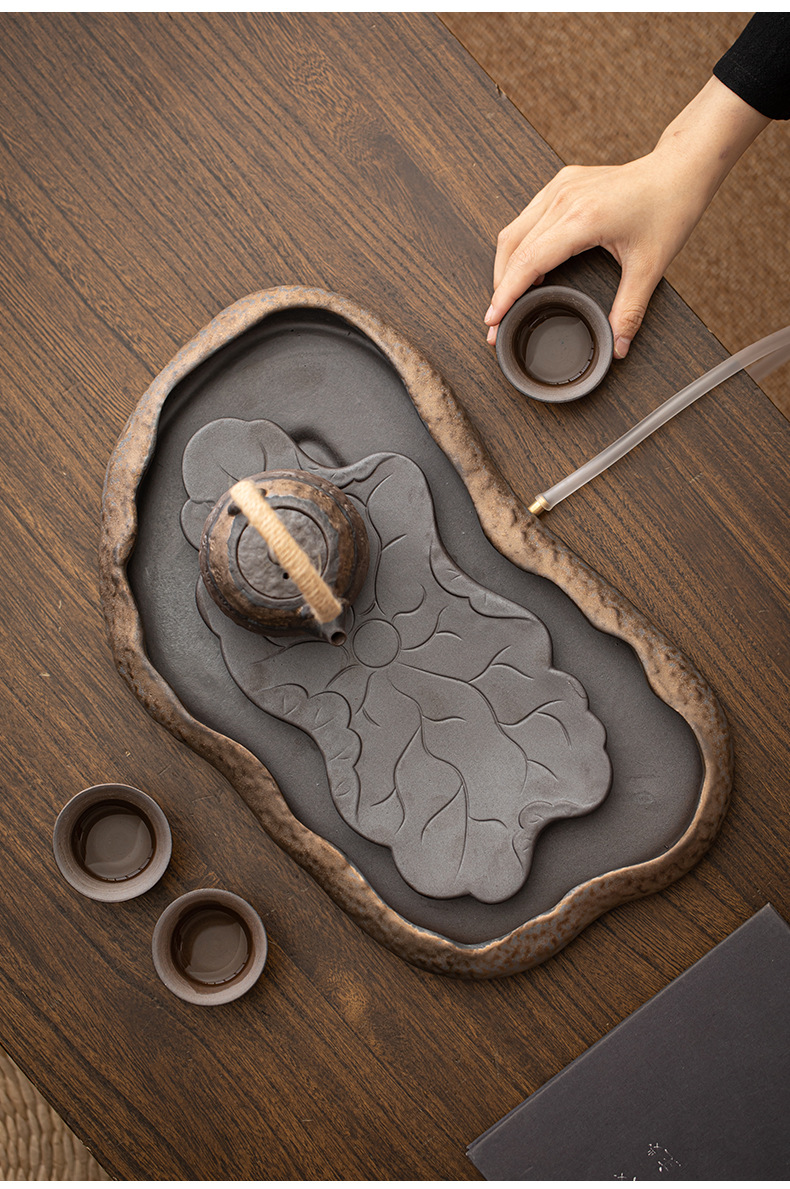 Khay trà kiểu Nhật, khay đựng nước bằng gốm, khay đựng bọt khô cỡ nhỏ, khay đựng trà Kung Fu, khay đựng ấm, khay đựng trà thiền gốm thô