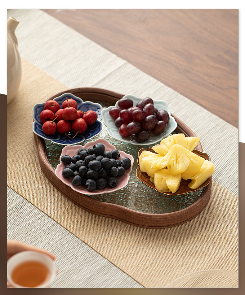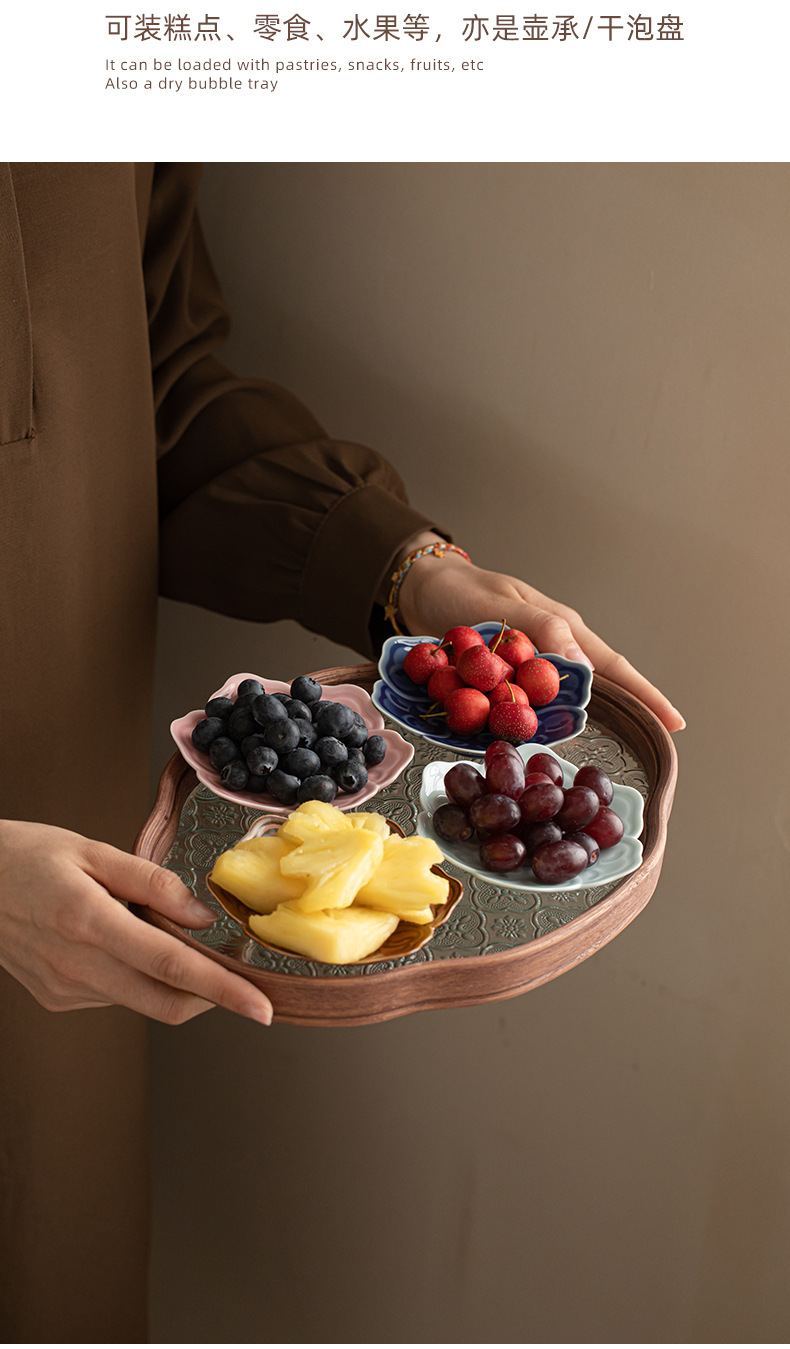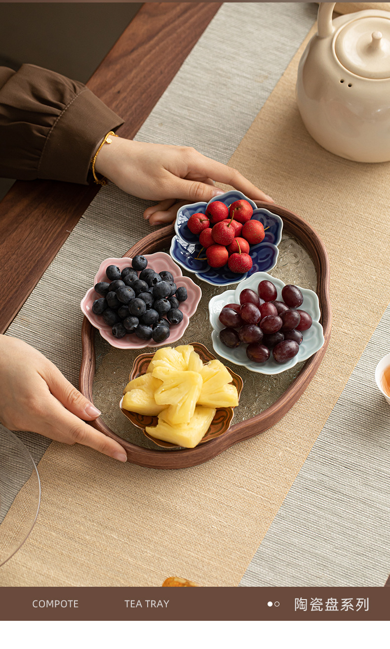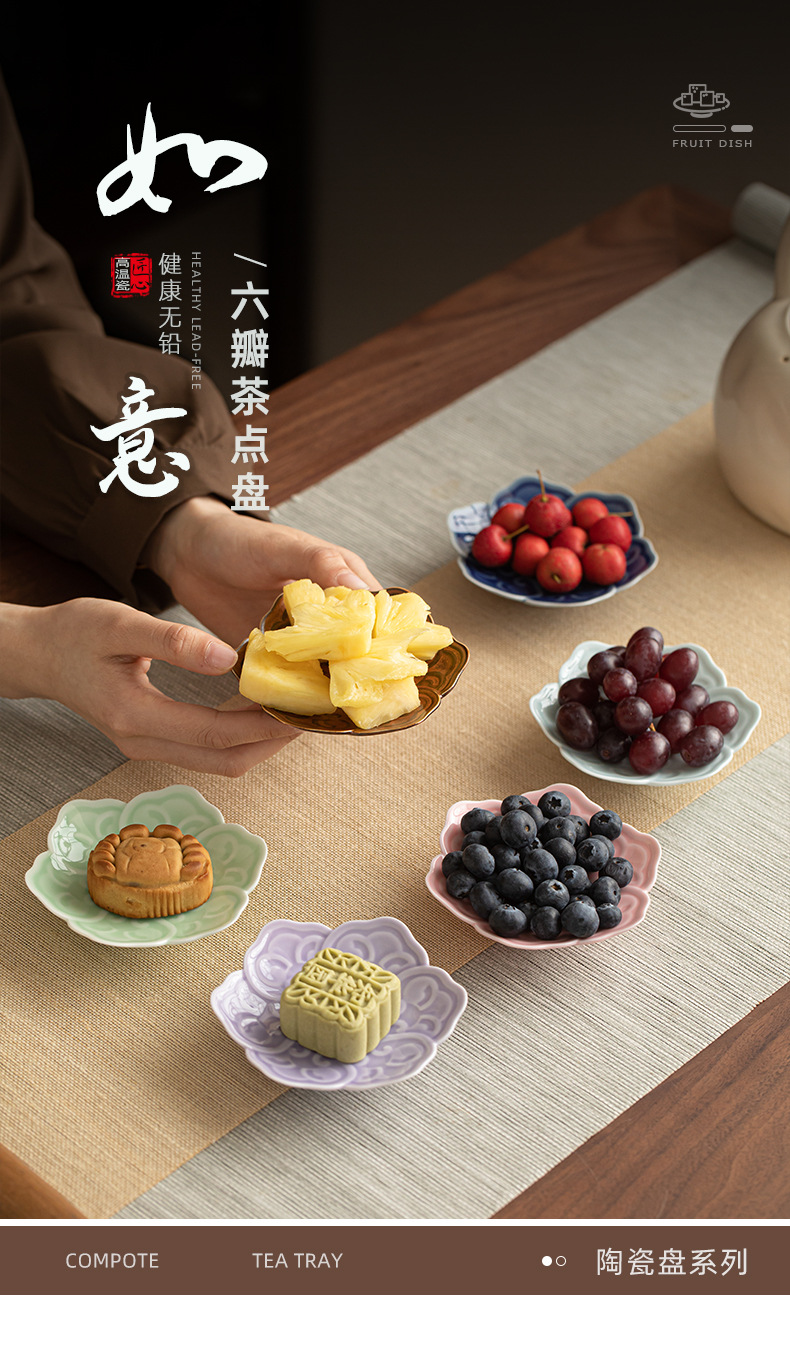 - Khay trà sáu cánh Ruyi kiểu Trung Quốc, đĩa trái cây gốm sứ nhỏ, đĩa bánh ngọt, khay phòng khách, đĩa hạt dưa