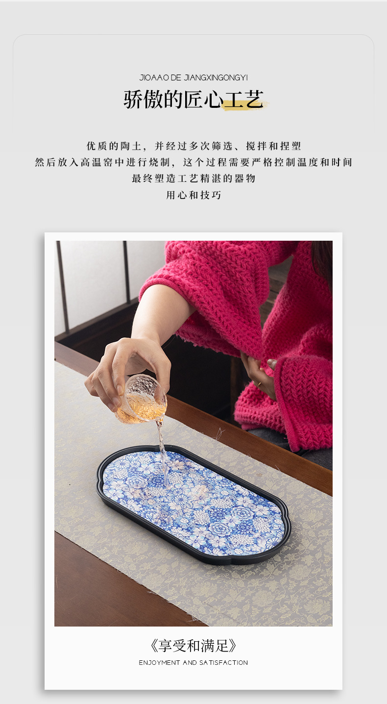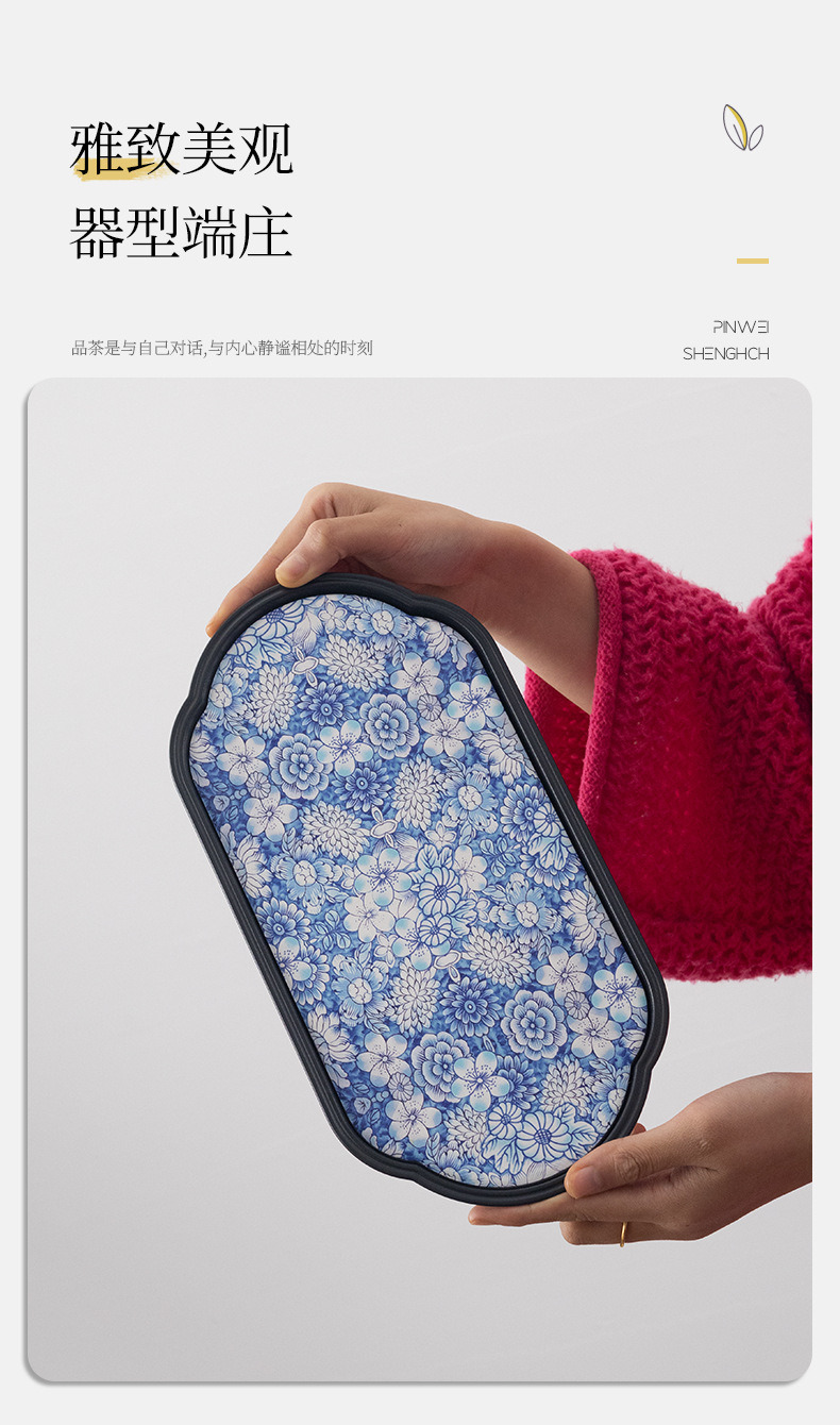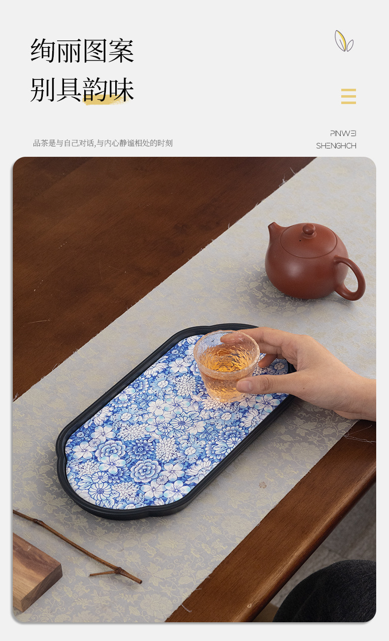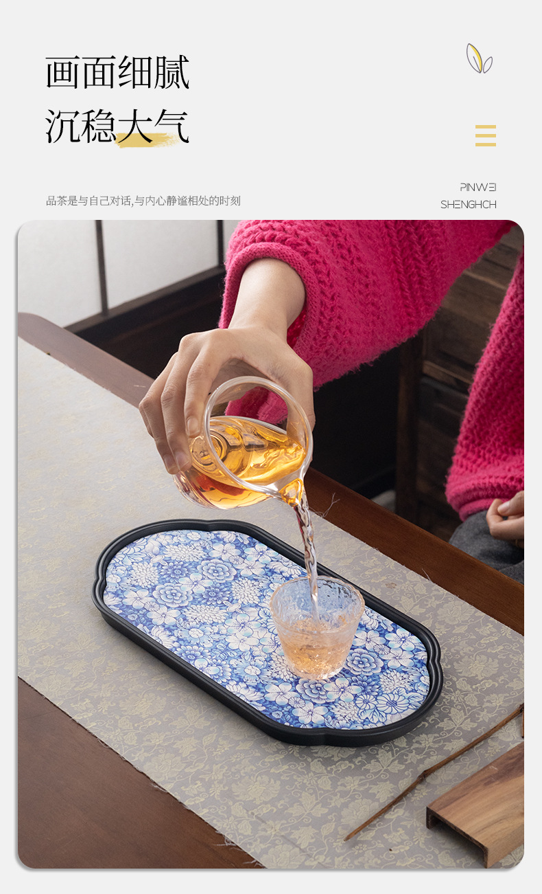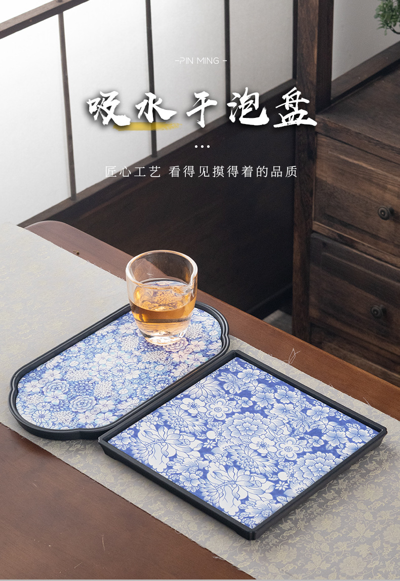 - Khay trà xanh trắng cổ điển kiểu Trung Quốc Mới Bộ Trà Công Phu gốm sứ gia dụng đệm bình trà bàn pha khô hút nước loại nhỏ khay trà