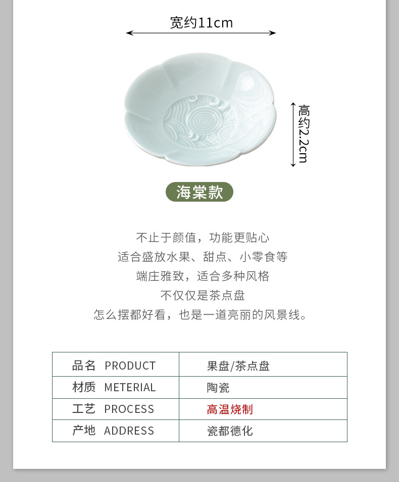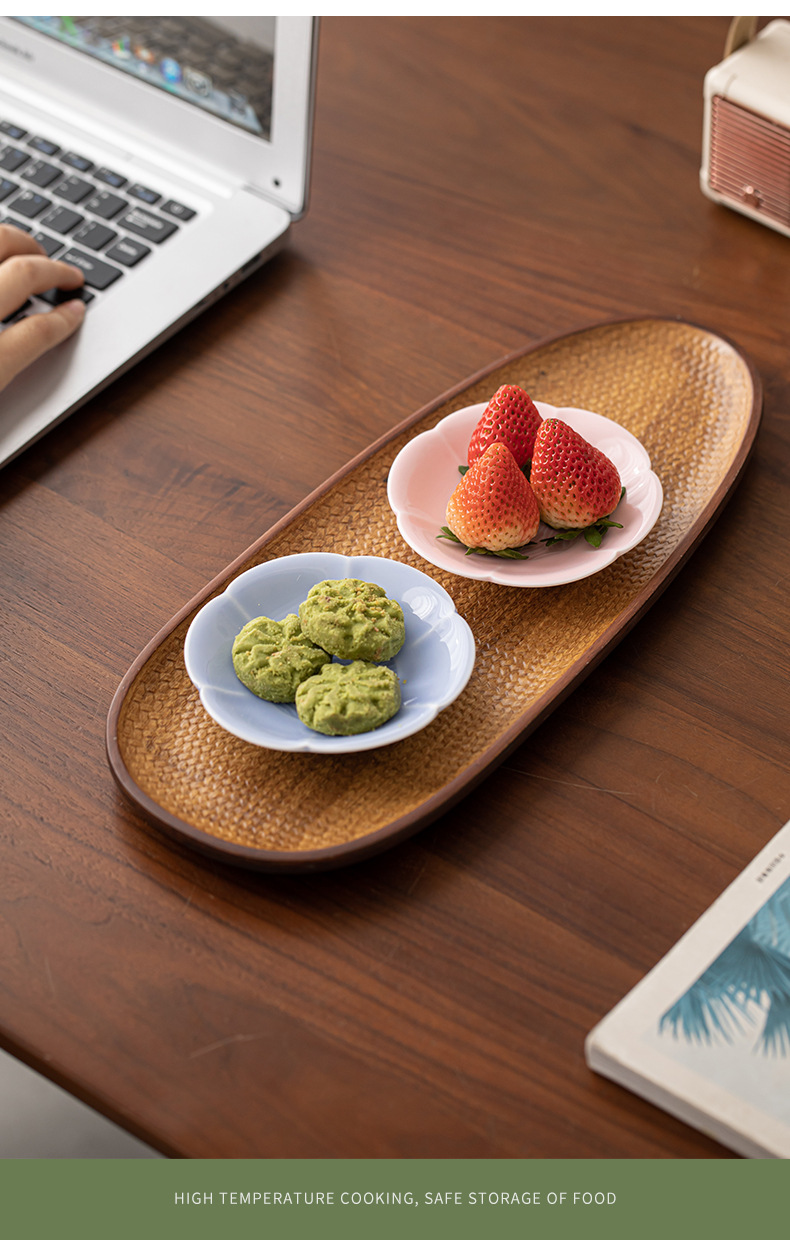 Khay trái cây gốm sứ thu hải đường khay đựng đồ ăn nhẹ kiểu Trung Quốc khay đựng đồ kẹo trái cây sấy khô khay đựng cà phê phòng khách gia dụng khay đựng đồ uống khách sạn