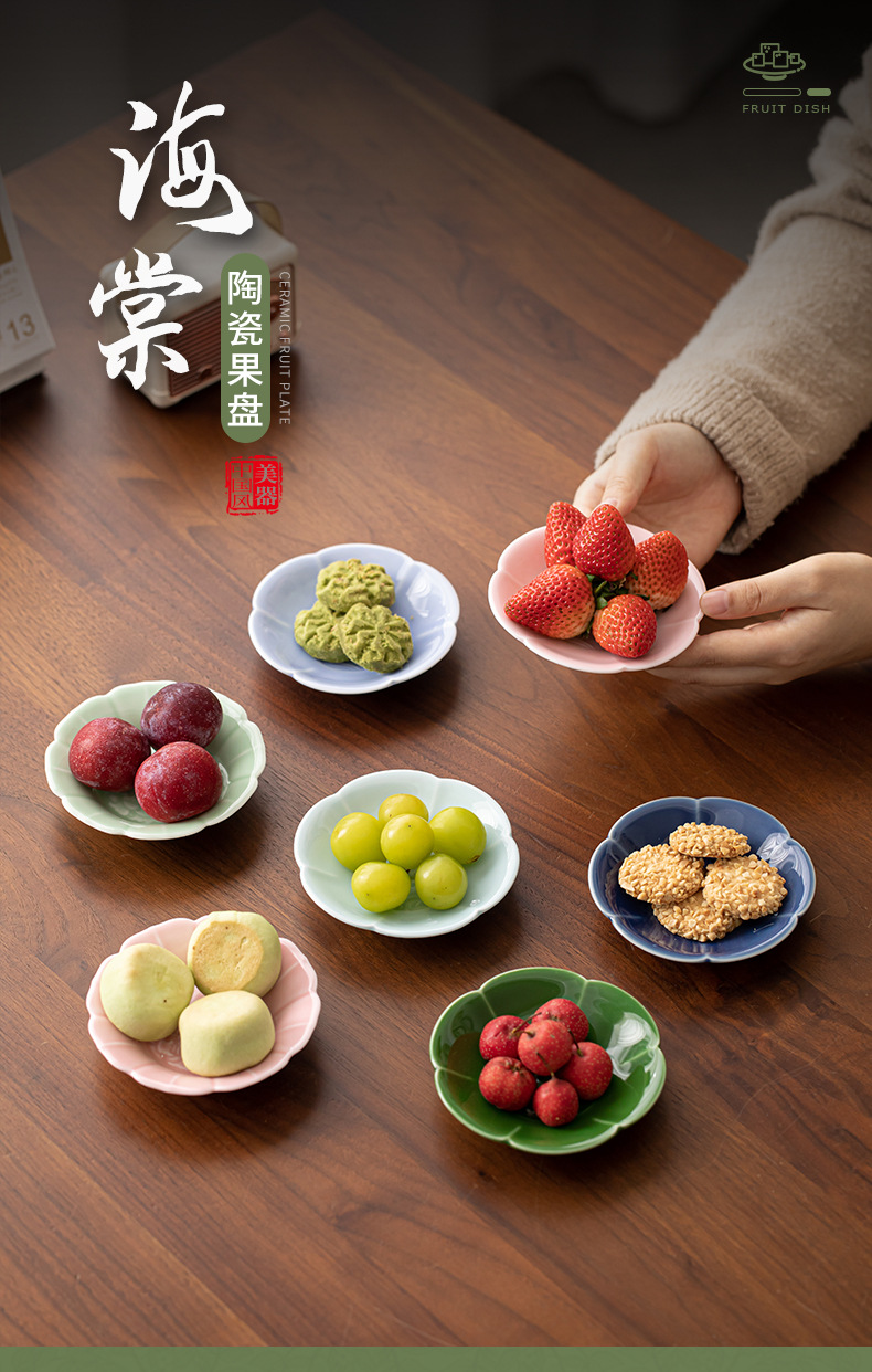 - Khay trái cây gốm sứ thu hải đường khay đựng đồ ăn nhẹ kiểu Trung Quốc khay đựng đồ kẹo trái cây sấy khô khay đựng cà phê phòng khách gia dụng khay đựng đồ uống khách sạn