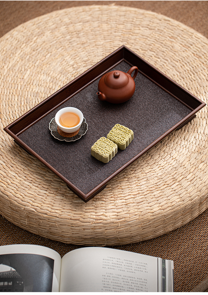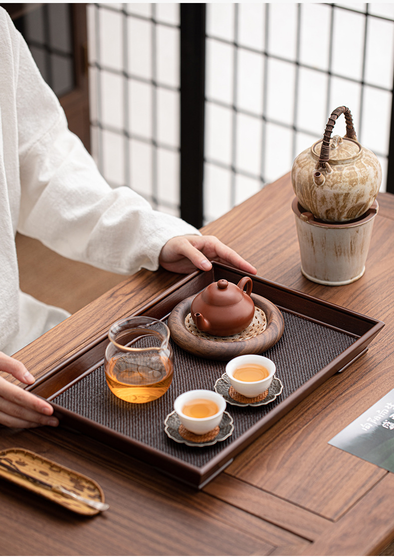 - Khay tre và mây hình chữ nhật hộ gia đình đơn giản khay bong bóng khô khay trà Bộ trà Trung Quốc cốc nước khay đựng