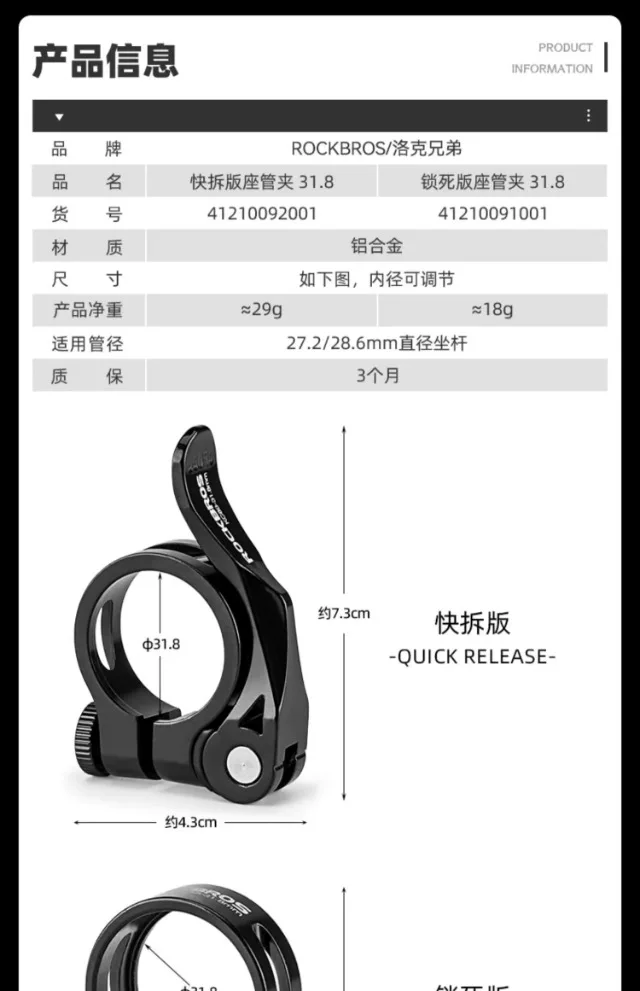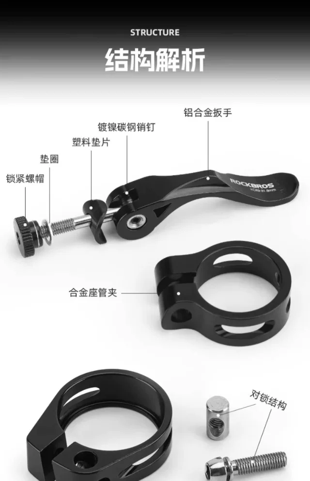 - Khóa kẹp yên xe đạp Rock Brothers, khóa nhanh, dành cho xe đạp leo núi và đường trường, khóa cố định yên xe