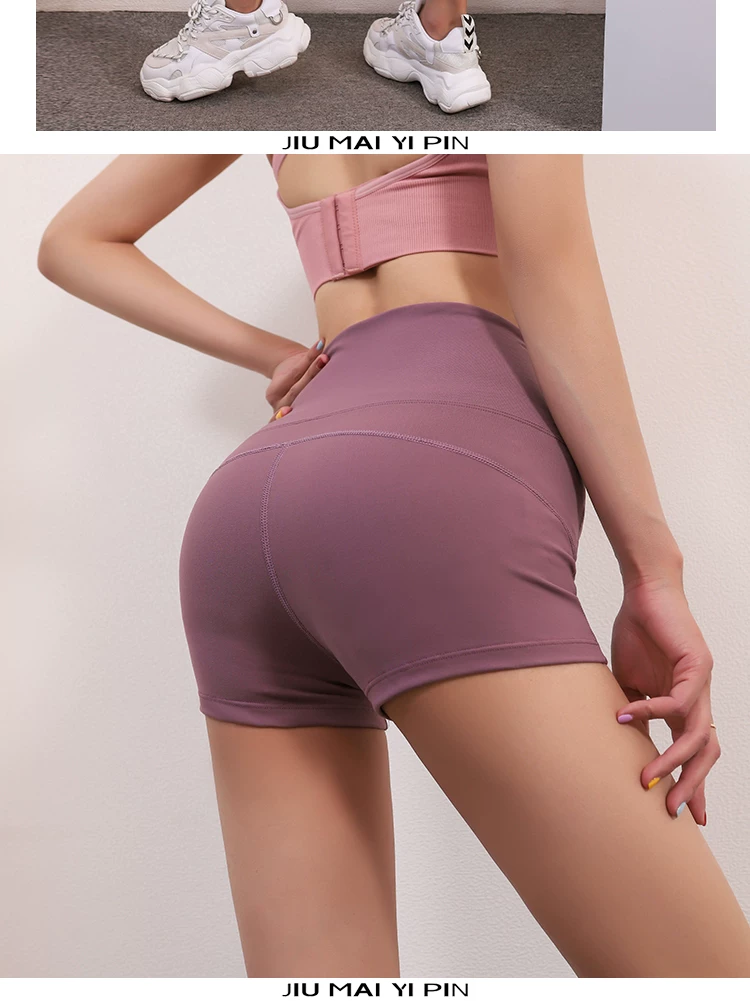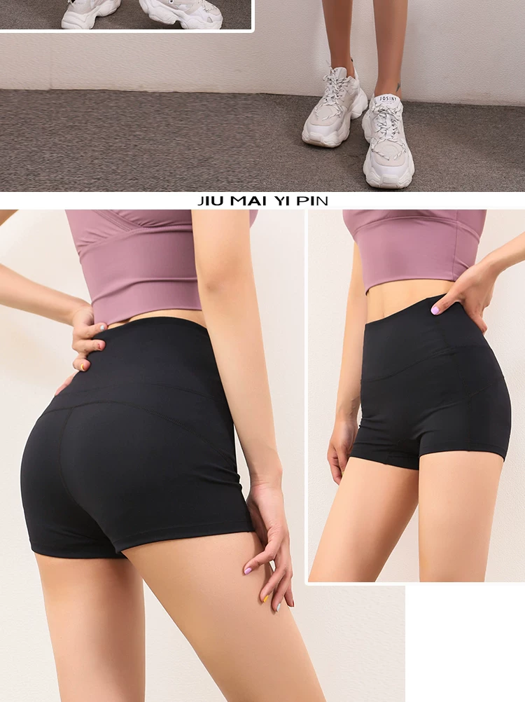 Không có đường may lộ liễu, quần short yoga cạp cao nâng mông, ôm sát, co giãn dành cho nữ, quần short chạy bộ, quần short mùa hè.