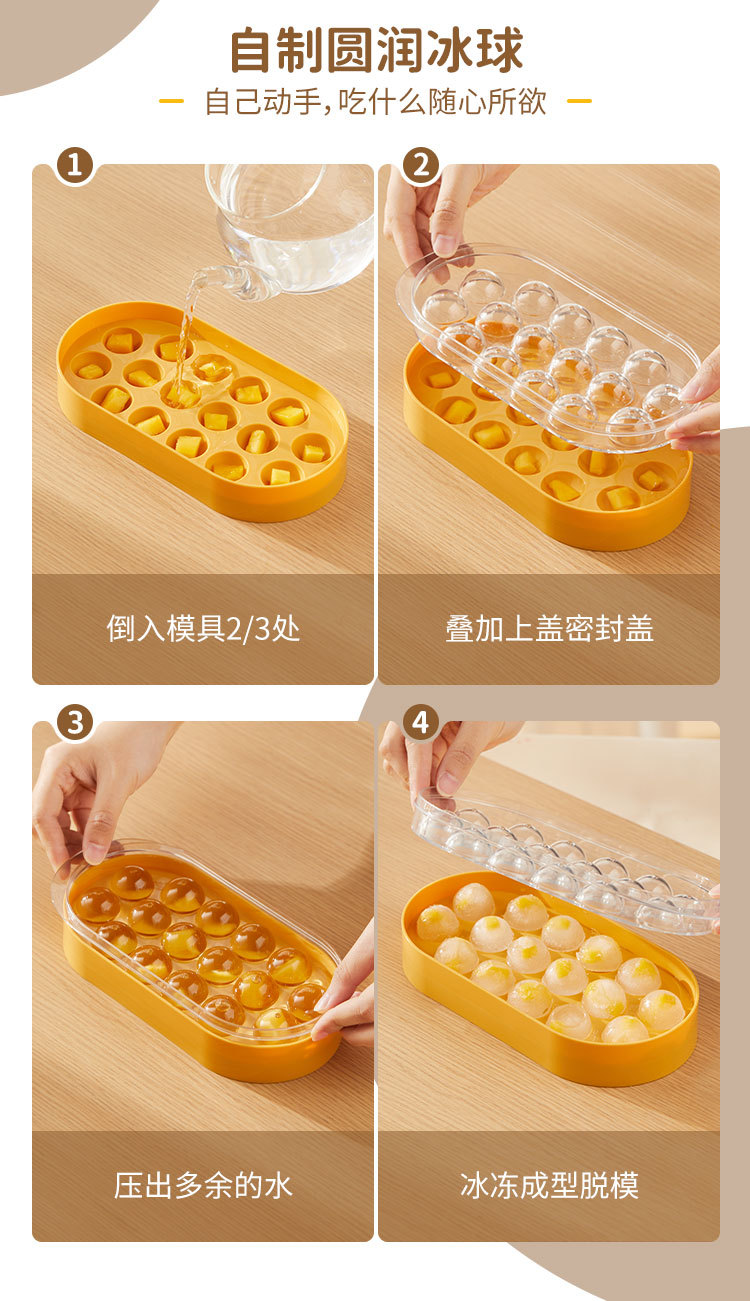- Khuôn đá viên khúc côn cầu gia dụng hình tròn hình cầu nhỏ có nắp làm đá viên hiện vật ngăn đá Silicone cấp thực phẩm