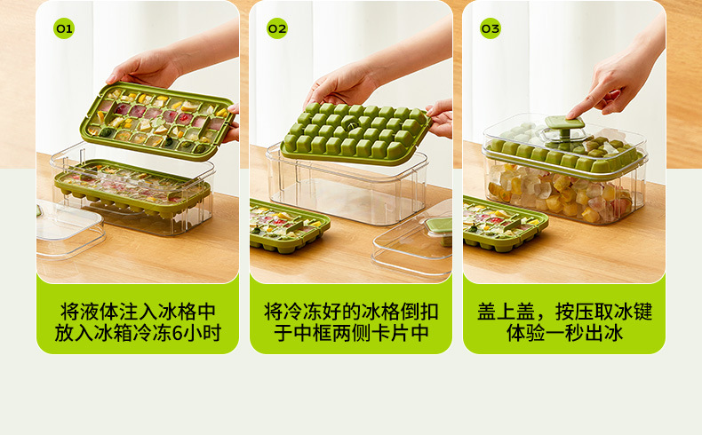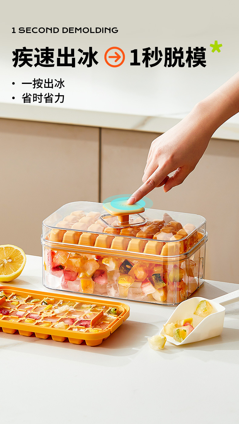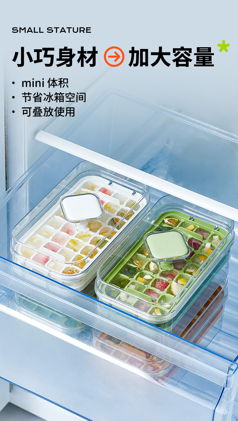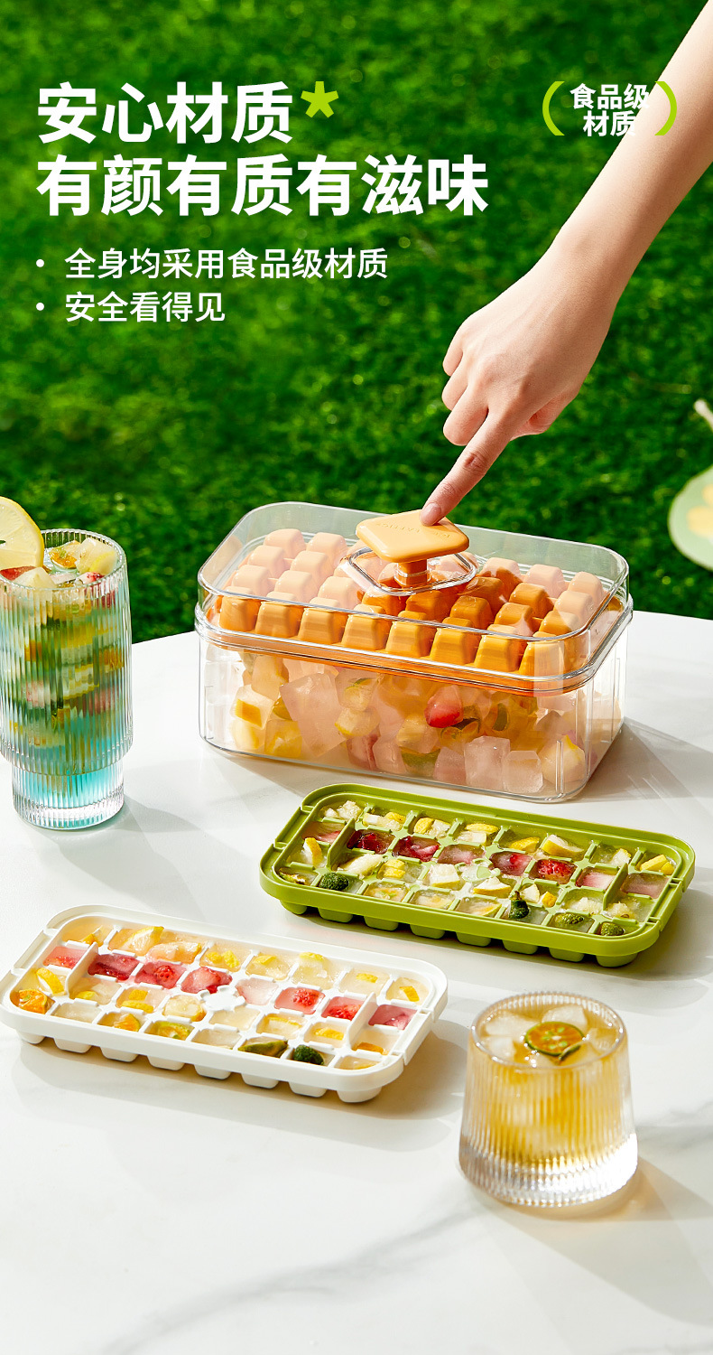 Khuôn đá viên, ngăn đá ép dung tích lớn, hộp đựng đá làm đá cấp thực phẩm gia dụng có nắp, dụng cụ bảo quản đá viên trong tủ lạnh