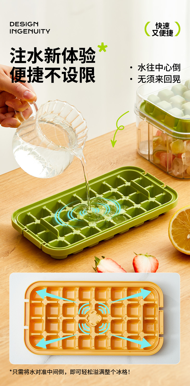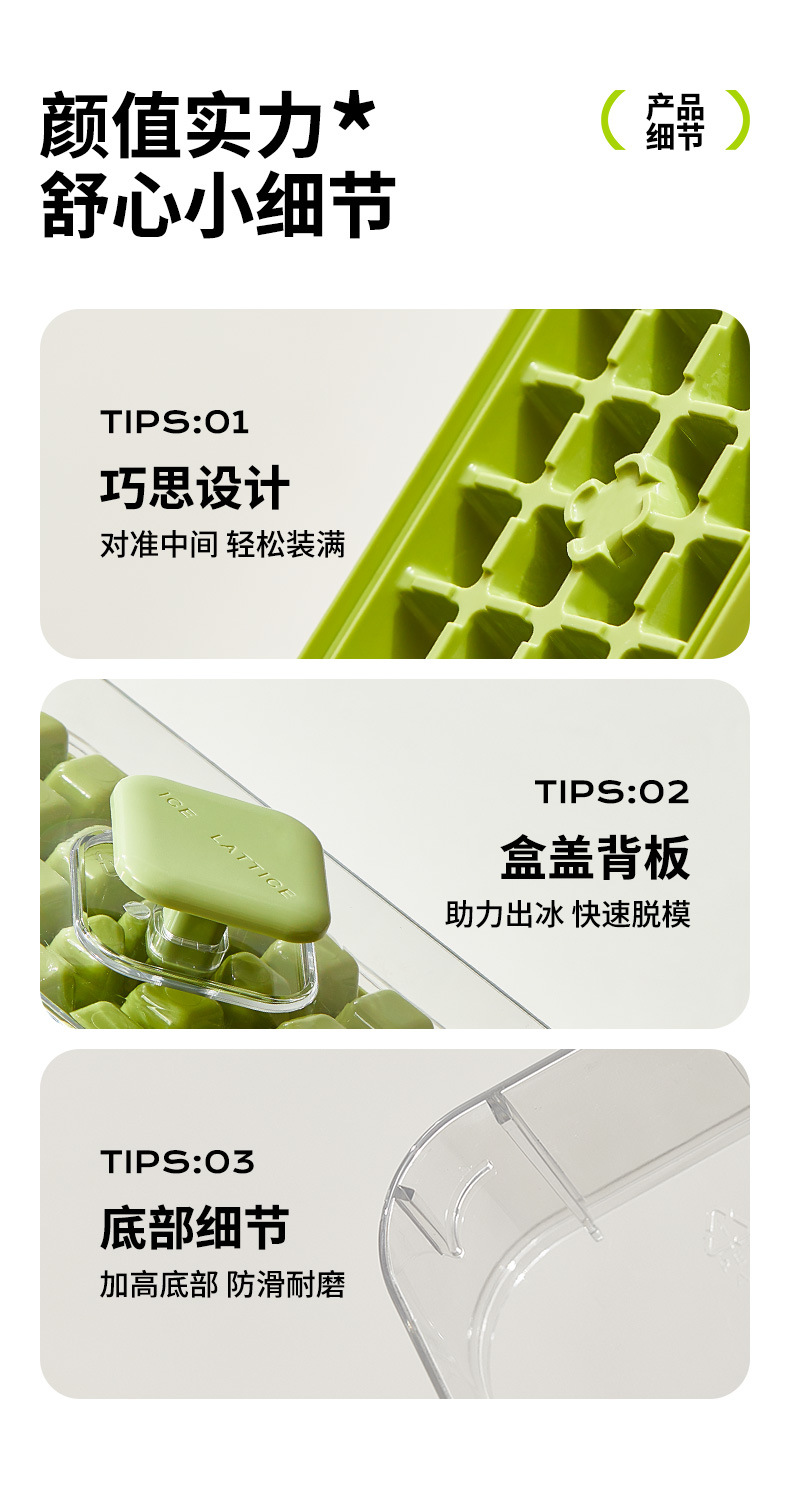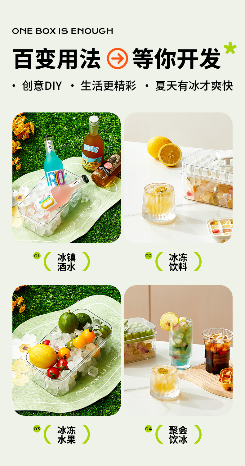 Khuôn đá viên, ngăn đá ép dung tích lớn, hộp đựng đá làm đá cấp thực phẩm gia dụng có nắp, dụng cụ bảo quản đá viên trong tủ lạnh