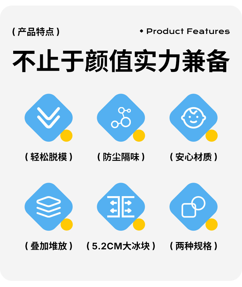 Khuôn đá viên Xia Xu, hộp làm đá cấp thực phẩm tự chế gia dụng, bộ có nắp, khuôn tháo khuôn nhanh chóng và dễ dàng
