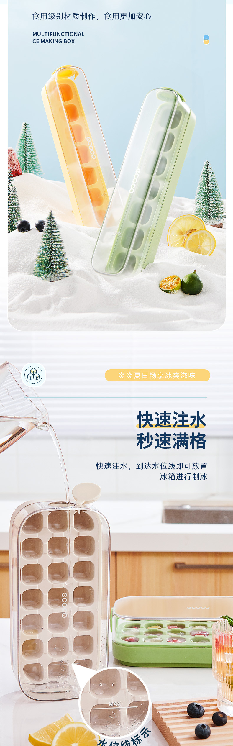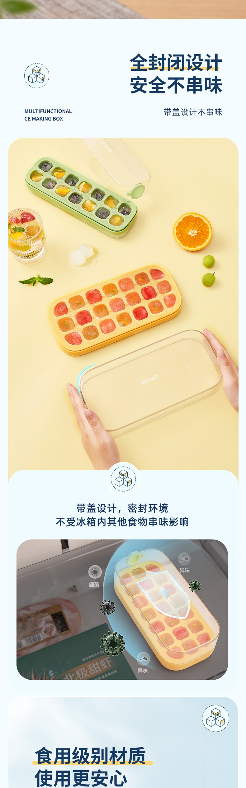 - Khuôn ép đá viên, hộp làm đá có nắp, mô hình đá viên cấp thực phẩm, tủ lạnh tự chế, đồ tạo tác đá viên