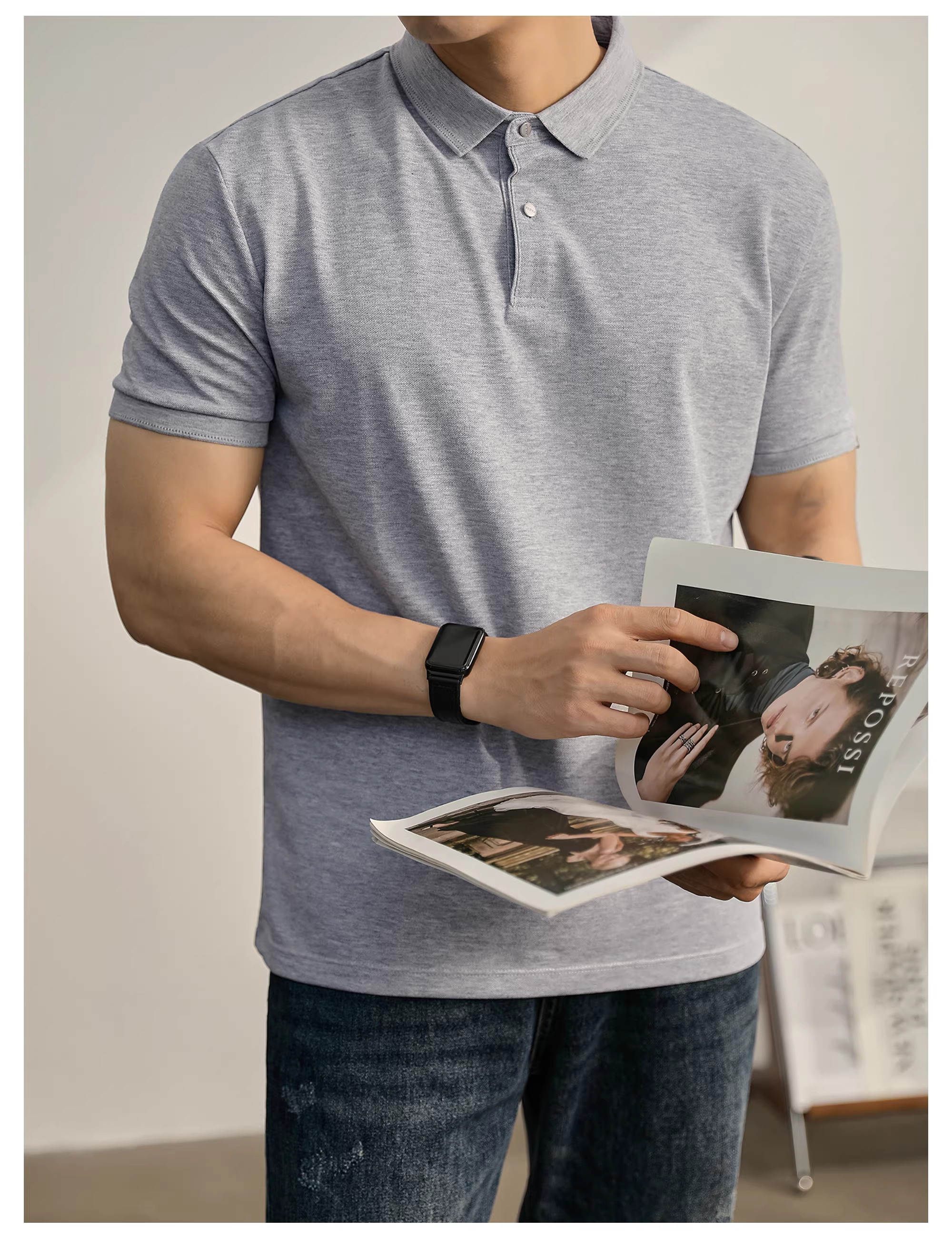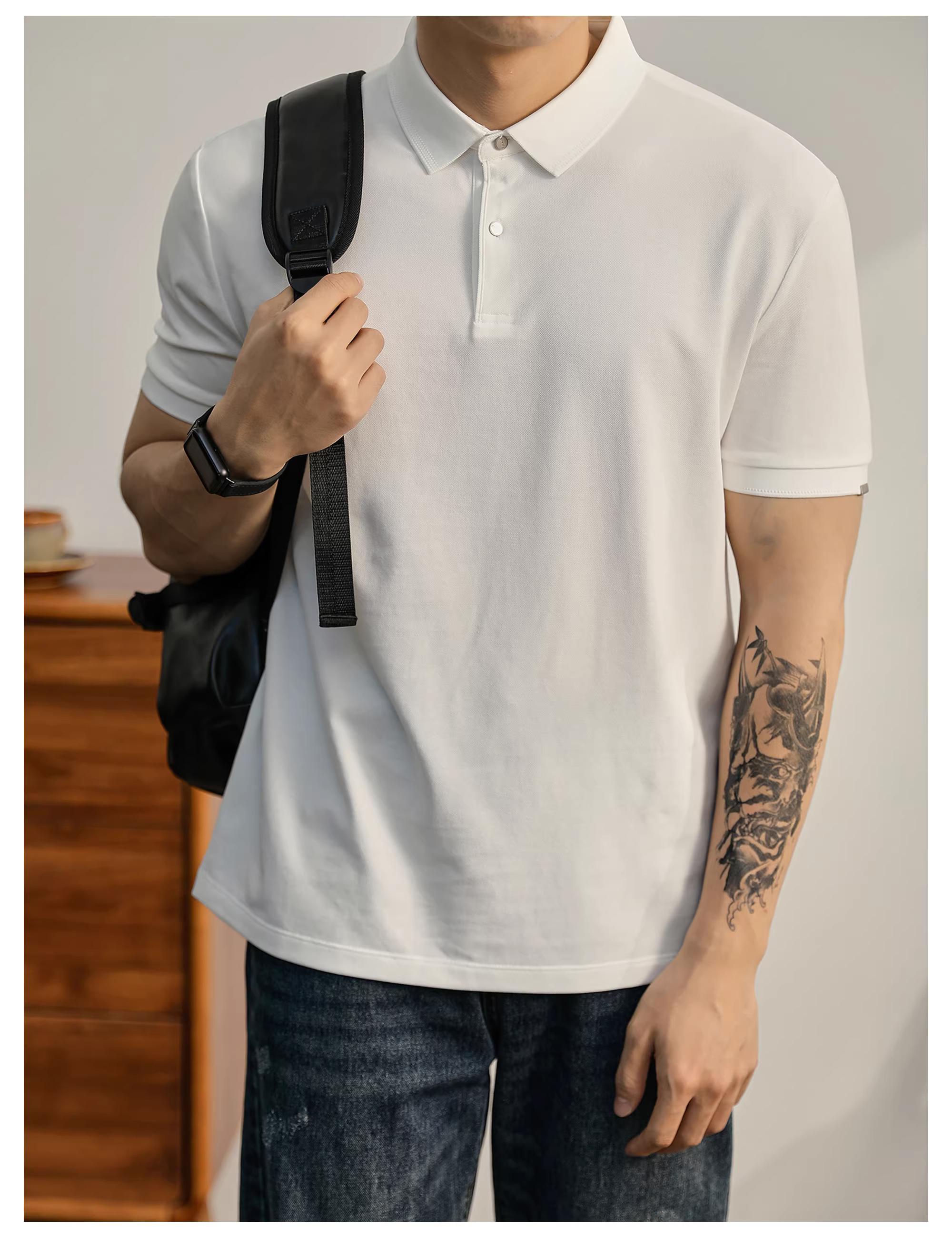 - Khuyến mãi đặc biệt: Áo Polo nam tay ngắn cổ trụ màu đen phong cách thường ngày đô thị, chất liệu cotton mềm mại, ôm dáng, thích hợp cho mùa hè.