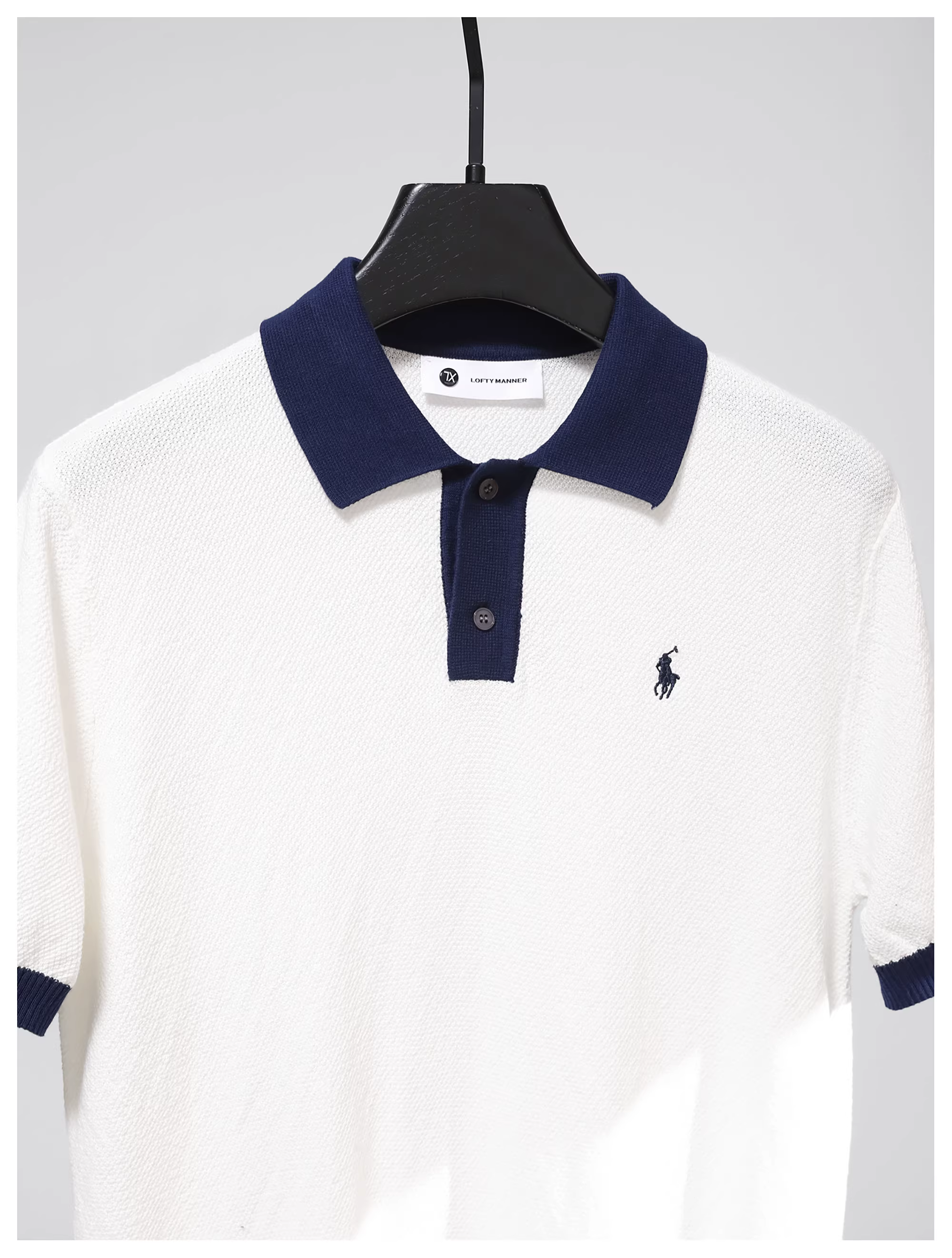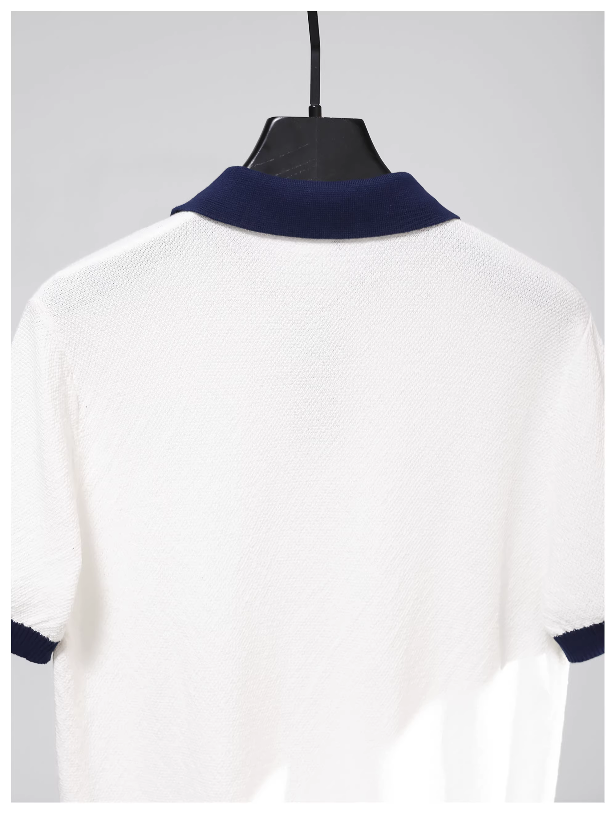 Khuyến mãi đặc biệt: Áo polo nam tay ngắn dệt kim phối màu cổ điển phong cách quý ông, chất liệu cotton nguyên chất, có họa tiết thêu.