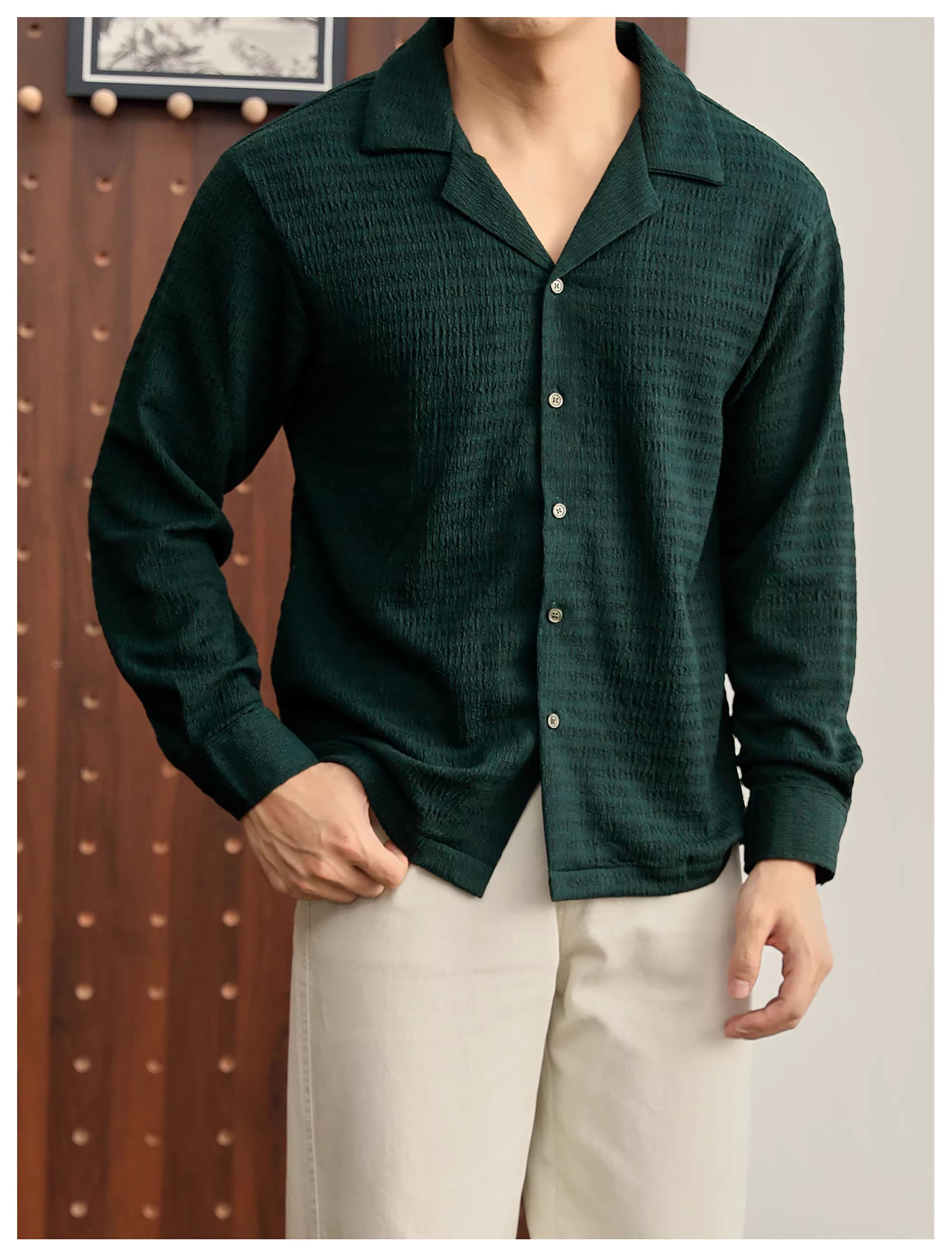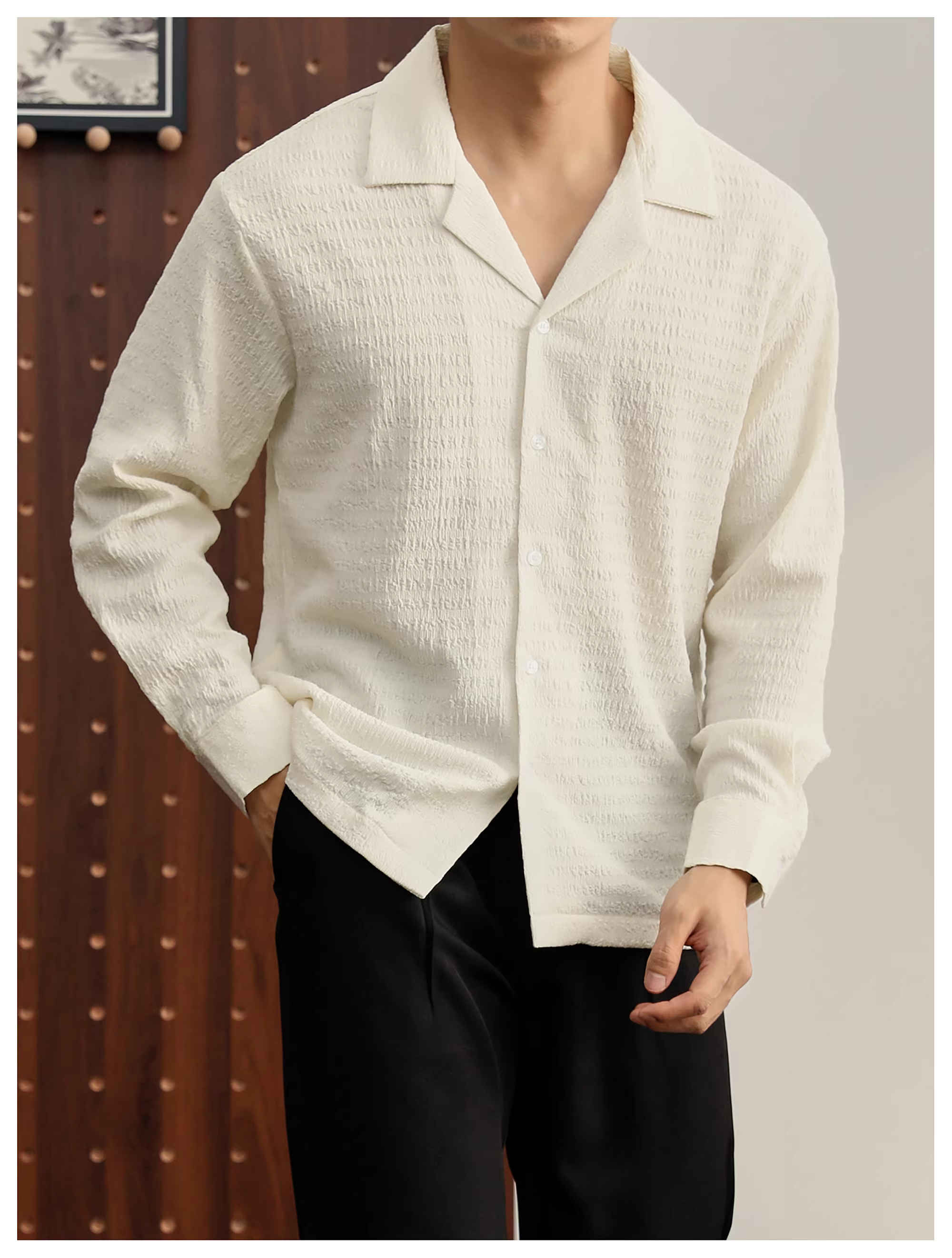 Khuyến mãi đặc biệt: Áo sơ mi nam cổ Cuba tay dài chất liệu jacquard cao cấp phong cách cổ điển sang trọng, chất liệu voan bồng bềnh mùa thu.