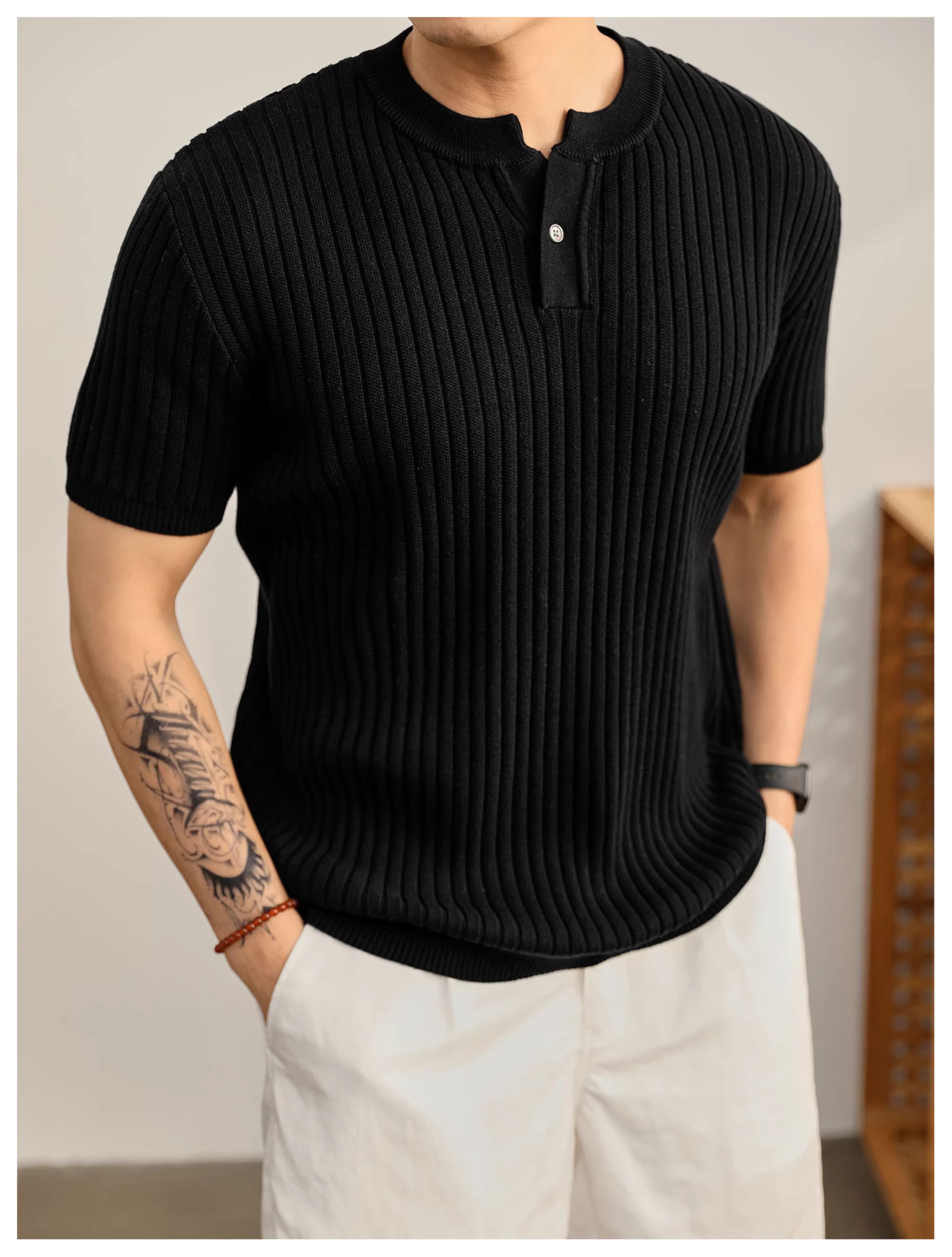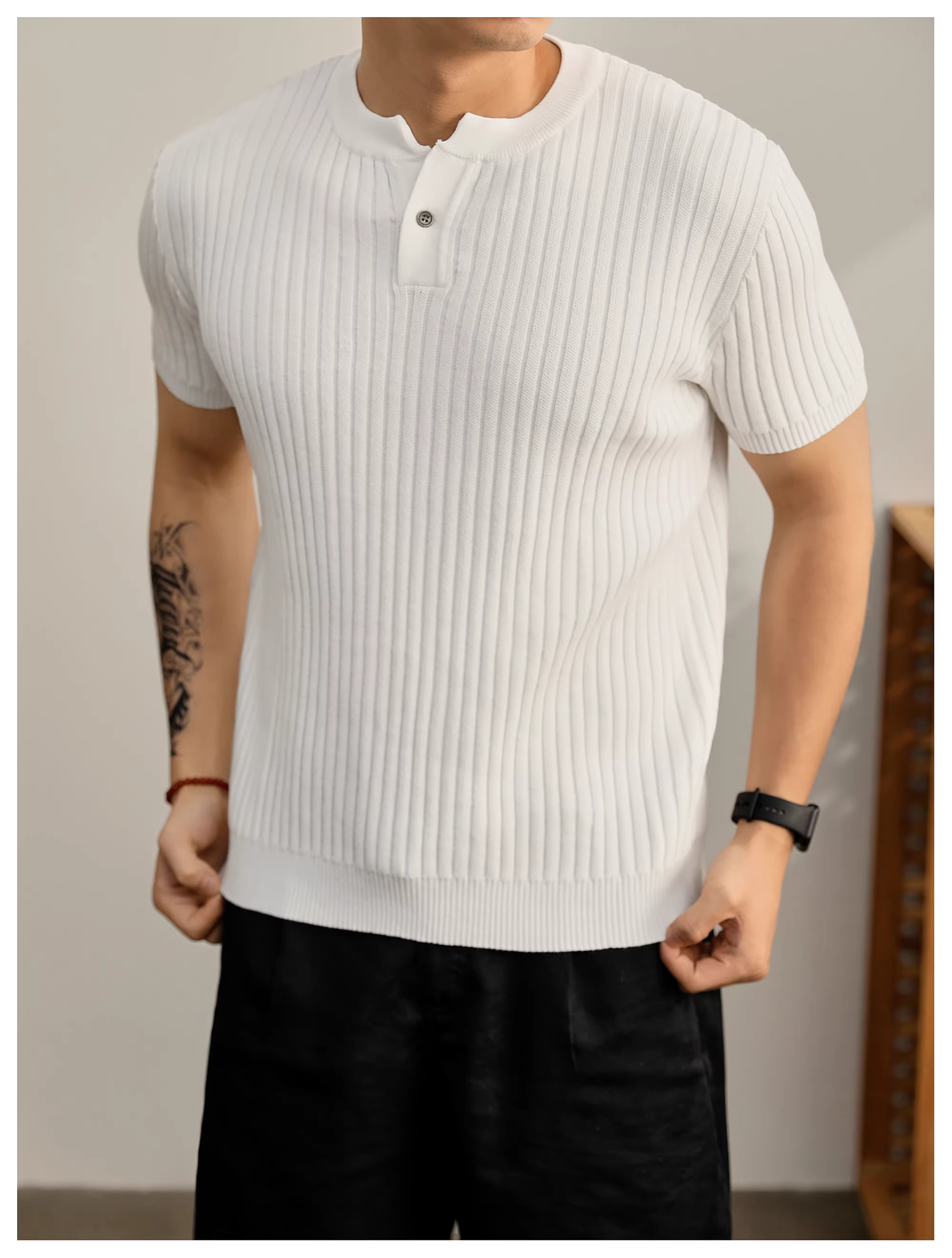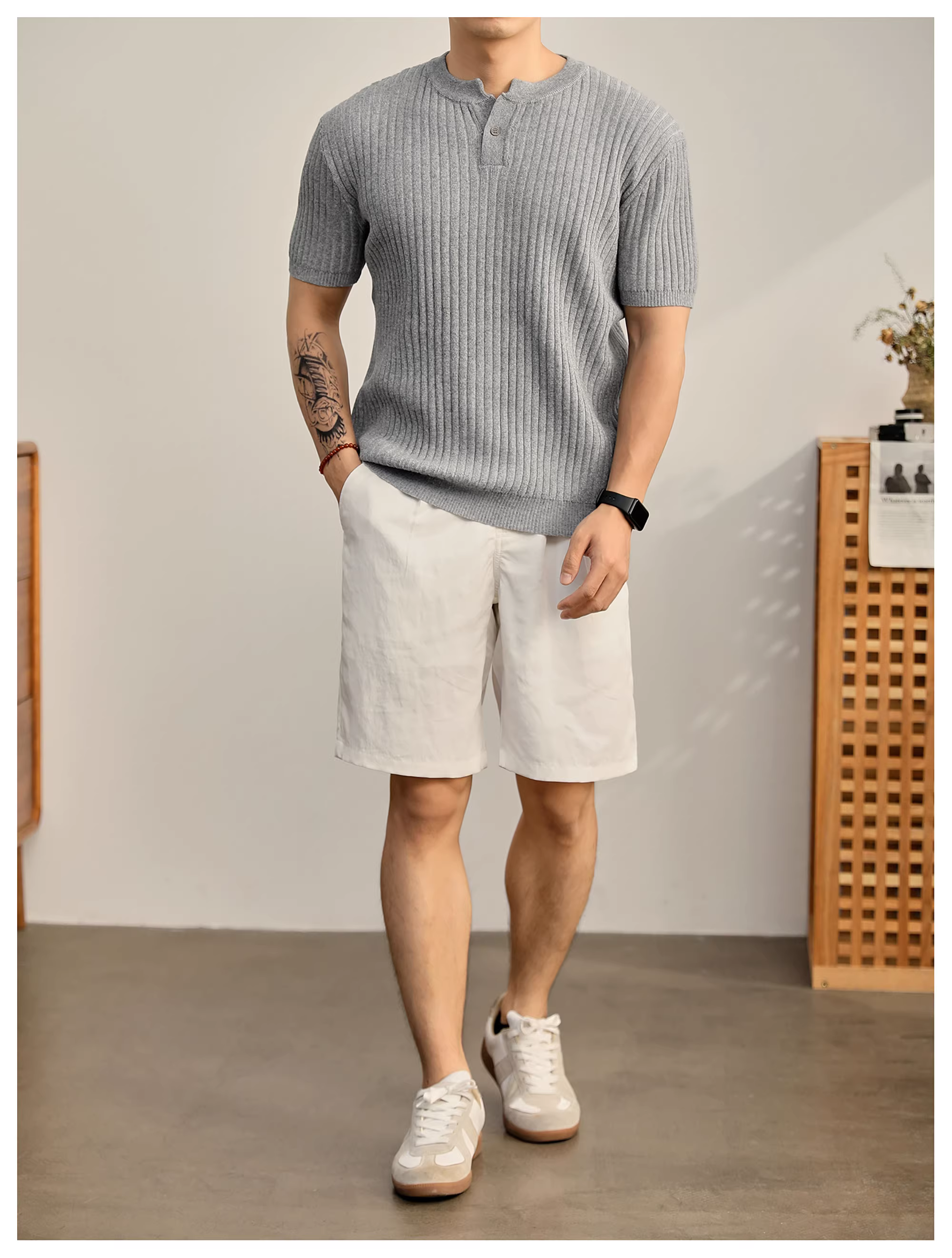 Khuyến mãi đặc biệt: Áo thun nam cổ Henry dệt kim tay ngắn, phong cách cổ điển, chất liệu gân, kiểu dáng lịch lãm.