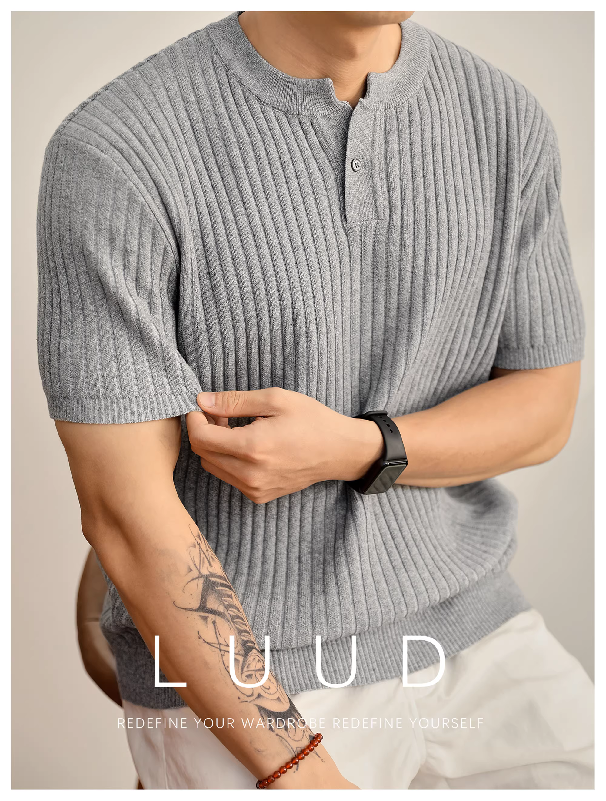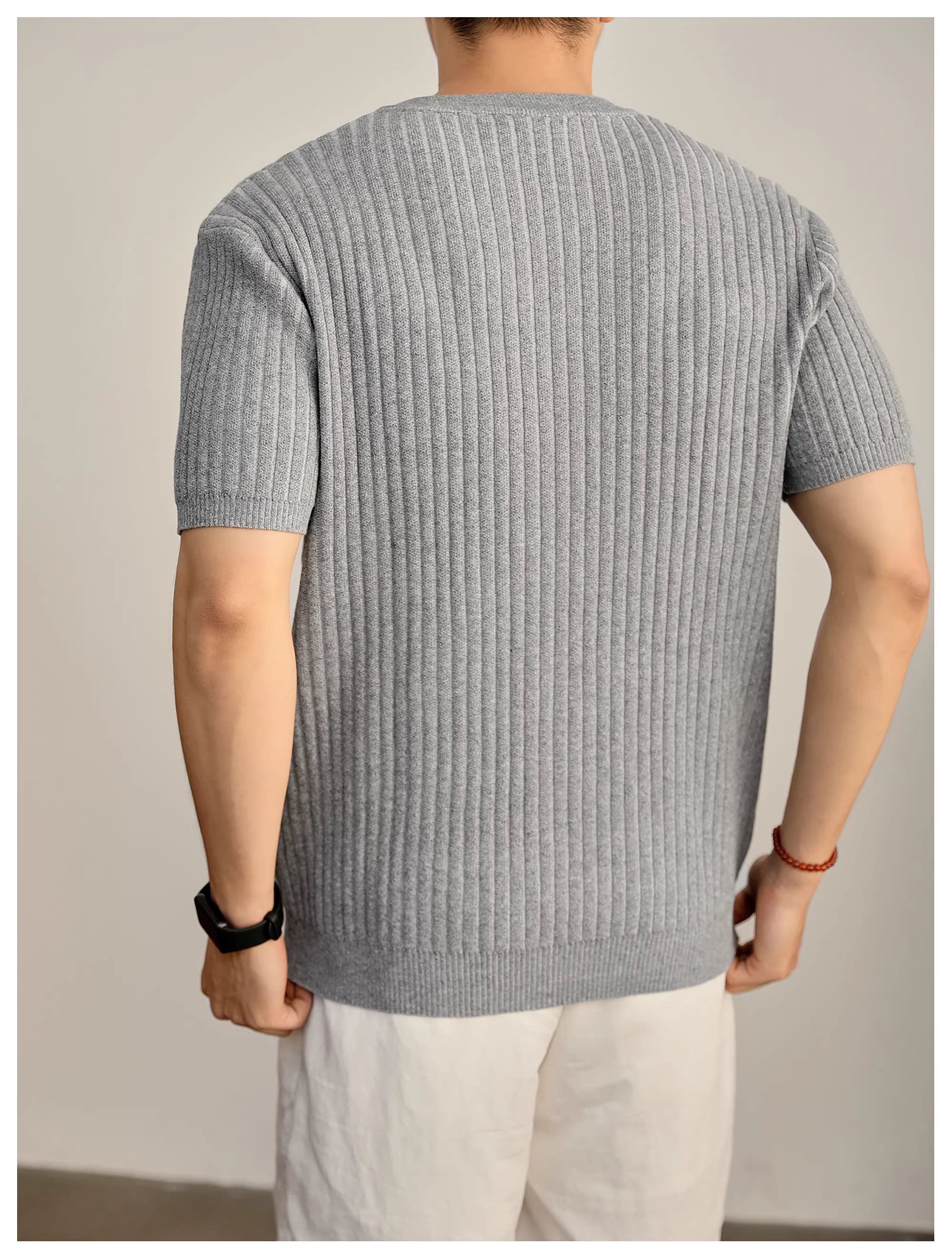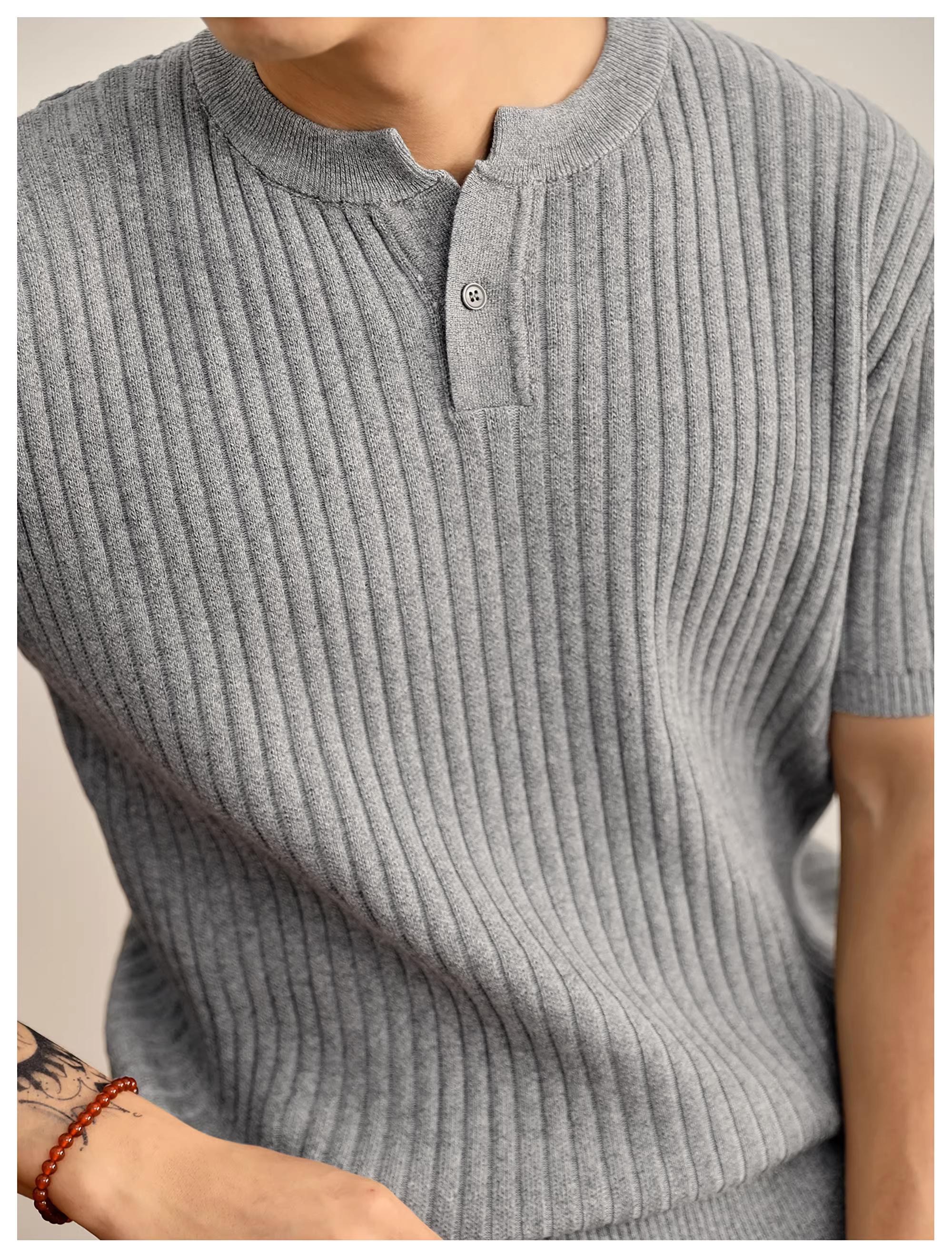 Khuyến mãi đặc biệt: Áo thun nam cổ Henry dệt kim tay ngắn, phong cách cổ điển, chất liệu gân, kiểu dáng lịch lãm.