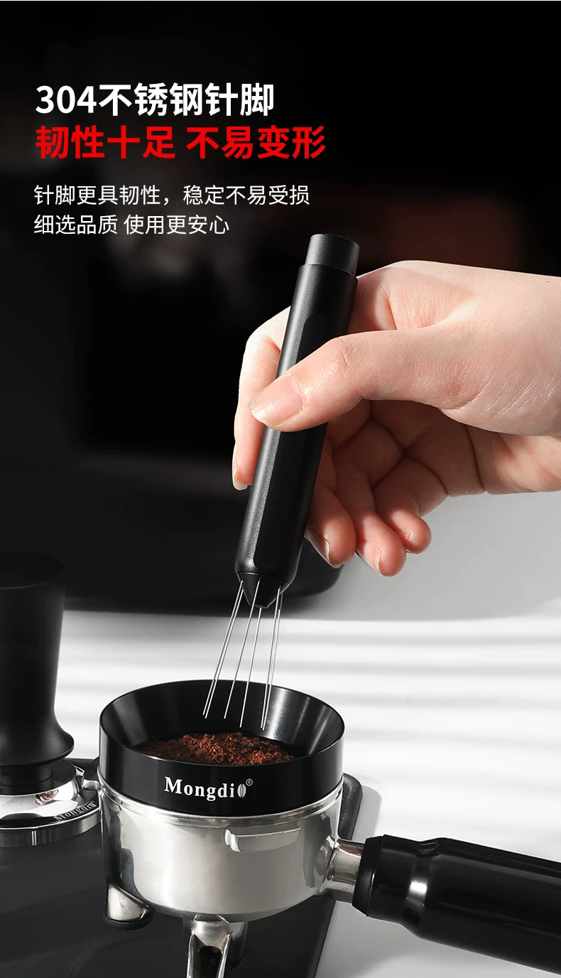 Kim phân phối bột Mongdio cho máy pha cà phê espresso, kim phân phối bột pha cà phê cầm tay bằng thép không gỉ cầm tay.