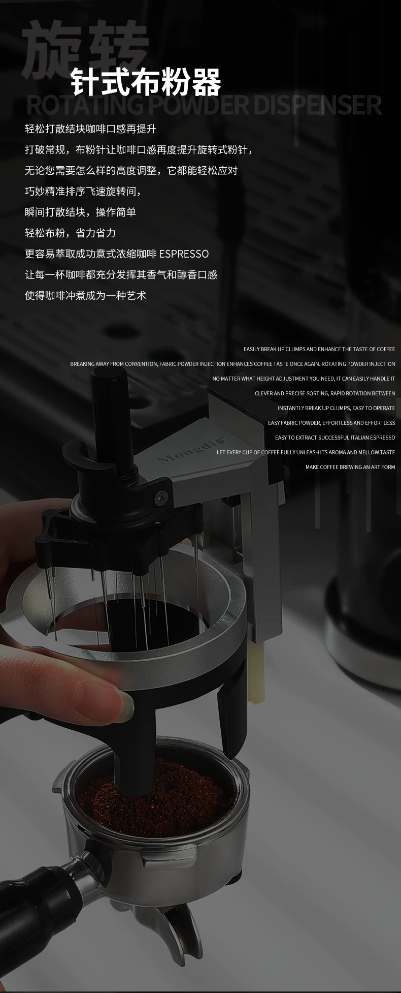 Kim phân phối bột Mongdio, kim phân phối bột cà phê xoay, kim khuấy loại kim, phân phối bột đều, phụ kiện máy pha cà phê espresso