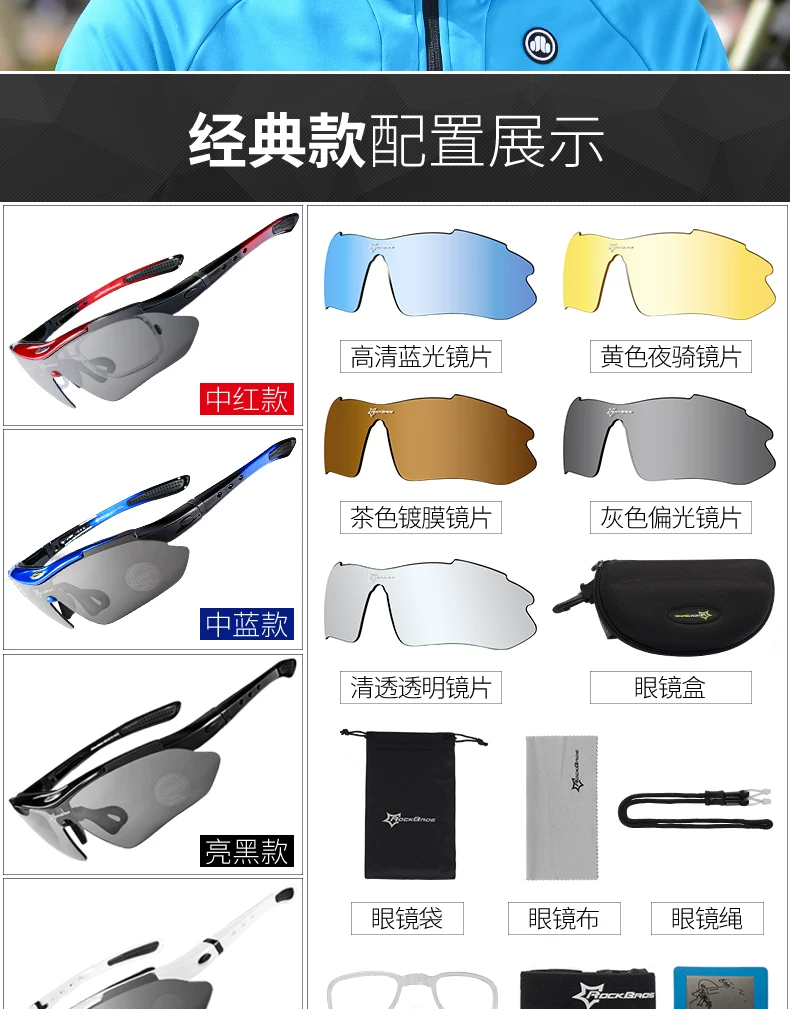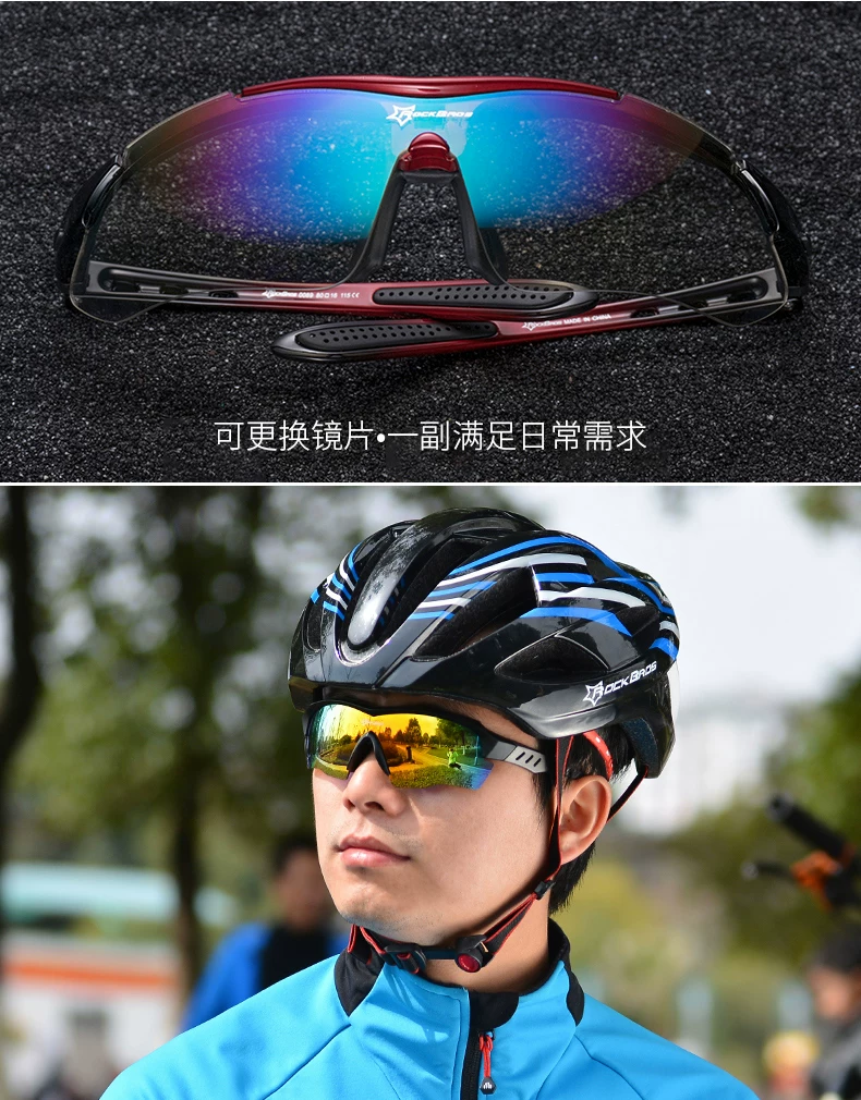 Kính đi xe đạp Rock Brothers, kính cận thị phân cực đổi màu dành cho nam và nữ, kính thể thao đi xe đạp ngoài trời và chạy bộ chống gió và chống cát