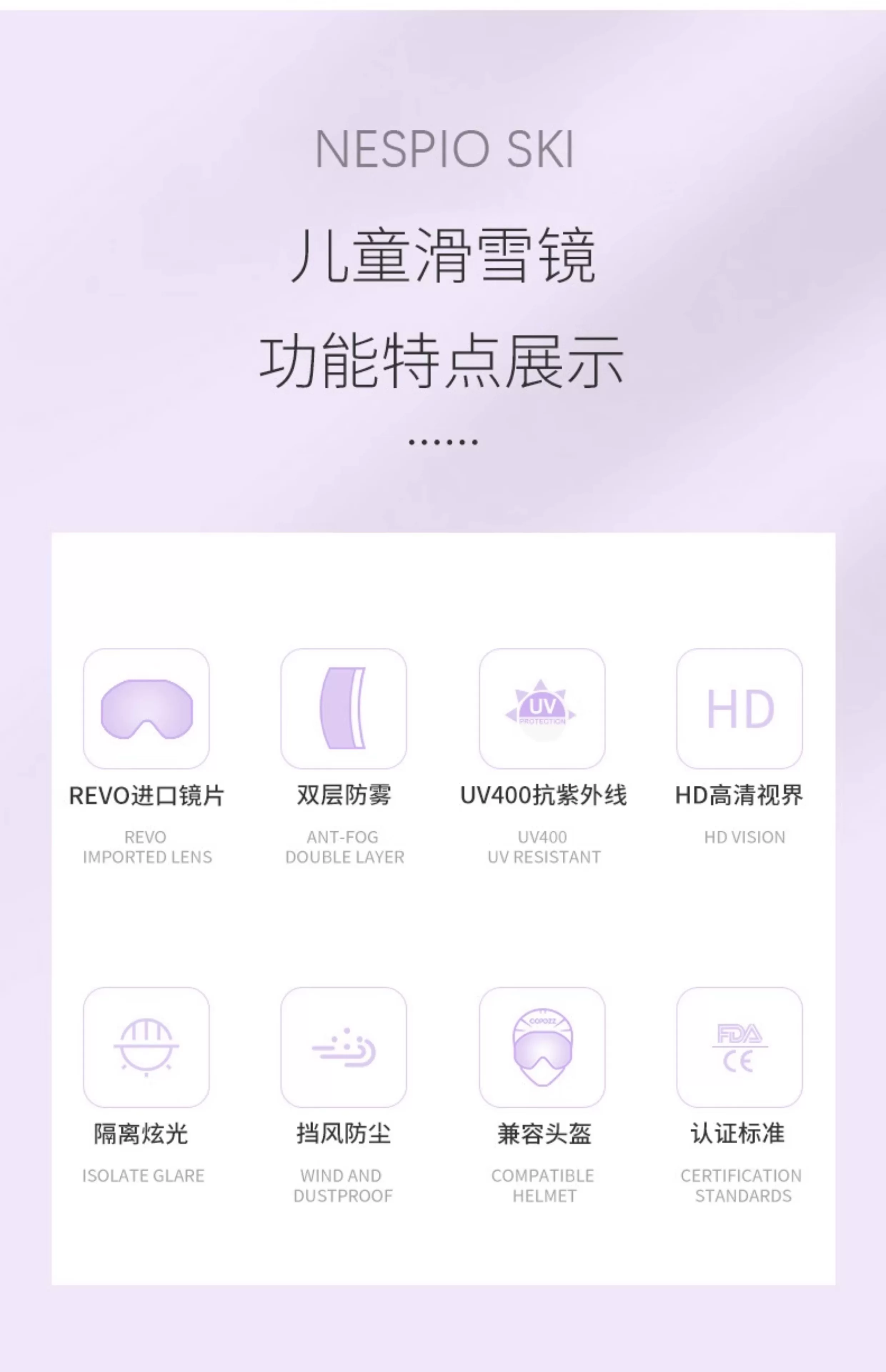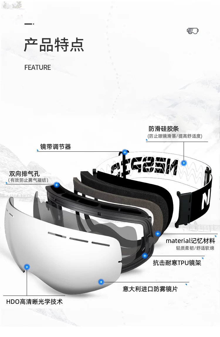 Kính trượt tuyết NESPIO Kính trượt tuyết dành cho trẻ em dành cho nam và nữ bị cận thị, chống gió và chống tuyết, thiết bị mũ bảo hiểm ngoài trời hai lớp chống sương mù