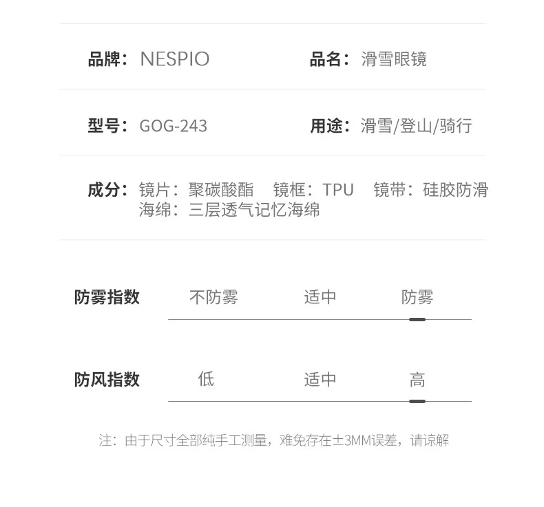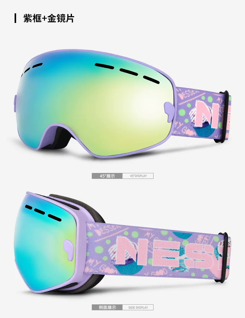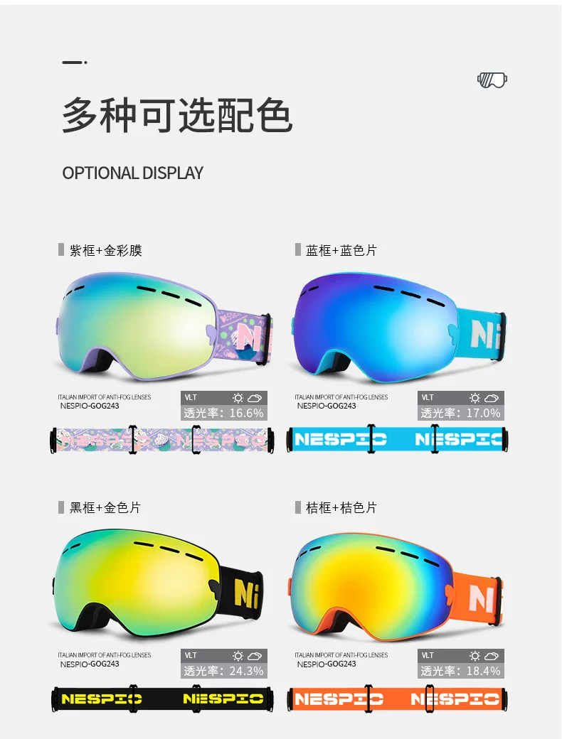 - Kính trượt tuyết NESPIO Kính trượt tuyết dành cho trẻ em dành cho nam và nữ bị cận thị, chống gió và chống tuyết, thiết bị mũ bảo hiểm ngoài trời hai lớp chống sương mù