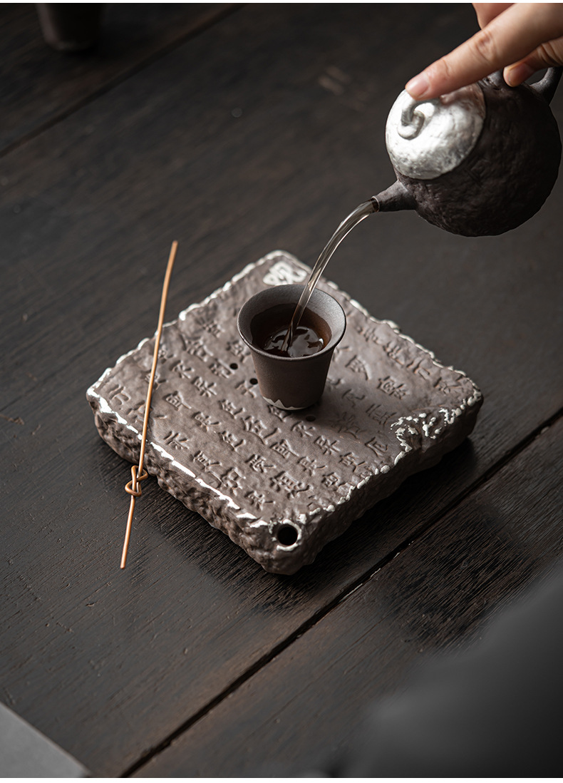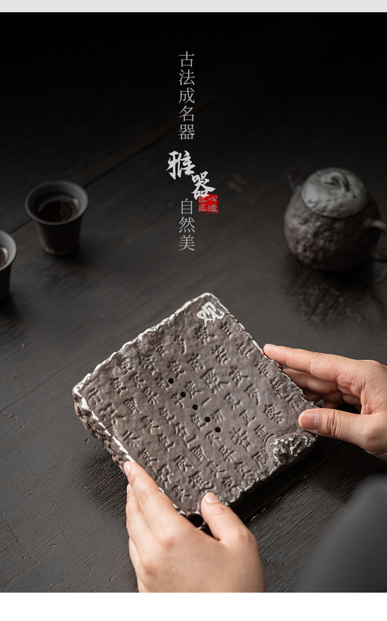 Kongjizhai gốm thô trái tim kinh ấm Phụ Kiện Bộ trà Retro Ấm gốm Sứ Pha khô Trà bàn đệm ấm tấm tiết kiệm