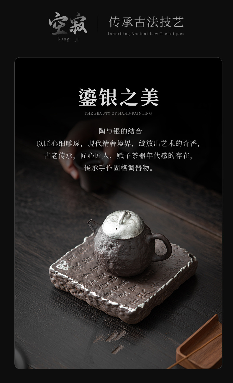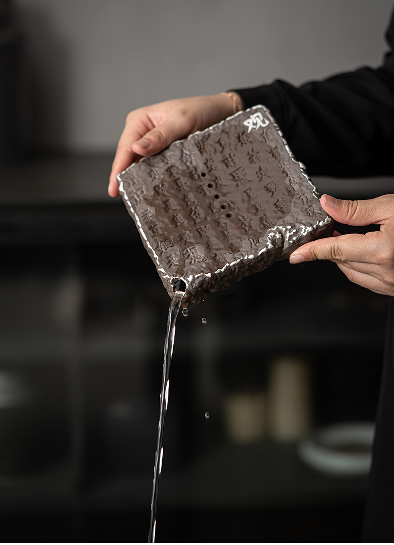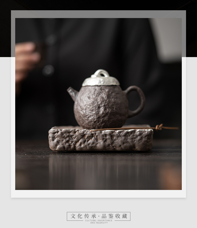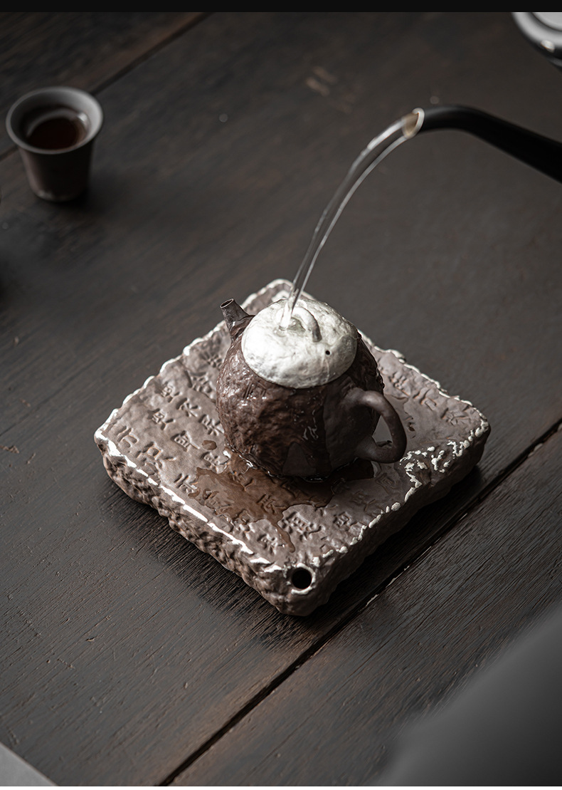 - Kongjizhai gốm thô trái tim kinh ấm Phụ Kiện Bộ trà Retro Ấm gốm Sứ Pha khô Trà bàn đệm ấm tấm tiết kiệm
