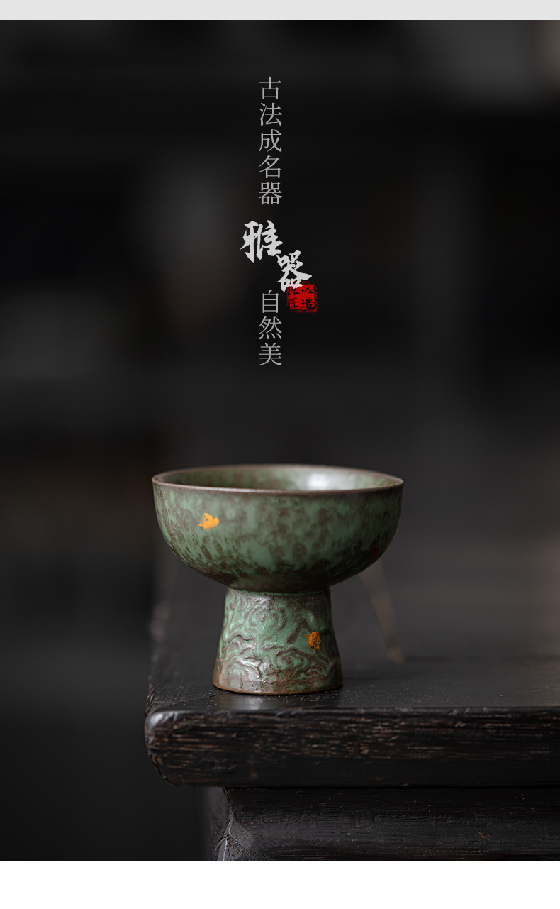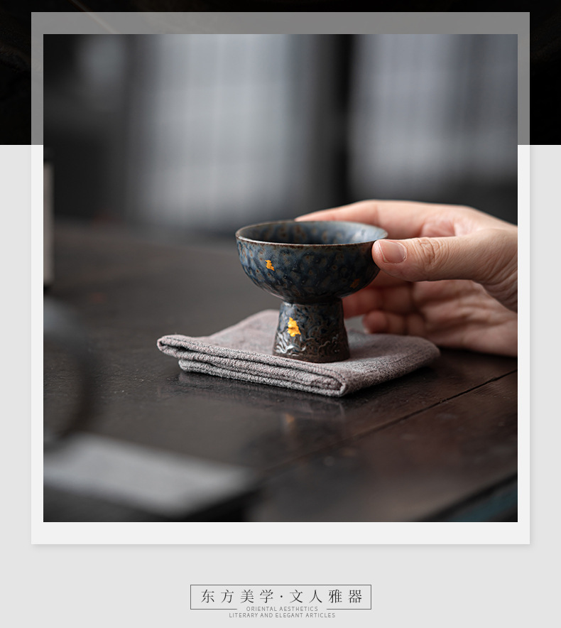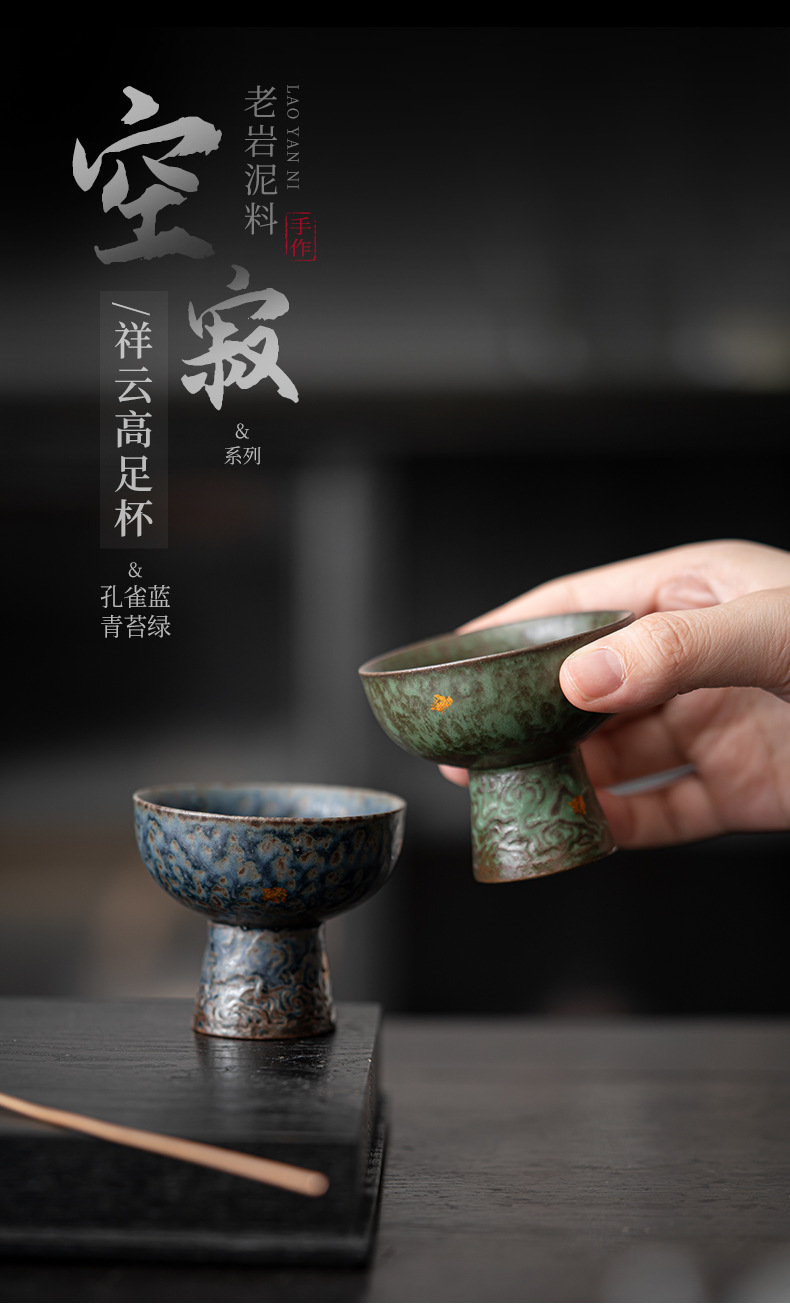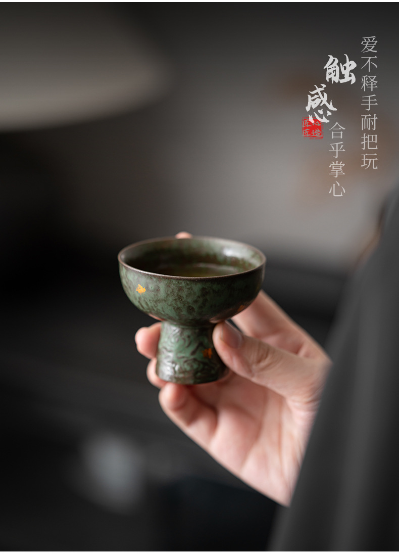 Kongjizhai Lao Rock Mud Xiangyun Cao cốc chủ nhân cao chân mạ bạc bộ trà gốm sứ tráng men bằng đồng tách trà đơn