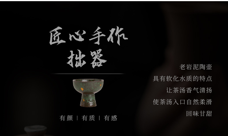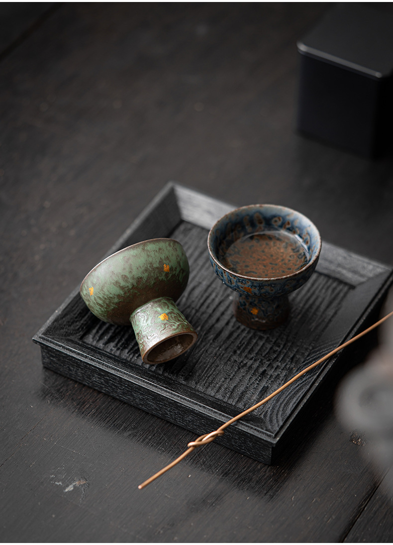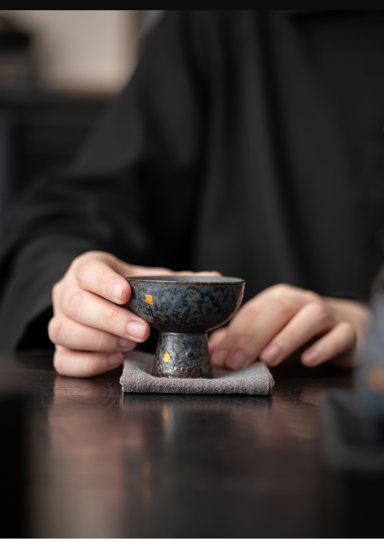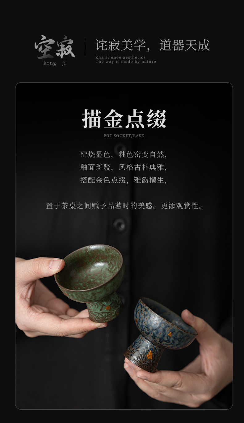 Kongjizhai Lao Rock Mud Xiangyun Cao cốc chủ nhân cao chân mạ bạc bộ trà gốm sứ tráng men bằng đồng tách trà đơn