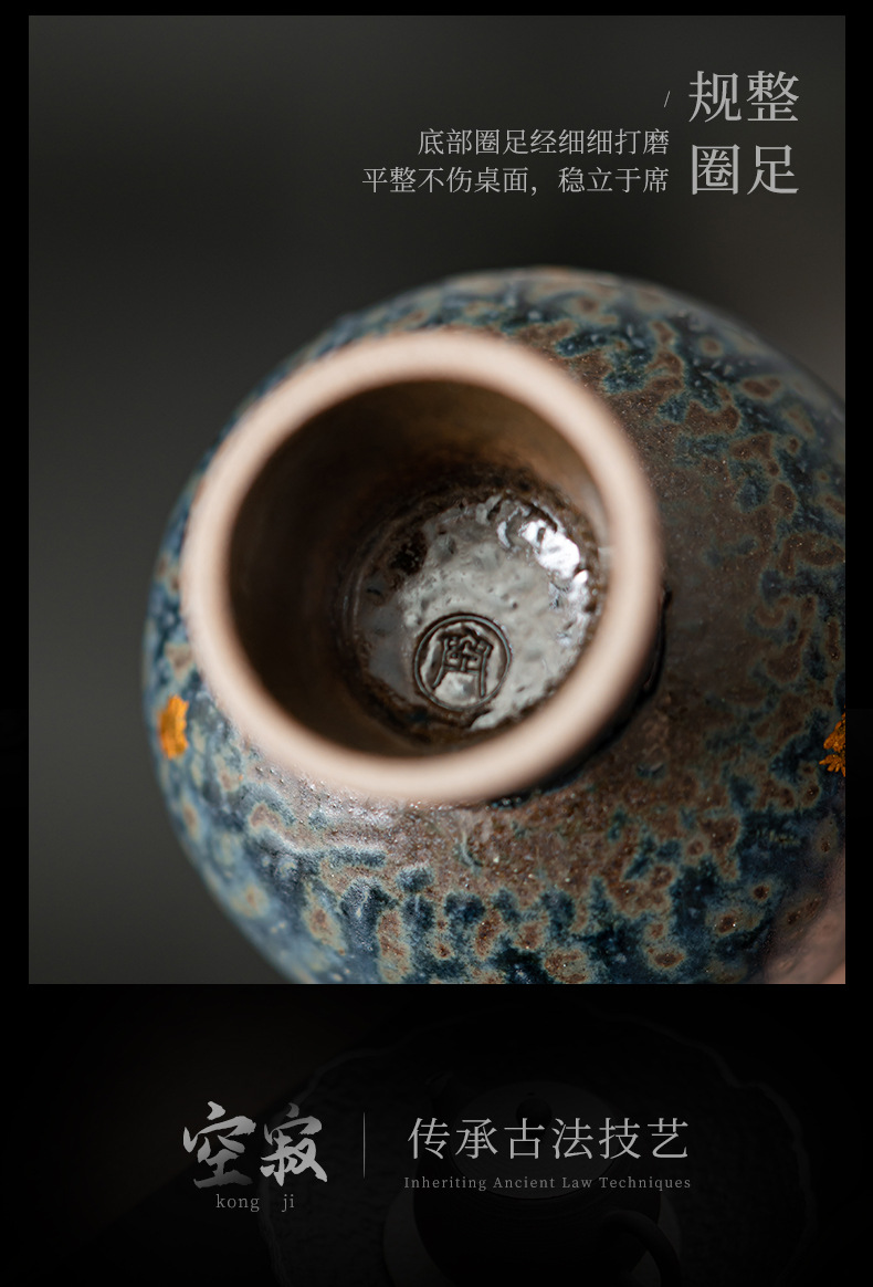 - Kongjizhai Lao Rock Mud Xiangyun Cao cốc chủ nhân cao chân mạ bạc bộ trà gốm sứ tráng men bằng đồng tách trà đơn