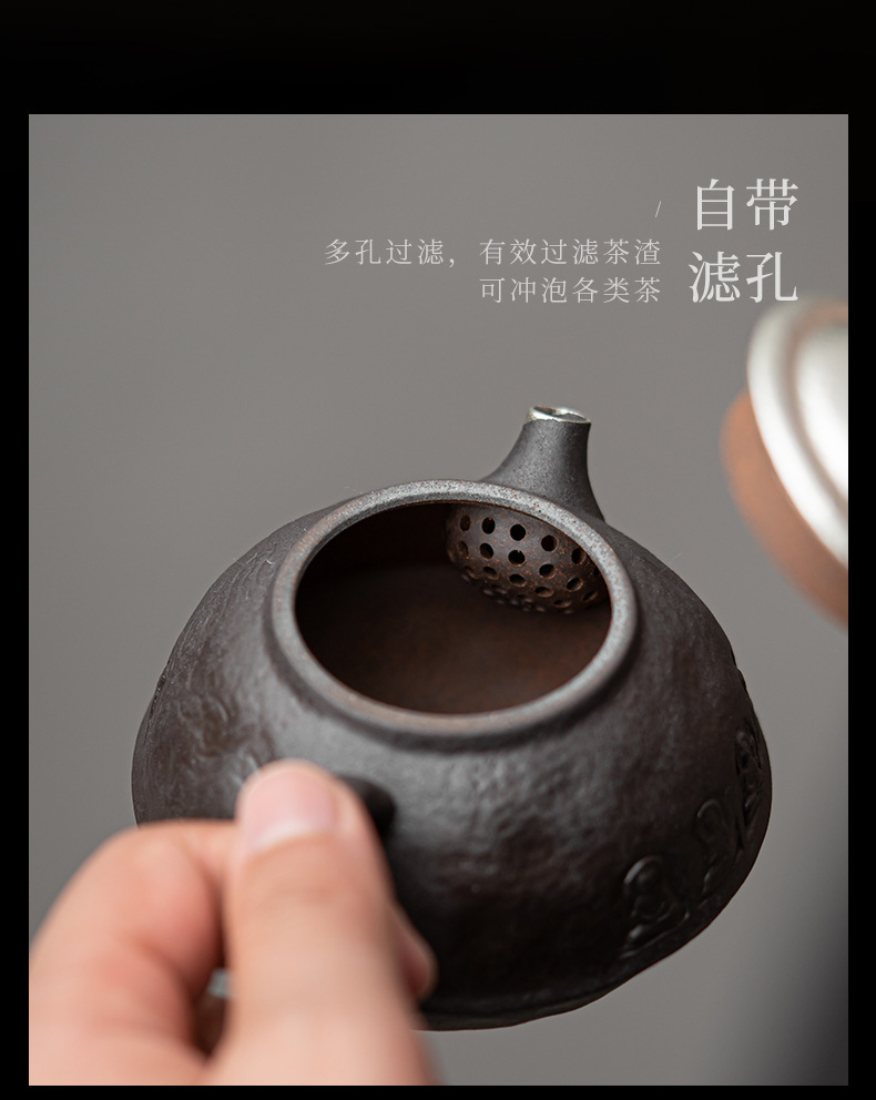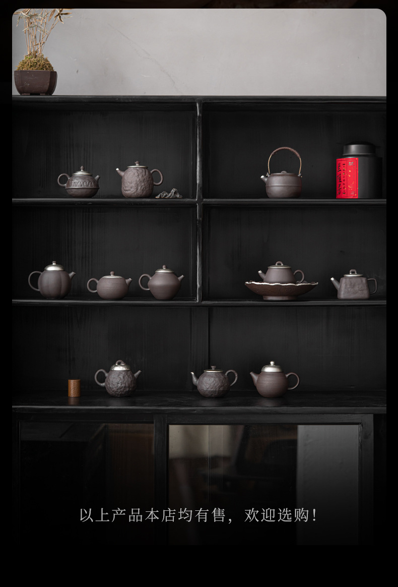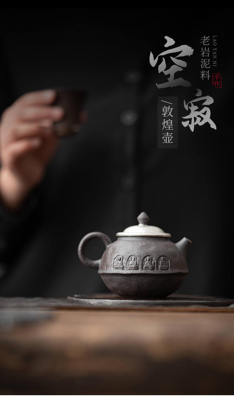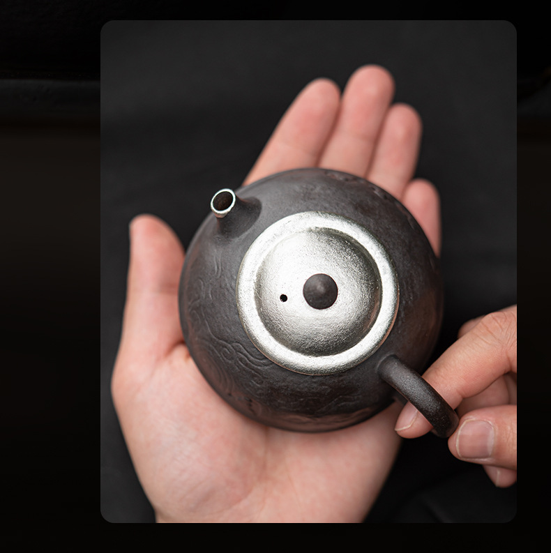 - Kongjizhai Old Rock Mud Đôn Hoàng Ấm trà mạ bạc thủ công bằng gốm thô Bộ trà Nhật Bản gia dụng có thể pha trà