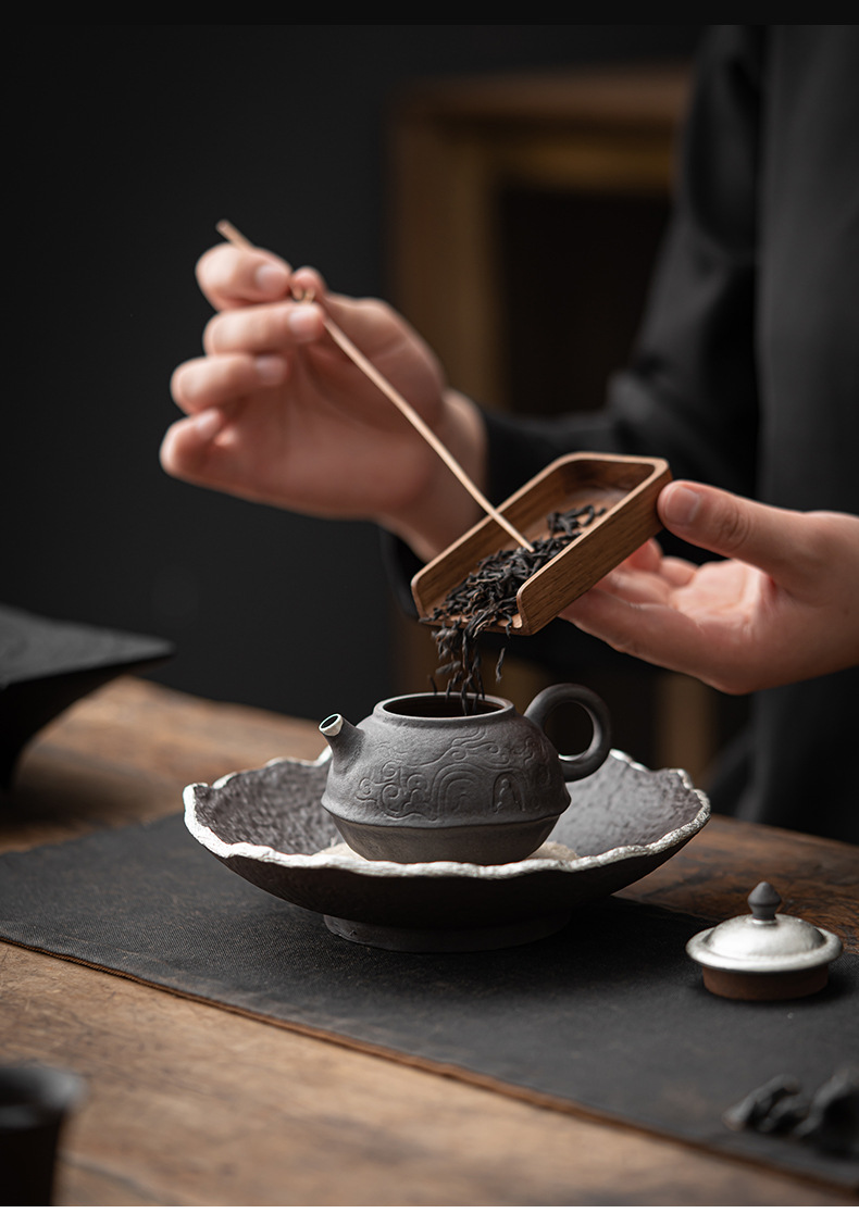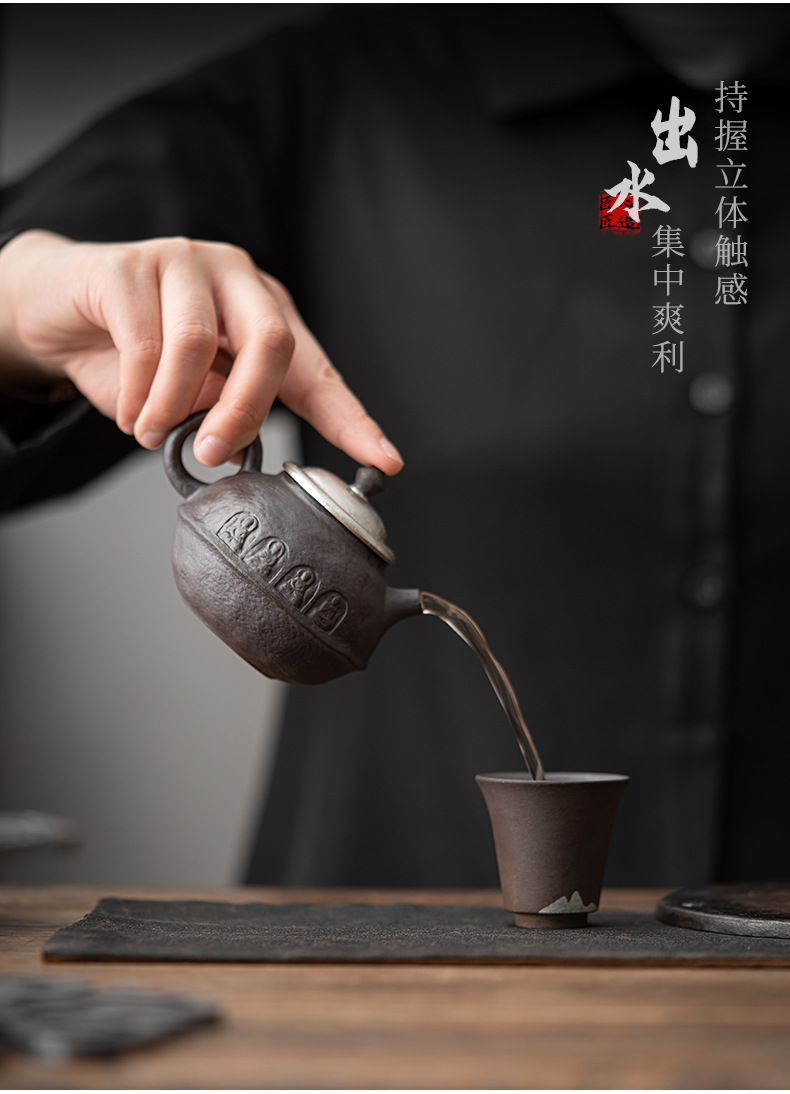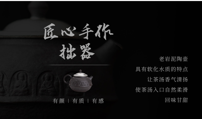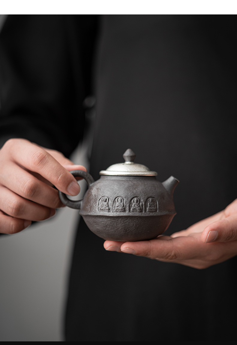 - Kongjizhai Old Rock Mud Đôn Hoàng Ấm trà mạ bạc thủ công bằng gốm thô Bộ trà Nhật Bản gia dụng có thể pha trà