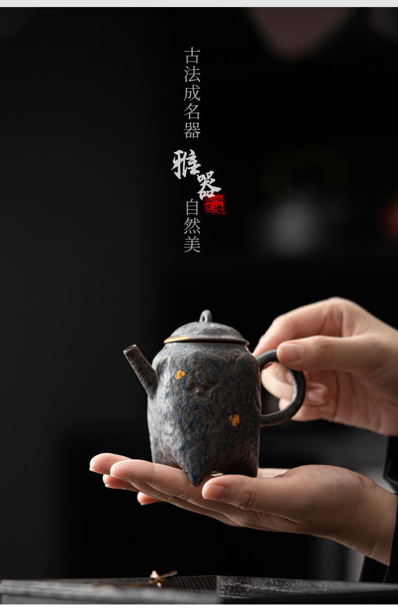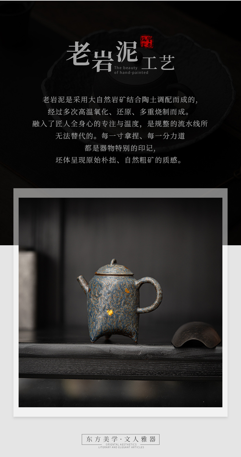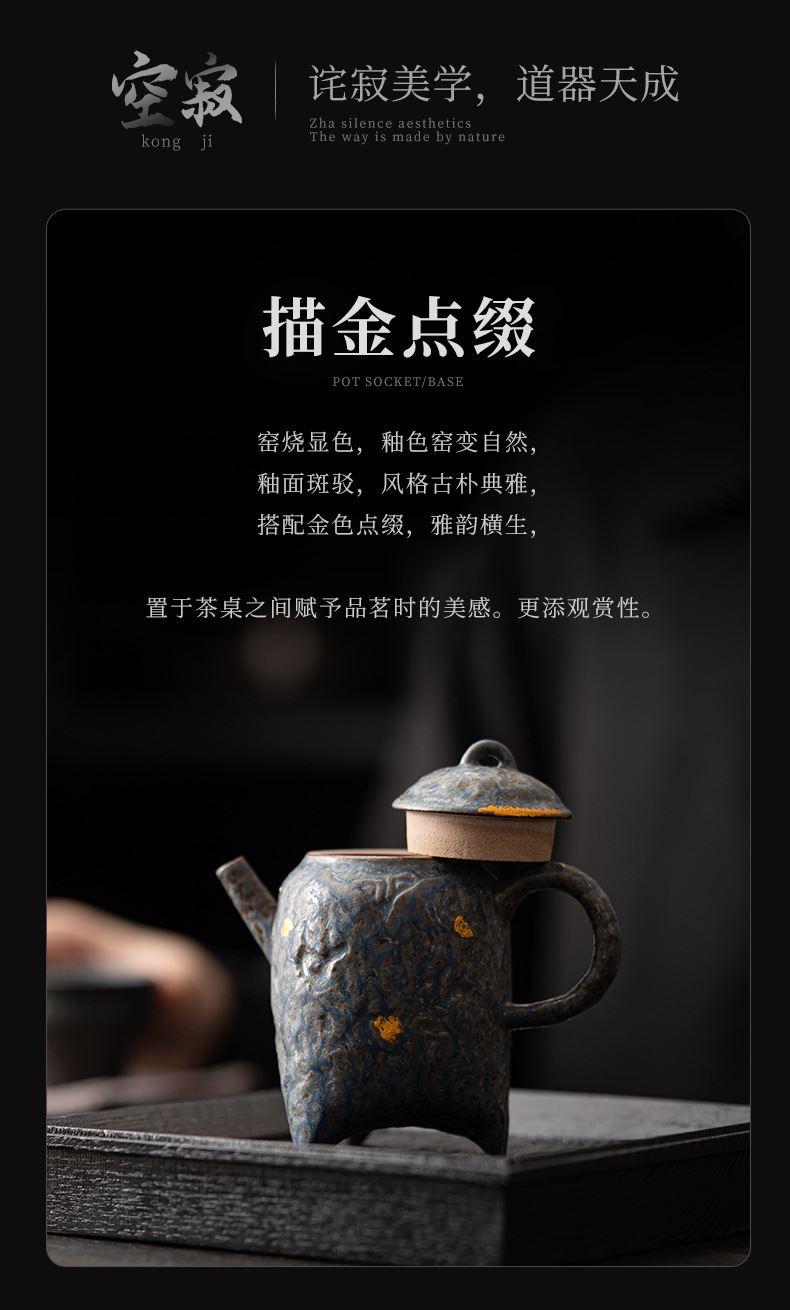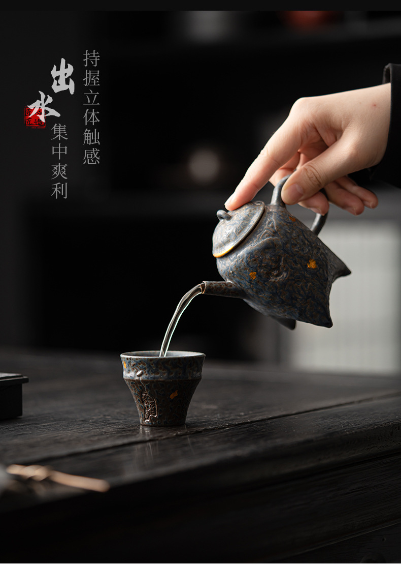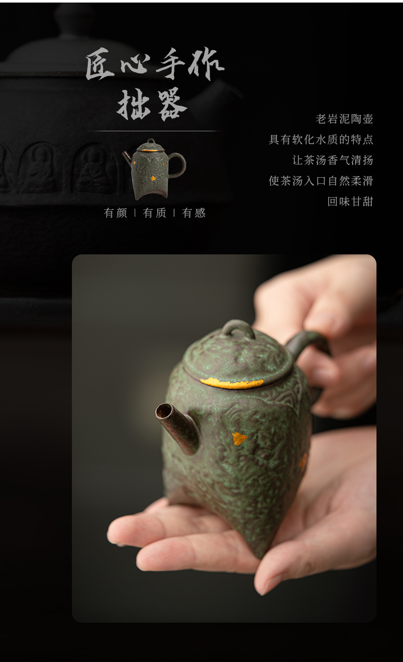 - Kongjizhai Old Rock Mud Wangchuan Ấm trà gia dụng Bộ trà pha trà men đồng cổ điển cao cấp có thể giữ ấm đơn