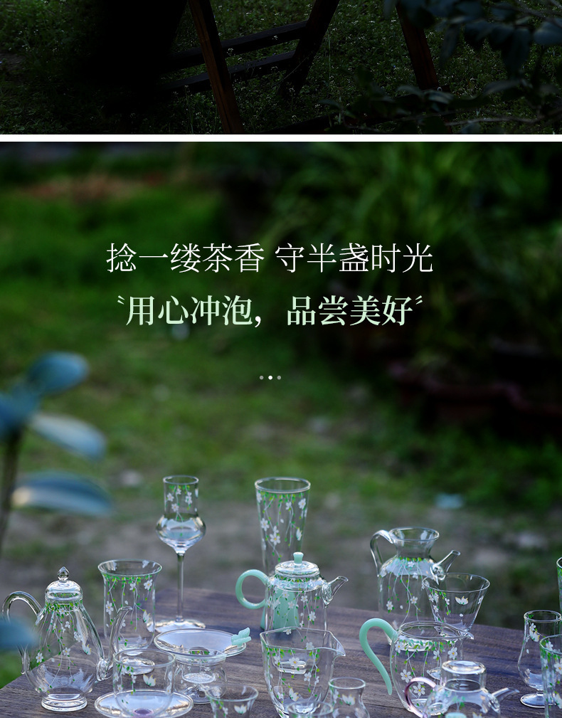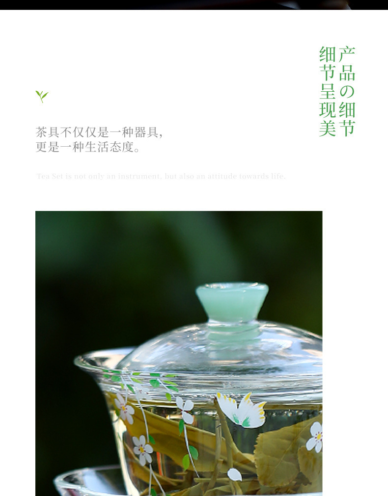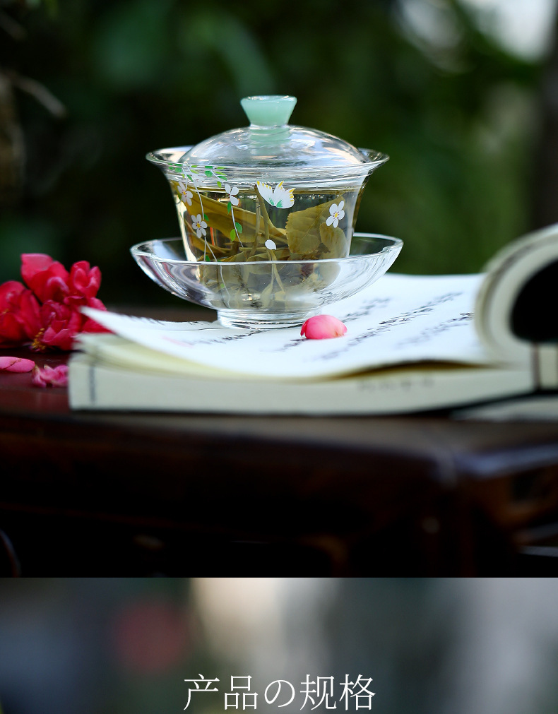 - Lễ hội hoa Ba tài năng Bát phủ Bát trà xanh Phong cách tươi mới Bộ trà Kung Fu Bát trà có đế Kính chịu nhiệt Borosilicate cao.