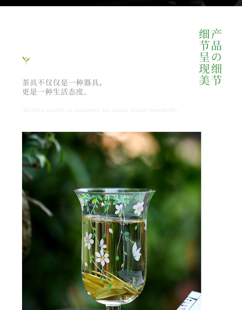 - Lễ Hội Hoa Chịu Nhiệt Thủy Tinh Trong Suốt Cốc Trà Xanh Nếm Cốc Cao Borosilicate Kung Fu Bộ Trà Trà Chủ Cốc