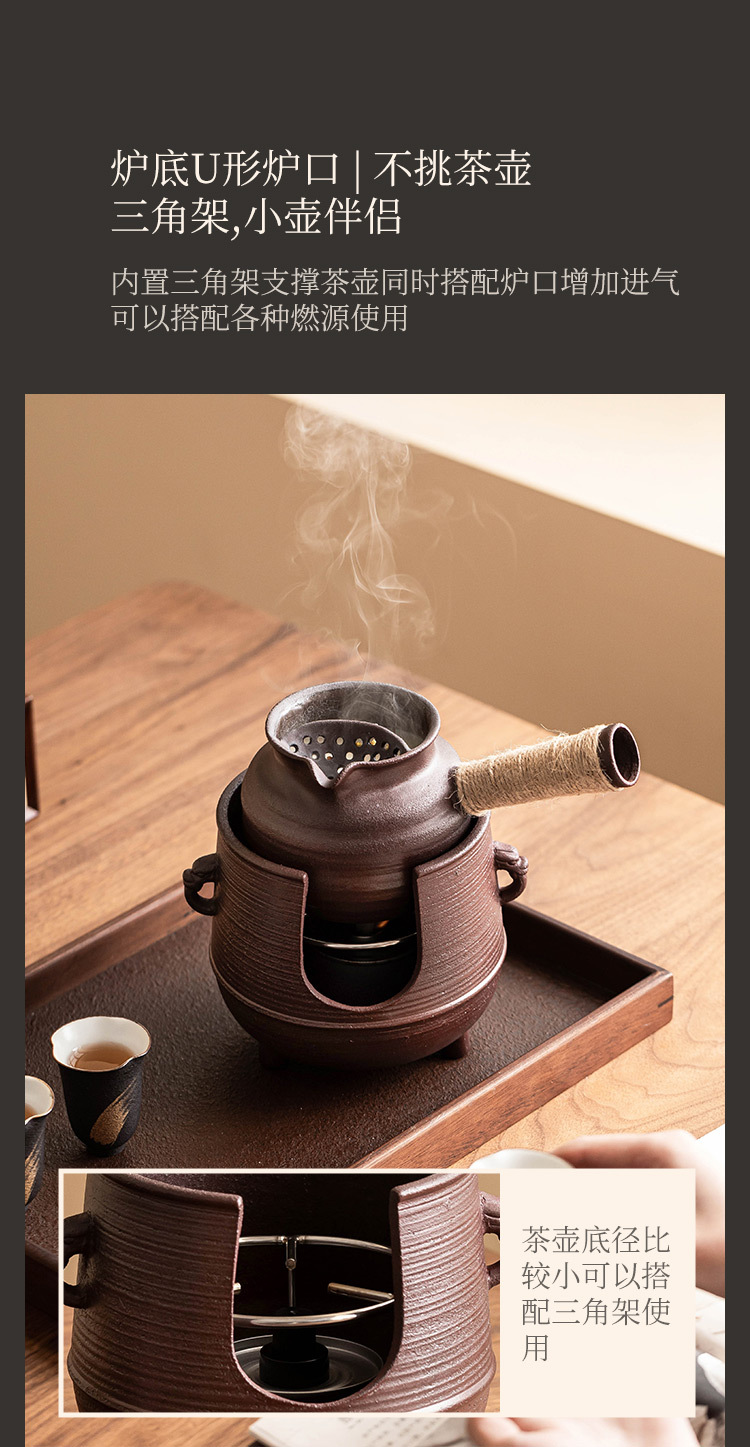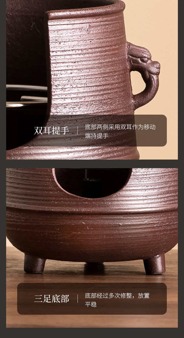 - Lò đun trà đất sét đỏ gốm thô, bếp đun trà hai tai ba chân, bếp đun nến cồn, dụng cụ đun trà, đế đun ấm trà