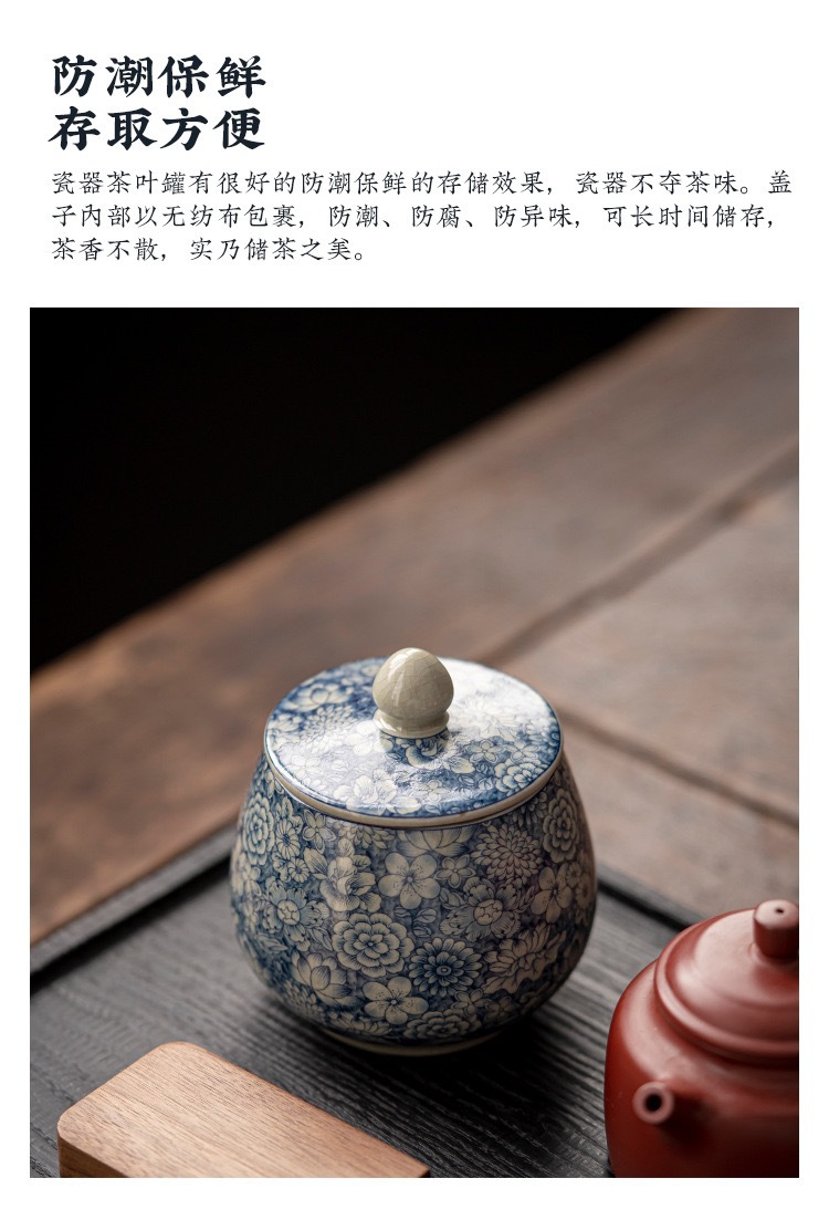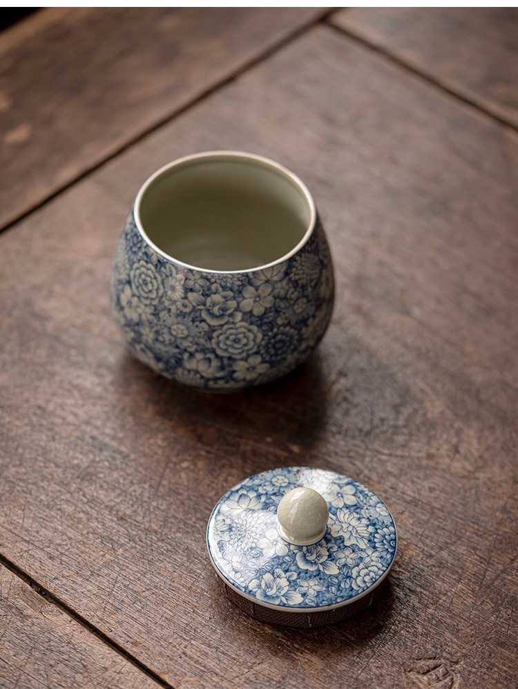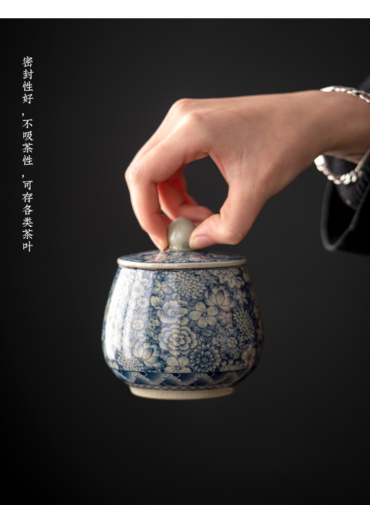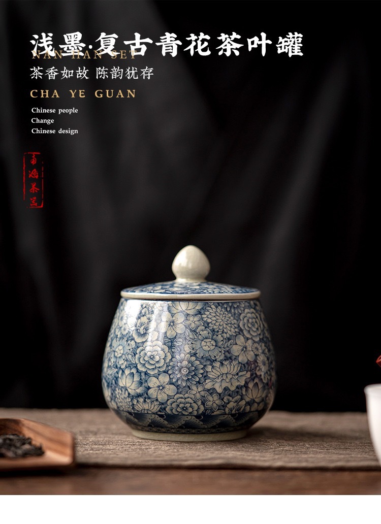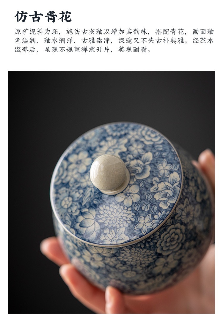 - Lọ đựng trà gốm sứ trắng xanh bằng đất sét cũ, bình kín nhỏ, bình lưu trữ chống ẩm gia dụng cổ điển, nhà sản xuất bán buôn