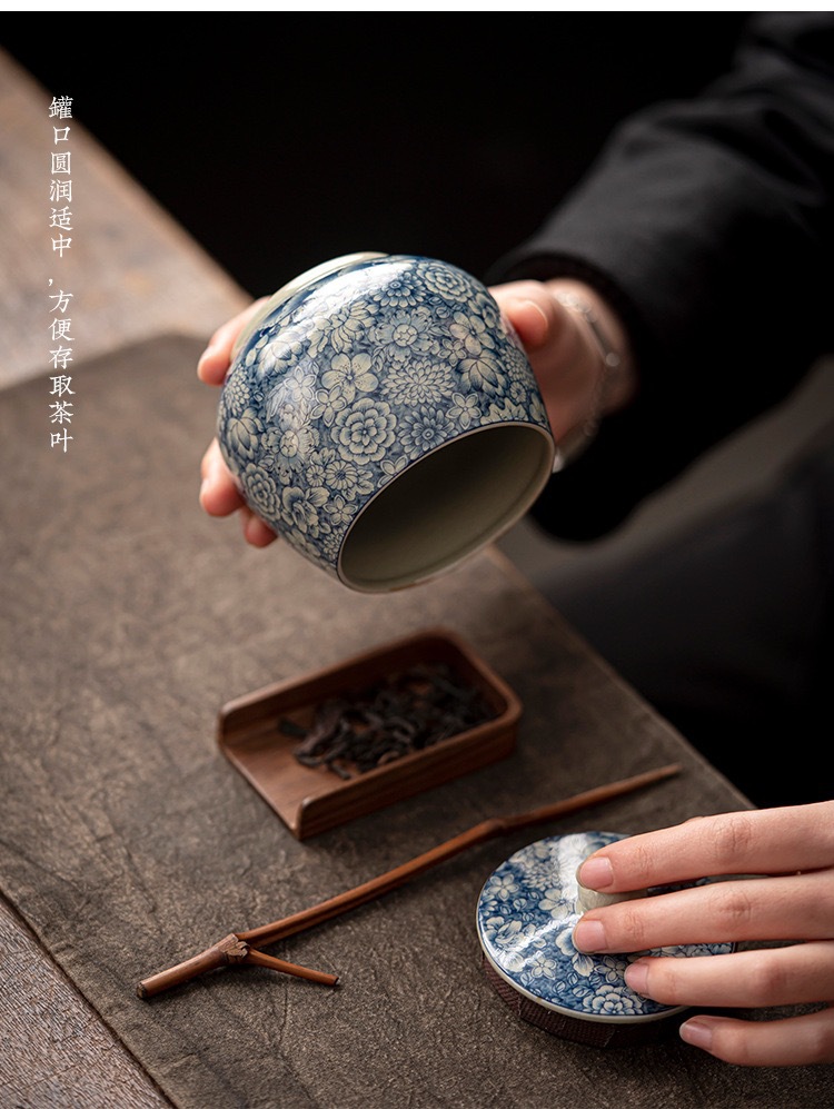 Lọ đựng trà gốm sứ trắng xanh bằng đất sét cũ, bình kín nhỏ, bình lưu trữ chống ẩm gia dụng cổ điển, nhà sản xuất bán buôn