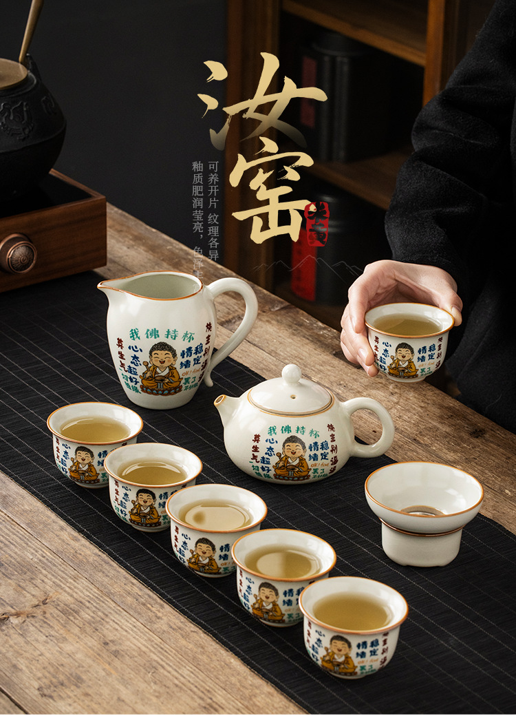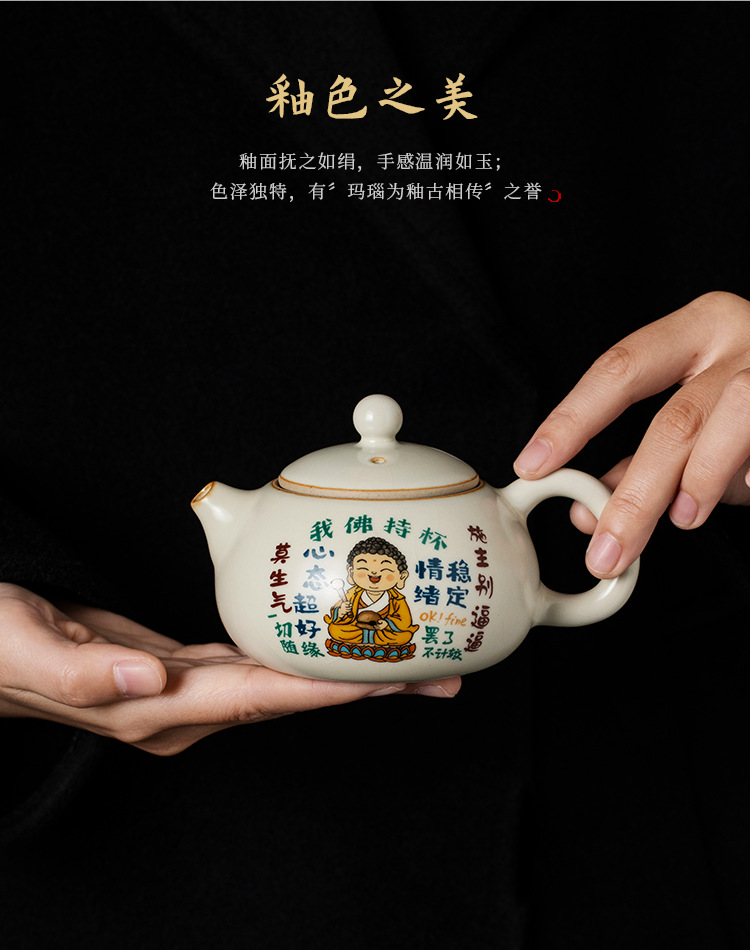 - Lò gốm sứ Ru Phật tôi cầm cốc Bộ ấm trà Xi Shi Bộ ấm trà gia dụng cao cấp một ấm sáu cốc Bộ trà Kung Fu
