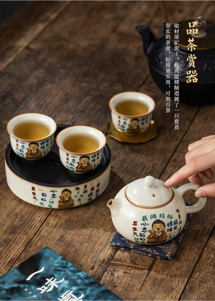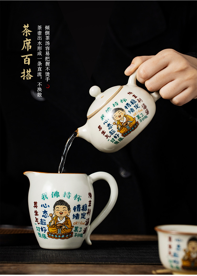 Lò gốm sứ Ru Phật tôi cầm cốc Bộ ấm trà Xi Shi Bộ ấm trà gia dụng cao cấp một ấm sáu cốc Bộ trà Kung Fu