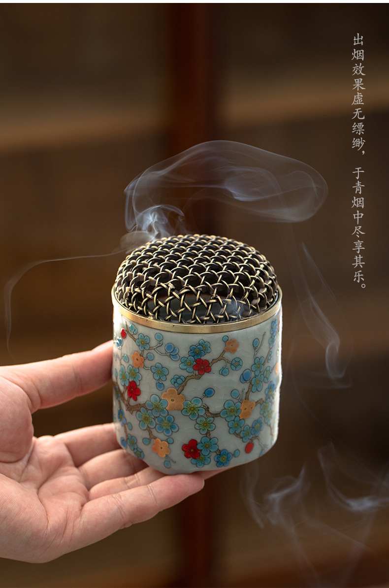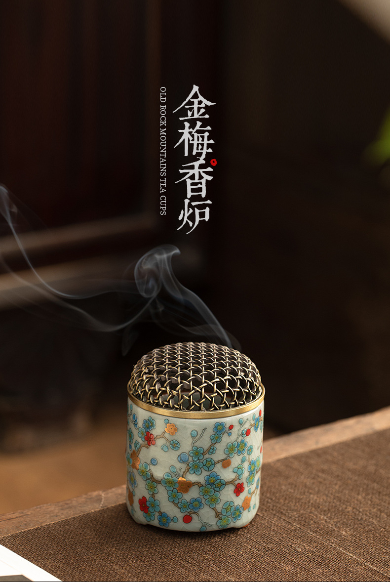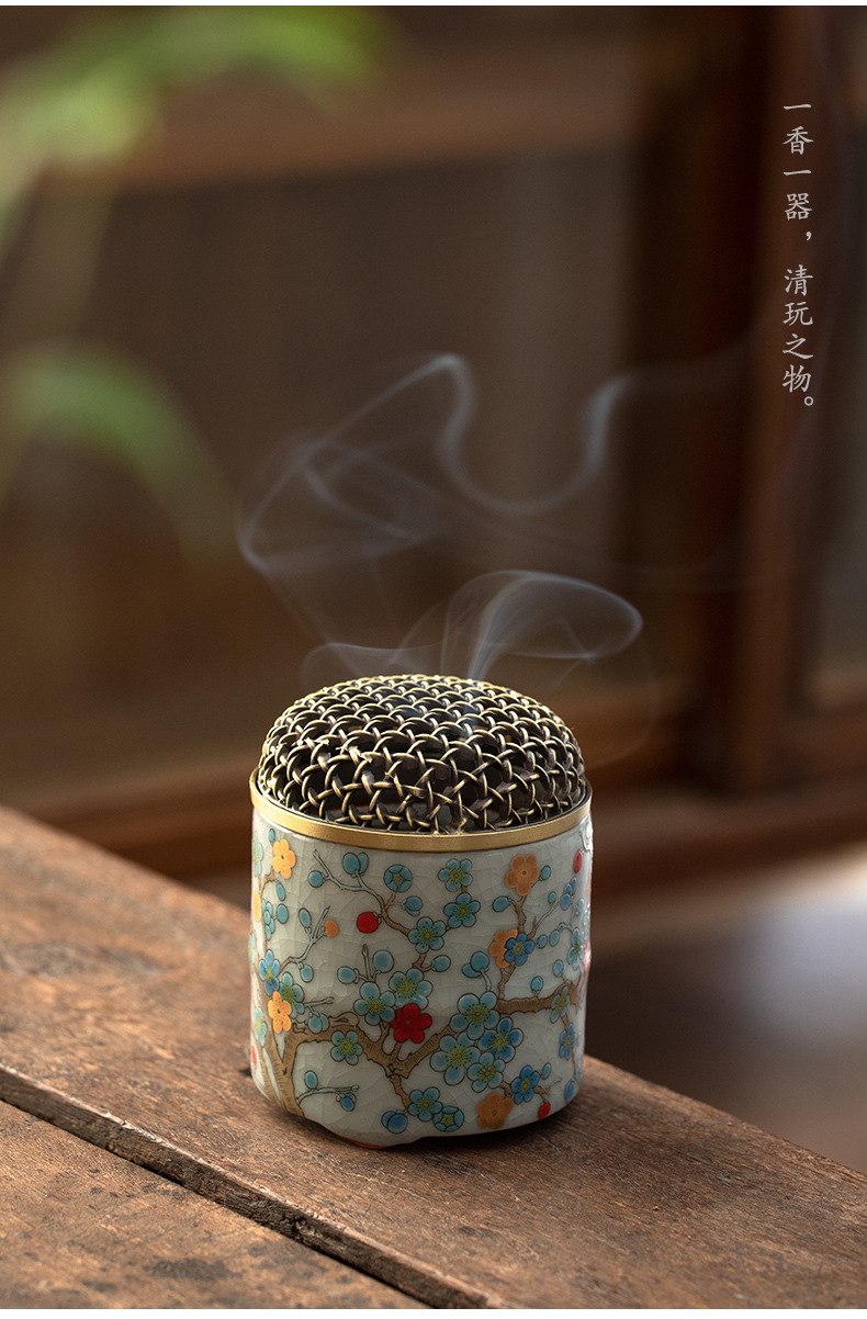 Lò hương gốm sứ lò nung Ji Huanru Lò hương trong nhà gia dụng Lò hương nhỏ nghiên cứu Trà đạo Chèn hương trầm hương gỗ đàn hương