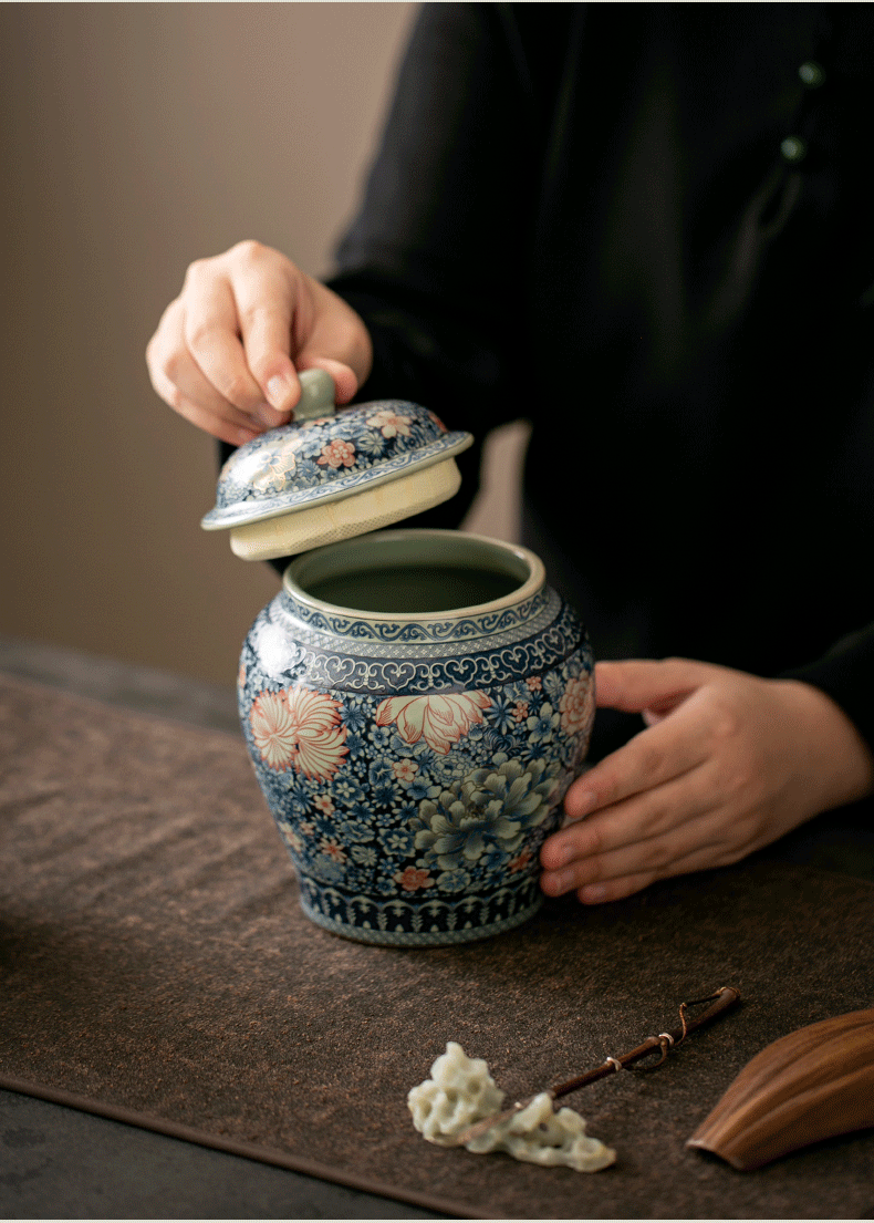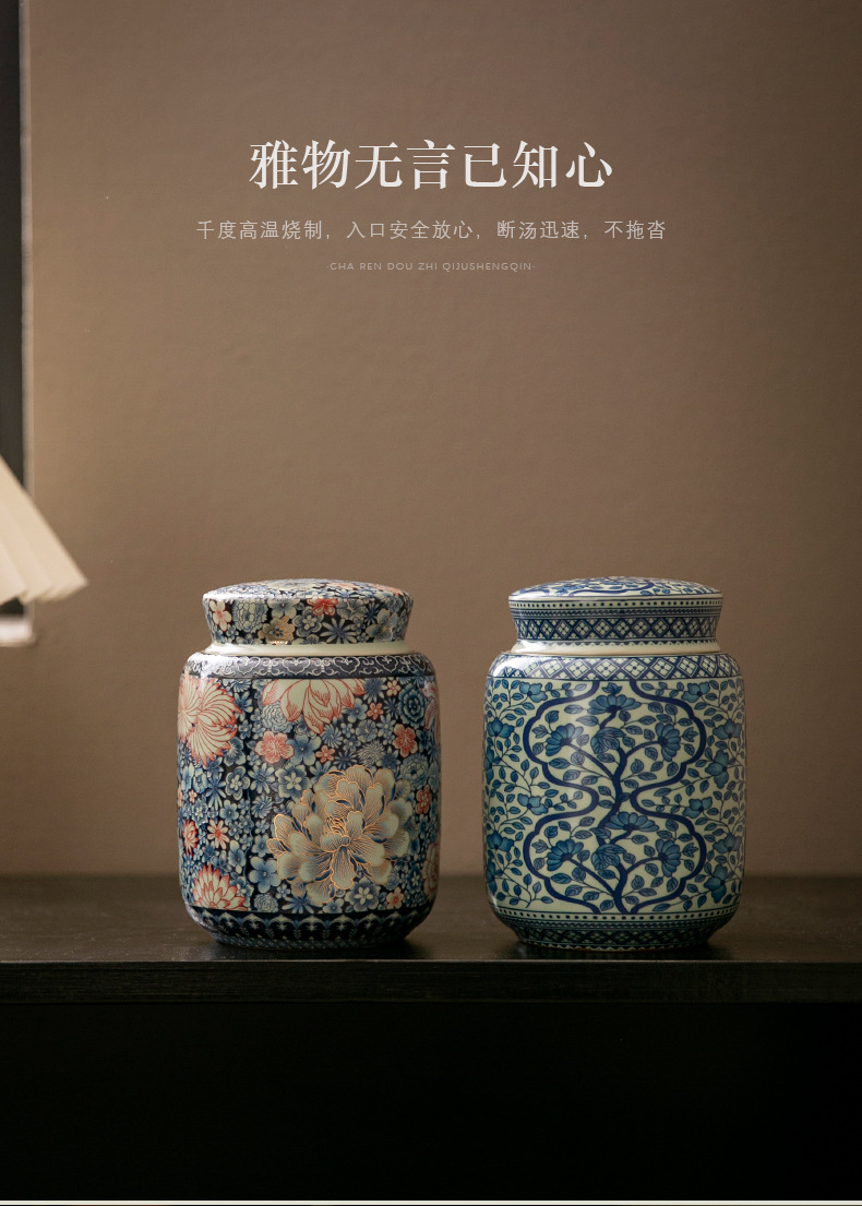 Lò nung gốm sứ trắng xanh gia dụng loại nhỏ Trung Quốc bình kín bình đựng trà bình đựng trà bình đựng trà cổ điển