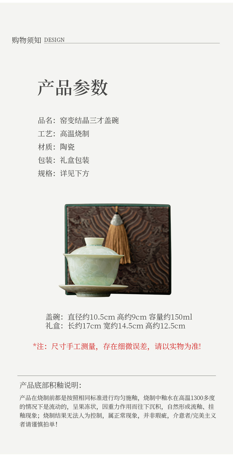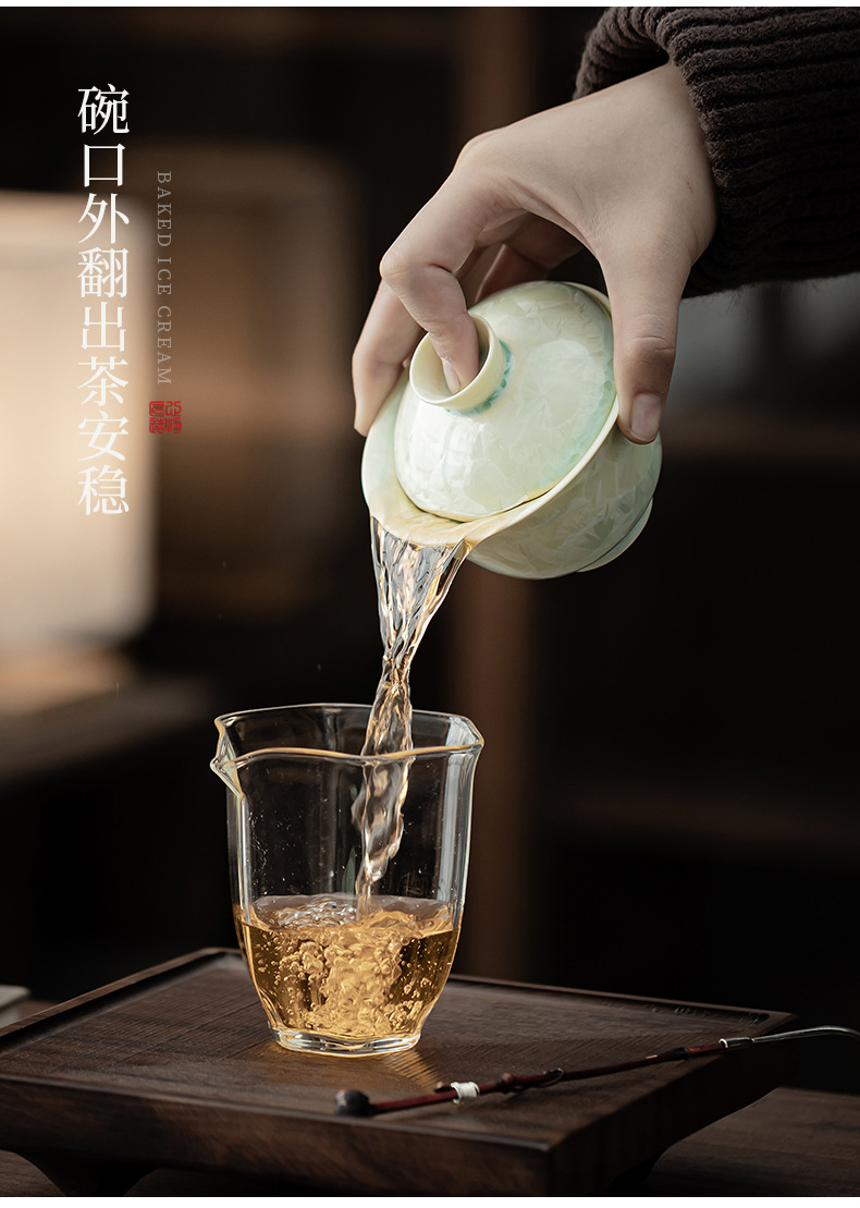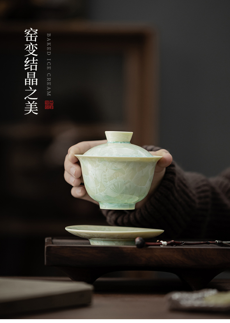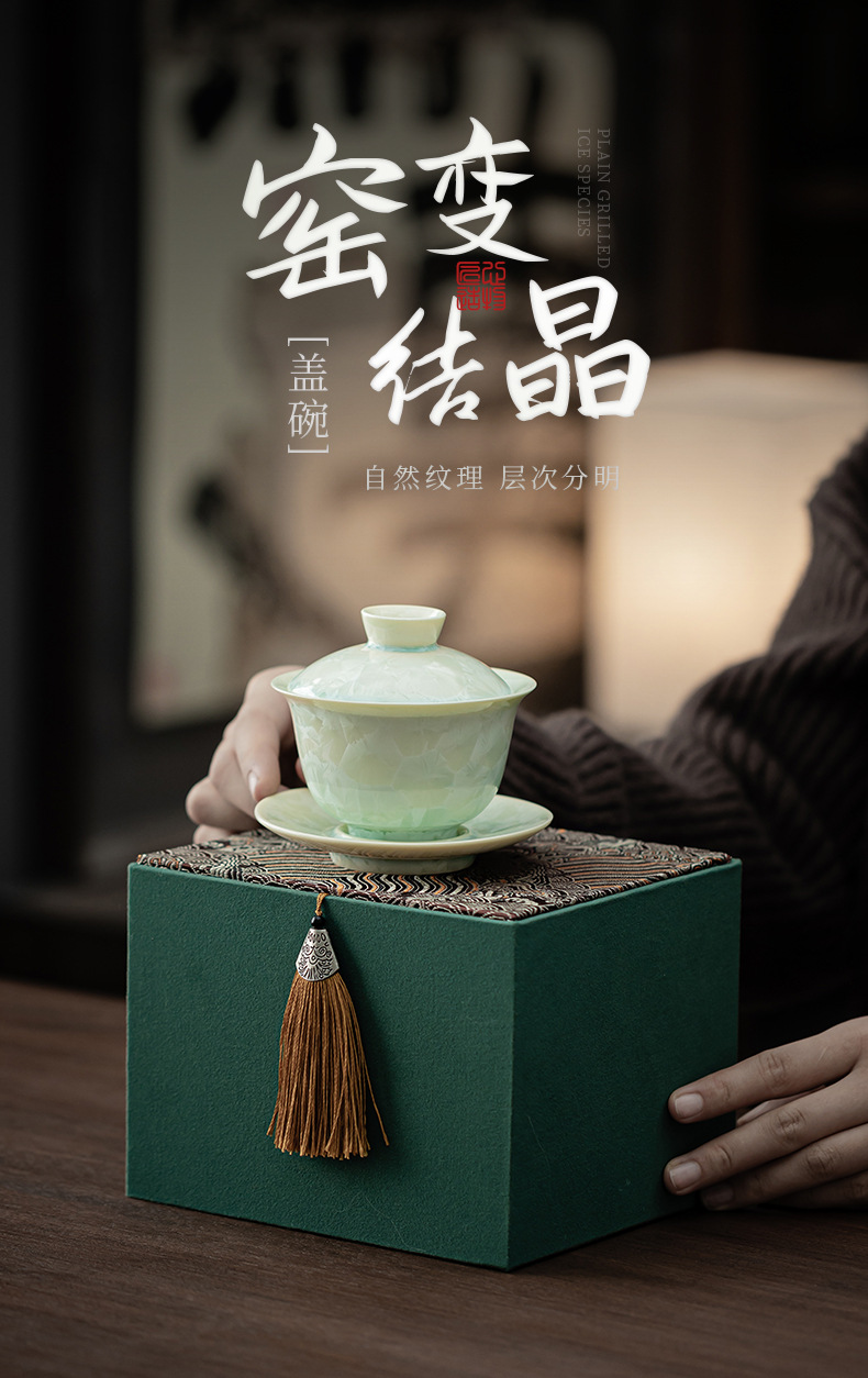 - Lò nung kết tinh bát có nắp ba tài dụng cụ trà Kung Fu cốc trà lớn có nắp dụng cụ pha trà đơn bát trà hộp quà