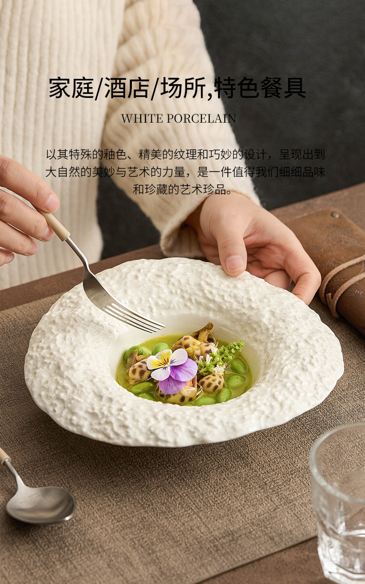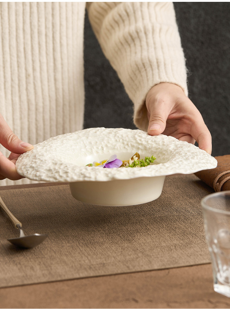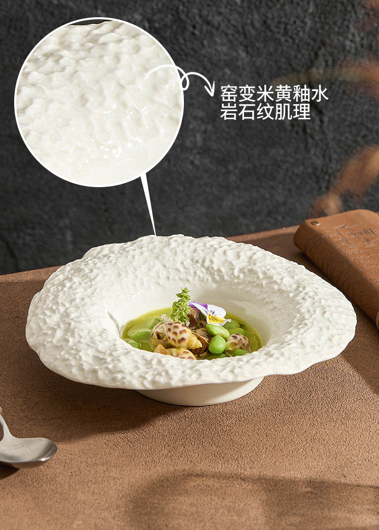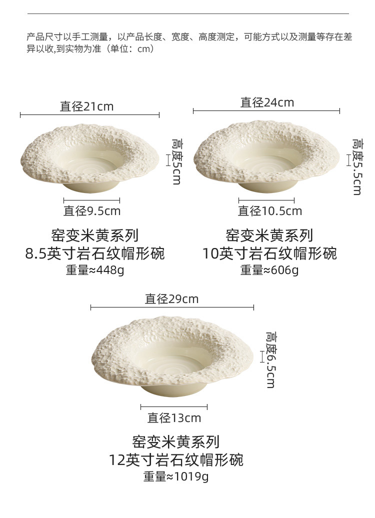 Lò quay gốm mũ rơm bát súp bát mì ống cao cấp hộ gia đình bát sáng tạo khách sạn bộ đồ ăn họa tiết đá bát hình mũ