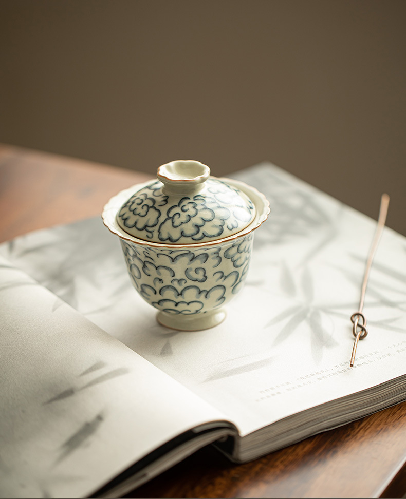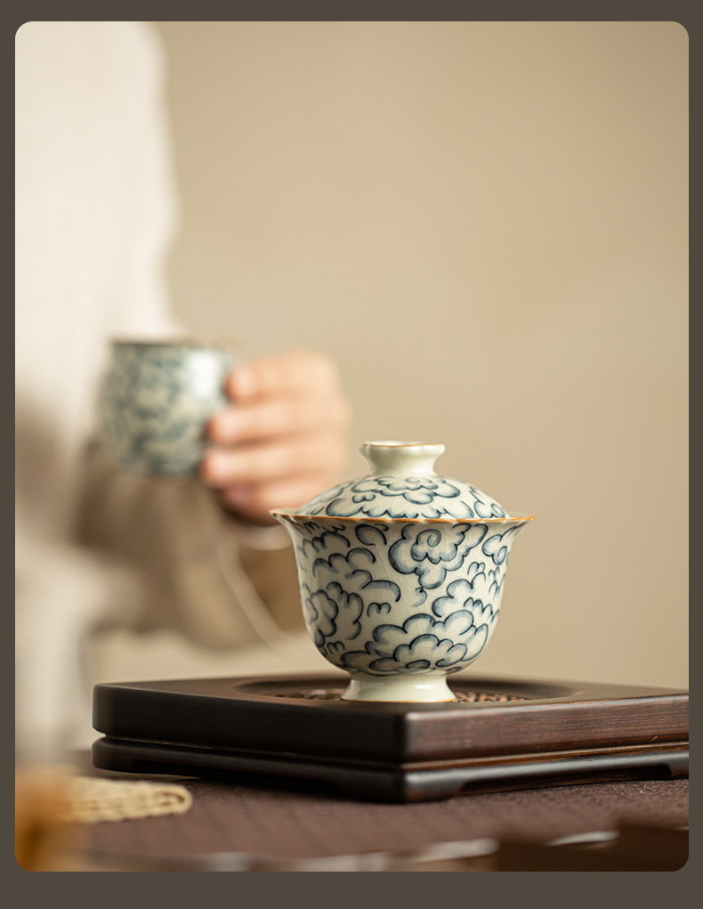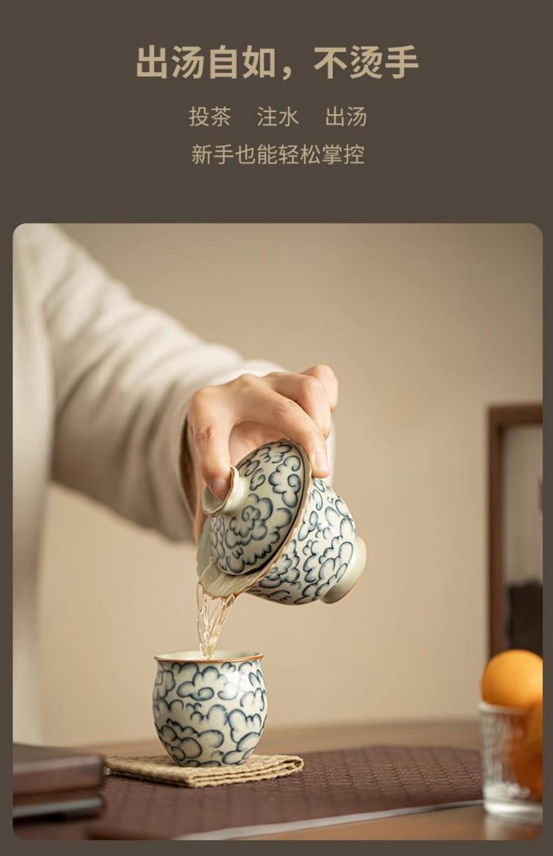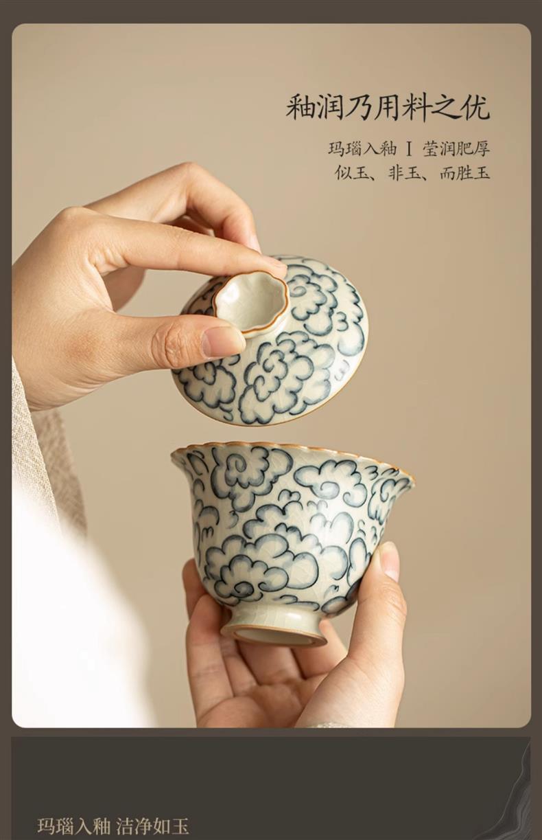 - Lò Ru màu vàng vàng Xiangyun Ercai Bát có nắp Bộ trà Kung Fu gia dụng bằng gốm sứ đơn để pha trà và mở bát trà sứ Ru