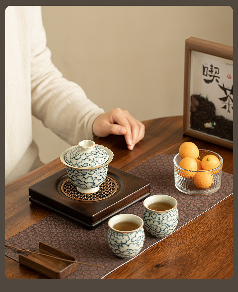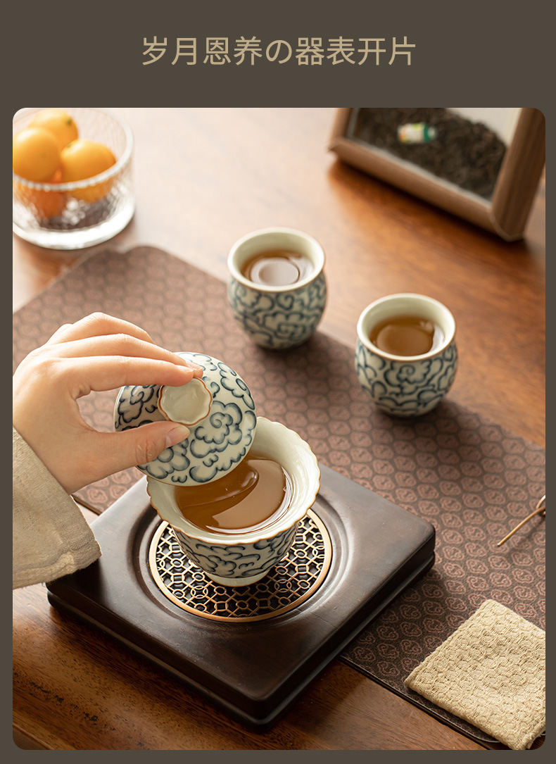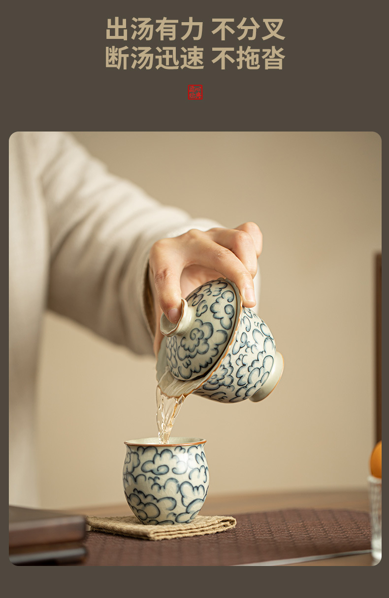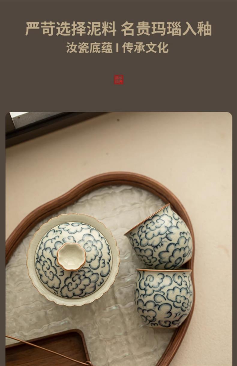 Lò Ru màu vàng vàng Xiangyun Ercai Bát có nắp Bộ trà Kung Fu gia dụng bằng gốm sứ đơn để pha trà và mở bát trà sứ Ru