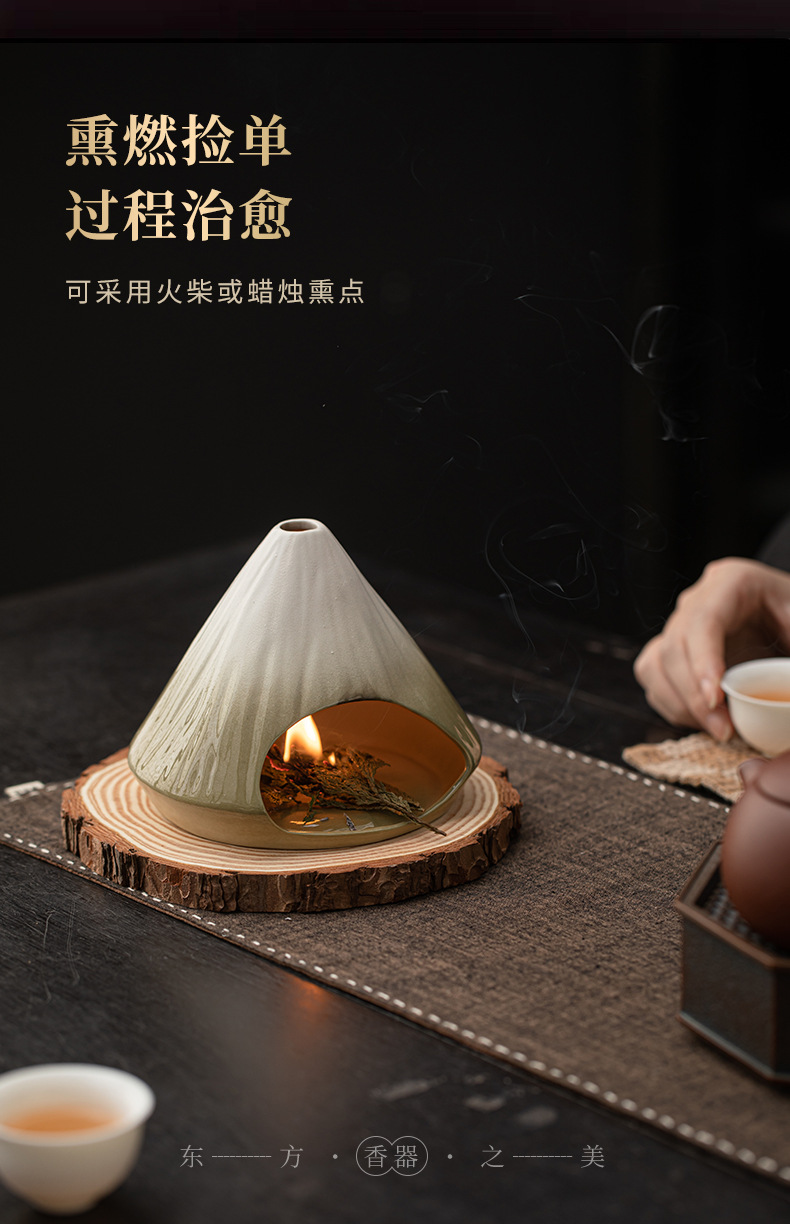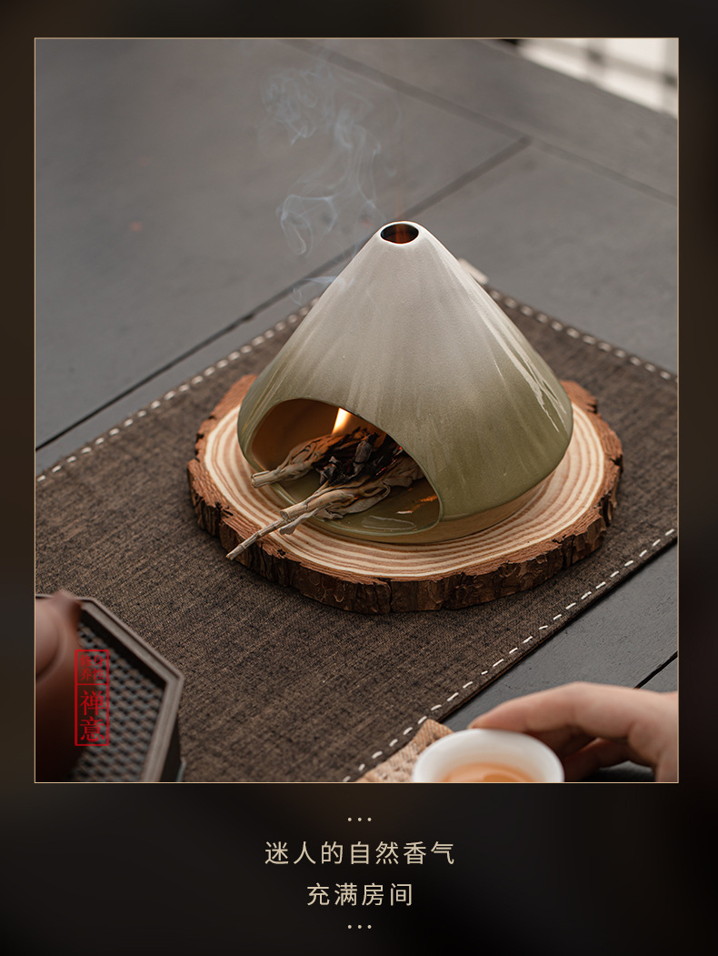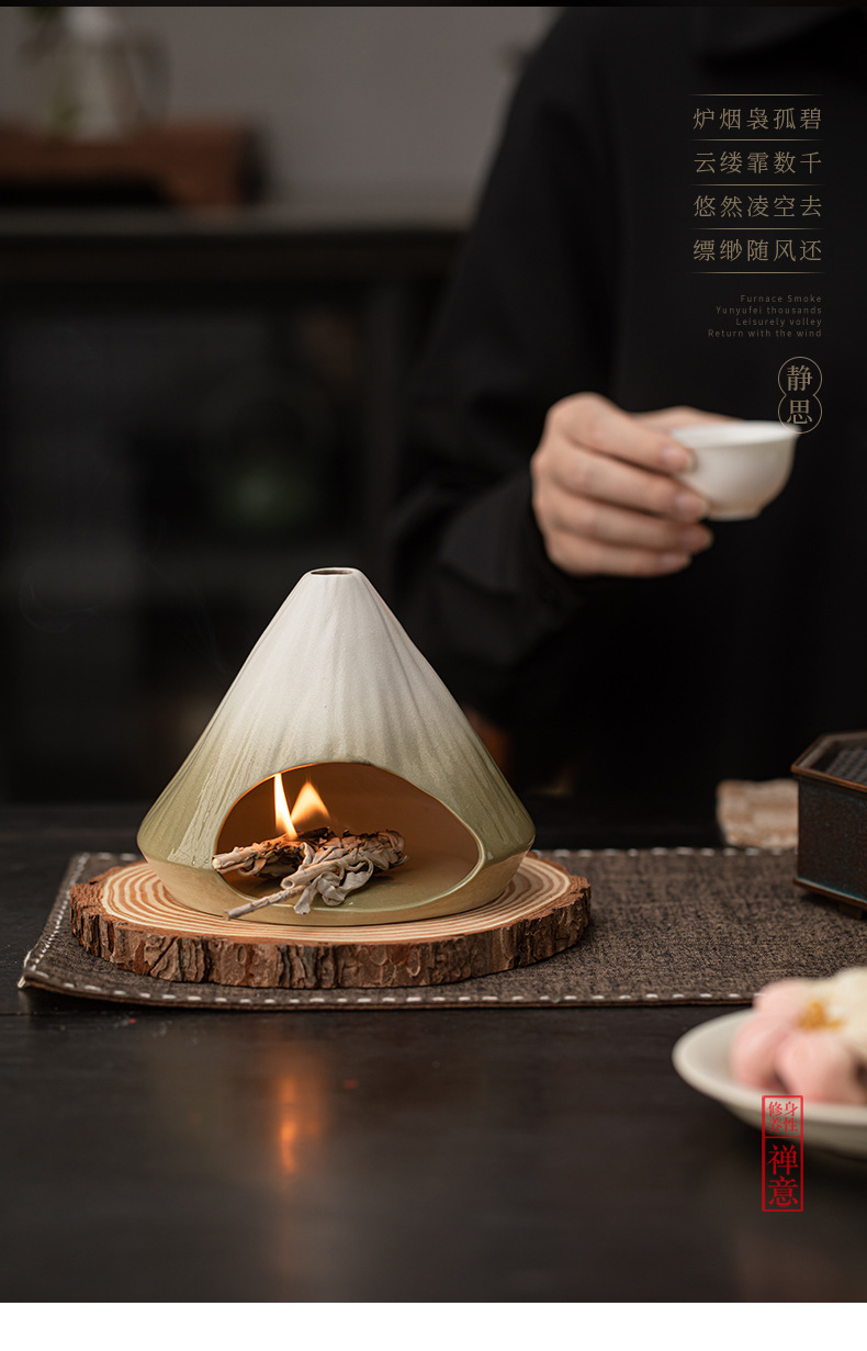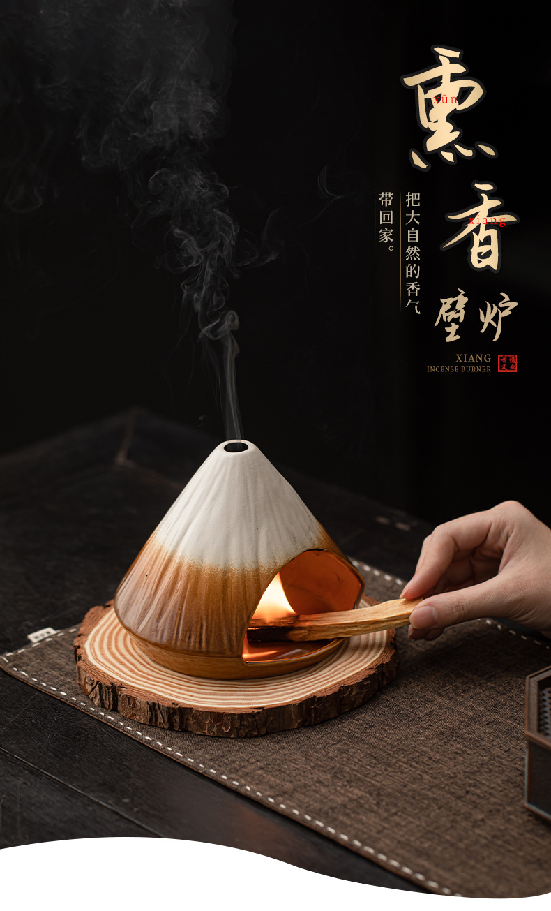 - Lò sưởi thắp hương núi Phú Sĩ, lư hương xô thơm tuyết tùng, lư hương gốm sứ bằng gỗ thiêng Peru